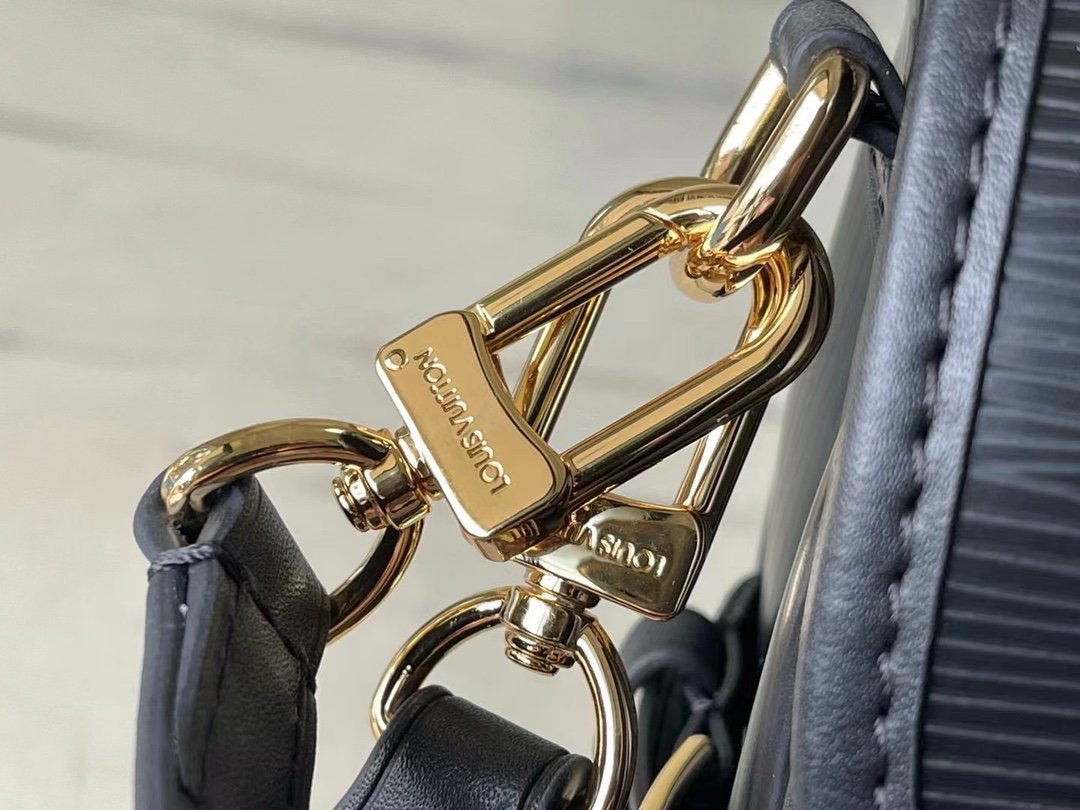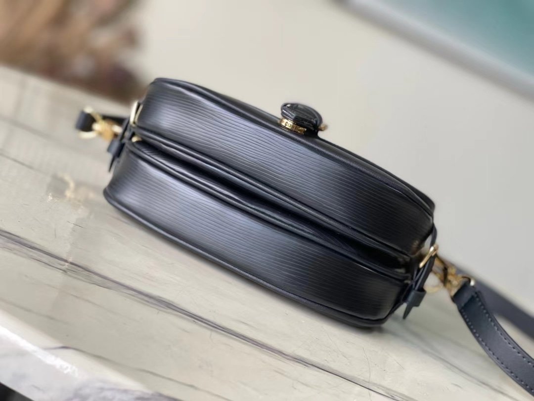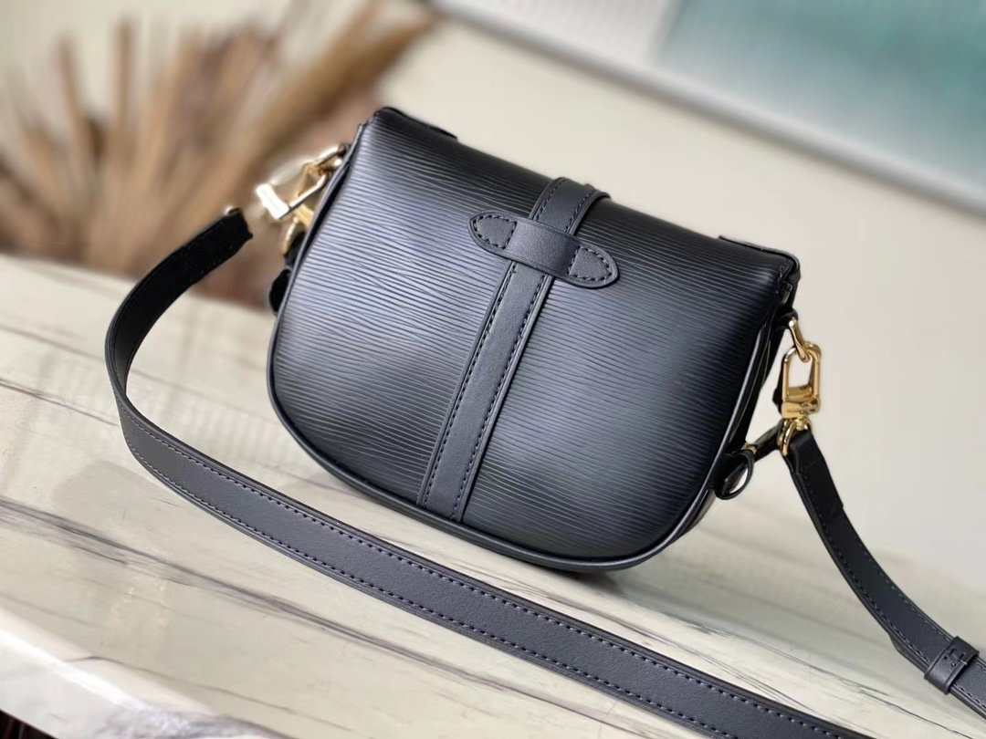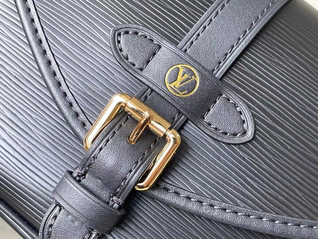 Top original order M23469 black water ripple series SAUMUR BB handbag The Saumur BB handbag uses new Epi leather to interpret the archive design, and is decorated with the LV Circle logo and exquisite buckle for the saddle bag configuration. The front magnetic closure adds a modern touch, and the detachable shoulder strap and handle allow for a variety of carrying options. Dimensions: 20.0 x 16.0 x 7.5 cm