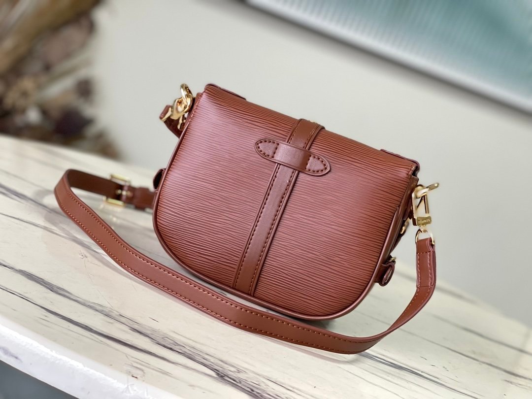The Saumur BB handbag interprets the archival design in new Epi leather, with a saddle bag configuration embellished with the LV Circle logo and delicate buckles. The front magnetic closure adds a modern touch, and the detachable shoulder strap and handle allow for a variety of carrying options.