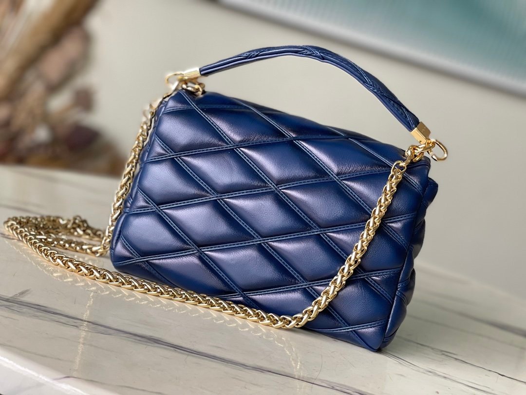 This medium GO-14 bag is crafted from rich sheepskin leather with a quilted pattern that pays homage to the brand’s traditional luggage designs. The LV Twist twist lock highlights the eye-catching style, and the top handle can be carried by hand alone, or it can be transformed into a leather shoulder pad on the sliding chain shoulder strap for a comfortable shoulder or cross-body experience.