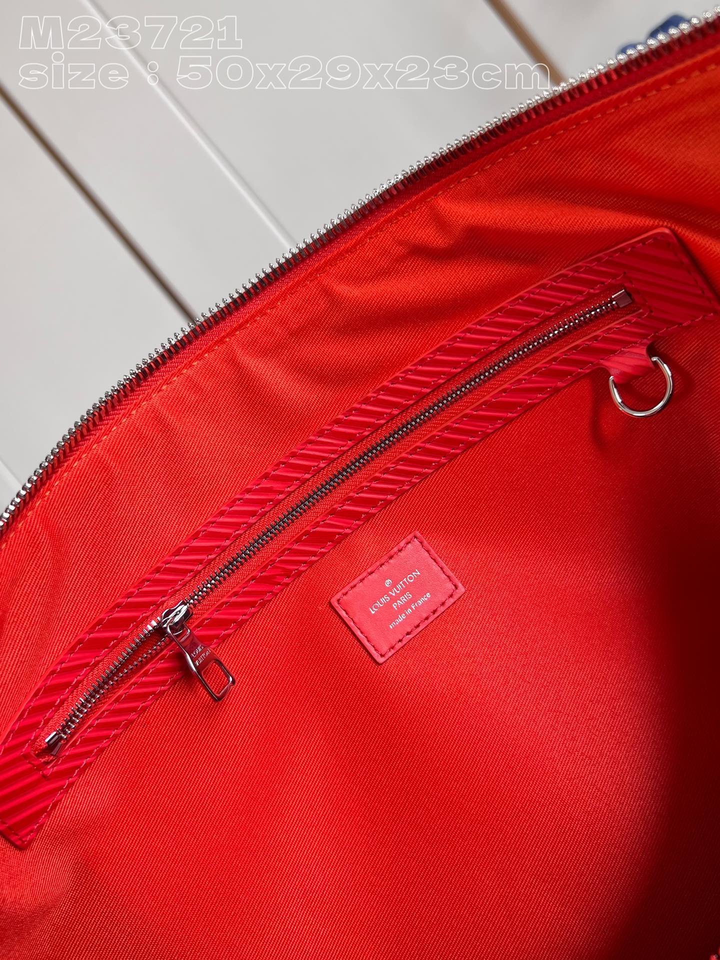 [Exclusive real shot M23721 red] This Keepall Bandoulière 50 travel bag is dip-dyed in bright colors, with the large embossed texture of Epi XL grain leather striking the eye, and the Louis Vuitton logo on the top creating a striking configuration. 50 x 29 x 23 cm (length x height x width)