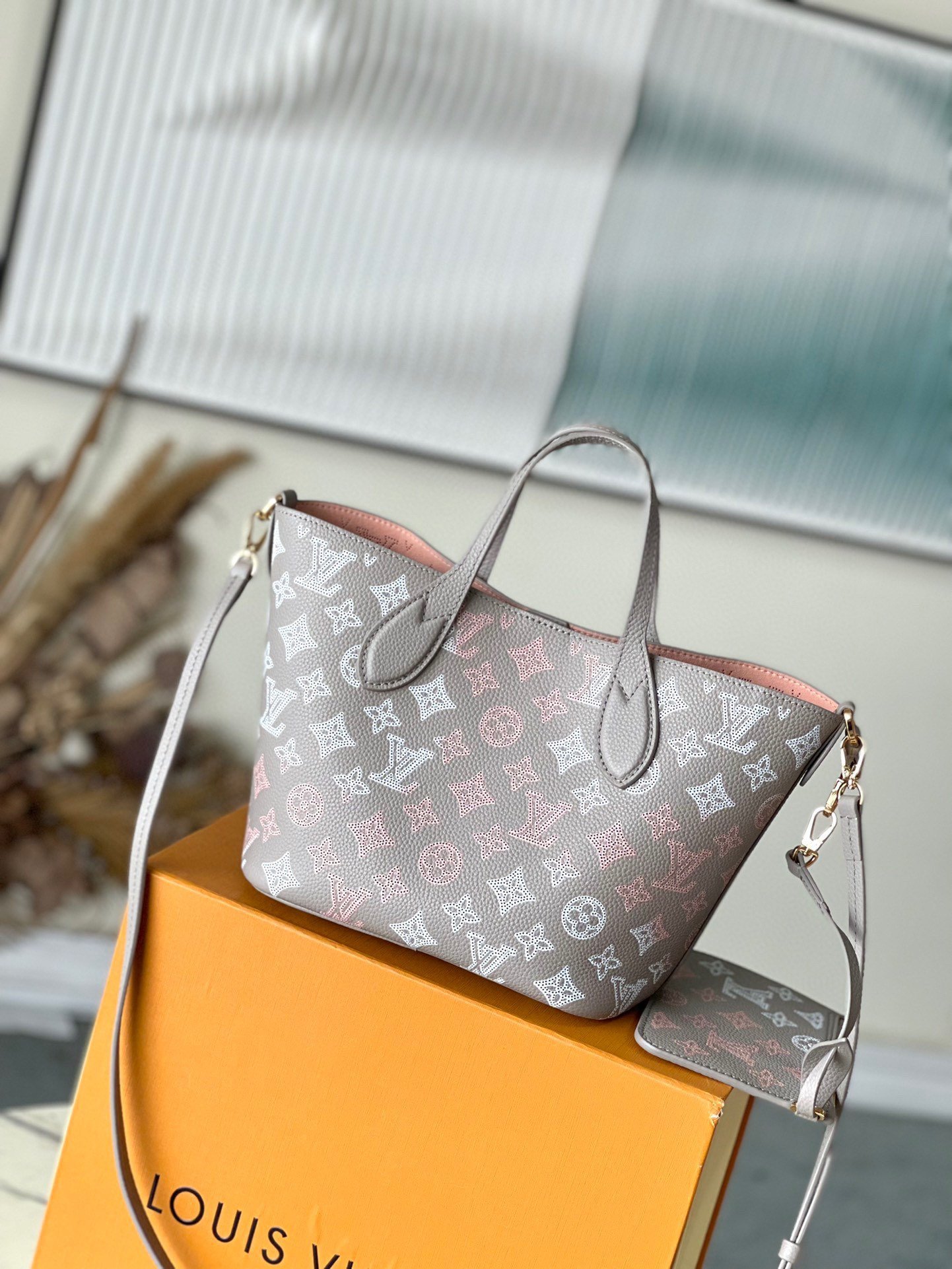 Overseas original order M23758 This small Blossom tote bag is from the Mahina Flight Mode series and is made of soft engraved cow leather with a drape effect. Subtle gradient tones on the Monogram perforated pattern decorate the leather body, and are paired with woven leather trim to create a sophisticated touch. The inner compartment and removable zipper bag are suitable for storing daily necessities. Dimensions: 20 × 20 × 12.5 cm