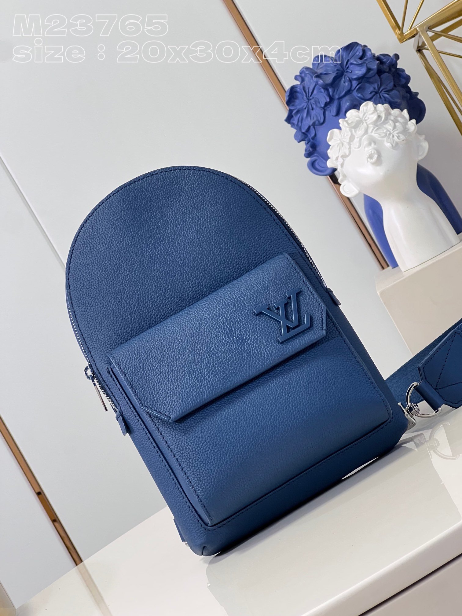 [Exclusive real shot M23765 dark blue] This Pilot shoulder bag refers to the design of the popular Takeoff backpack, with a rounded shape, front flap and the iconic design of the LV Aerogram series. The magnetic closure ensures secure storage and access, and the adjustable shoulder strap can be attached to the left or right side of the bag. 20 x 30 x 4 cm (length x height x width)