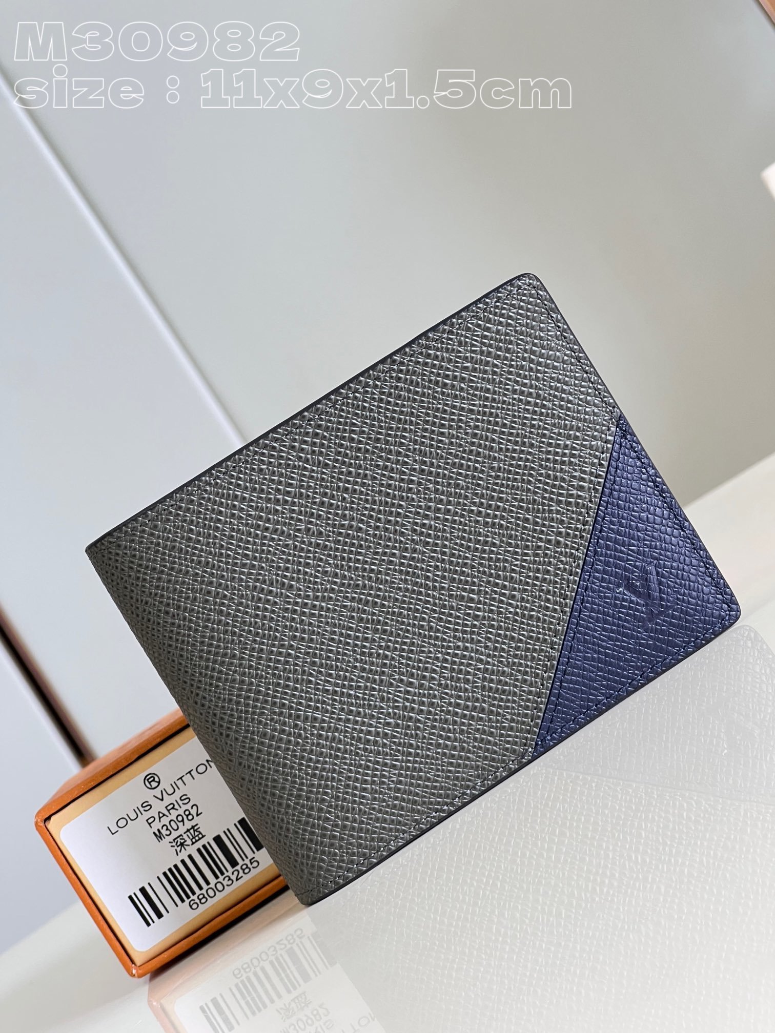 [Exclusive real shot M30982 dark blue] This Multiple wallet is made of Taïga cow leather to demonstrate a simple design, with full-grain texture and color contrast to highlight the gorgeous texture. LV letters embossed on corner. 11.5 x 9 x 1.5 cm (length x height x width)