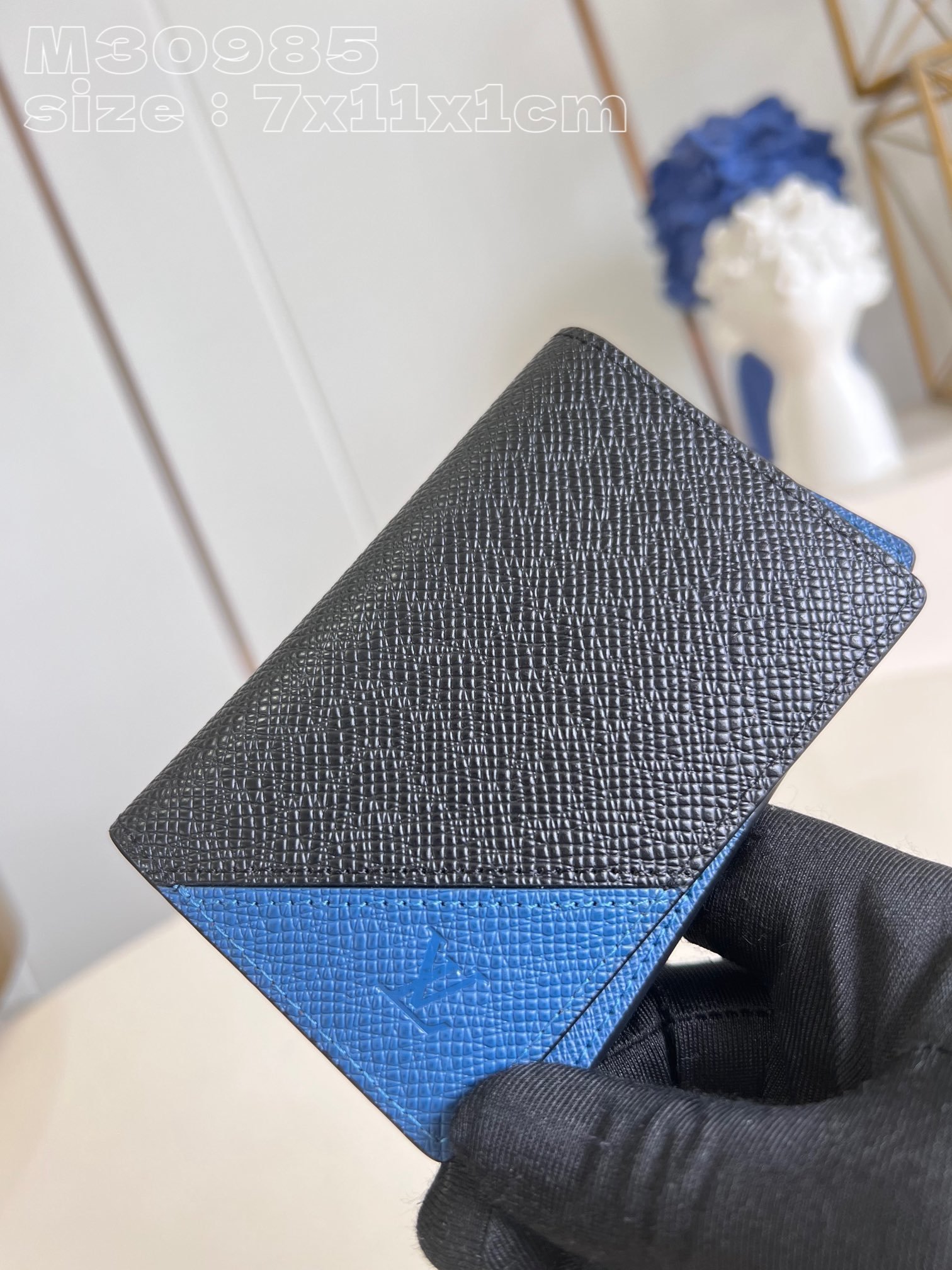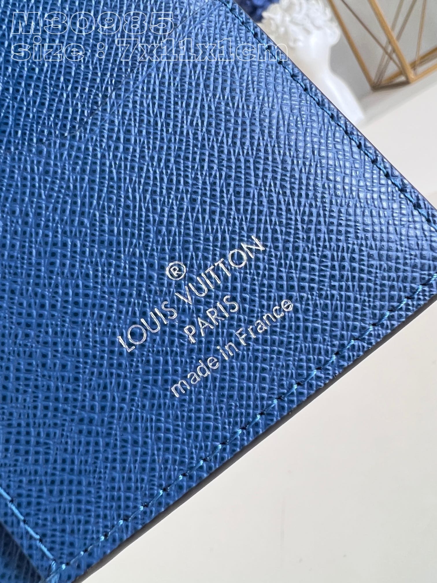 [Exclusive real shot M30985 medium blue] This pocket wallet is made of Taïga cow leather dip-dyed in natural colors and includes a card compartment, an inner pocket and an outer credit card pocket. 7.5 x 11.1 x 1 cm (length x height x width)