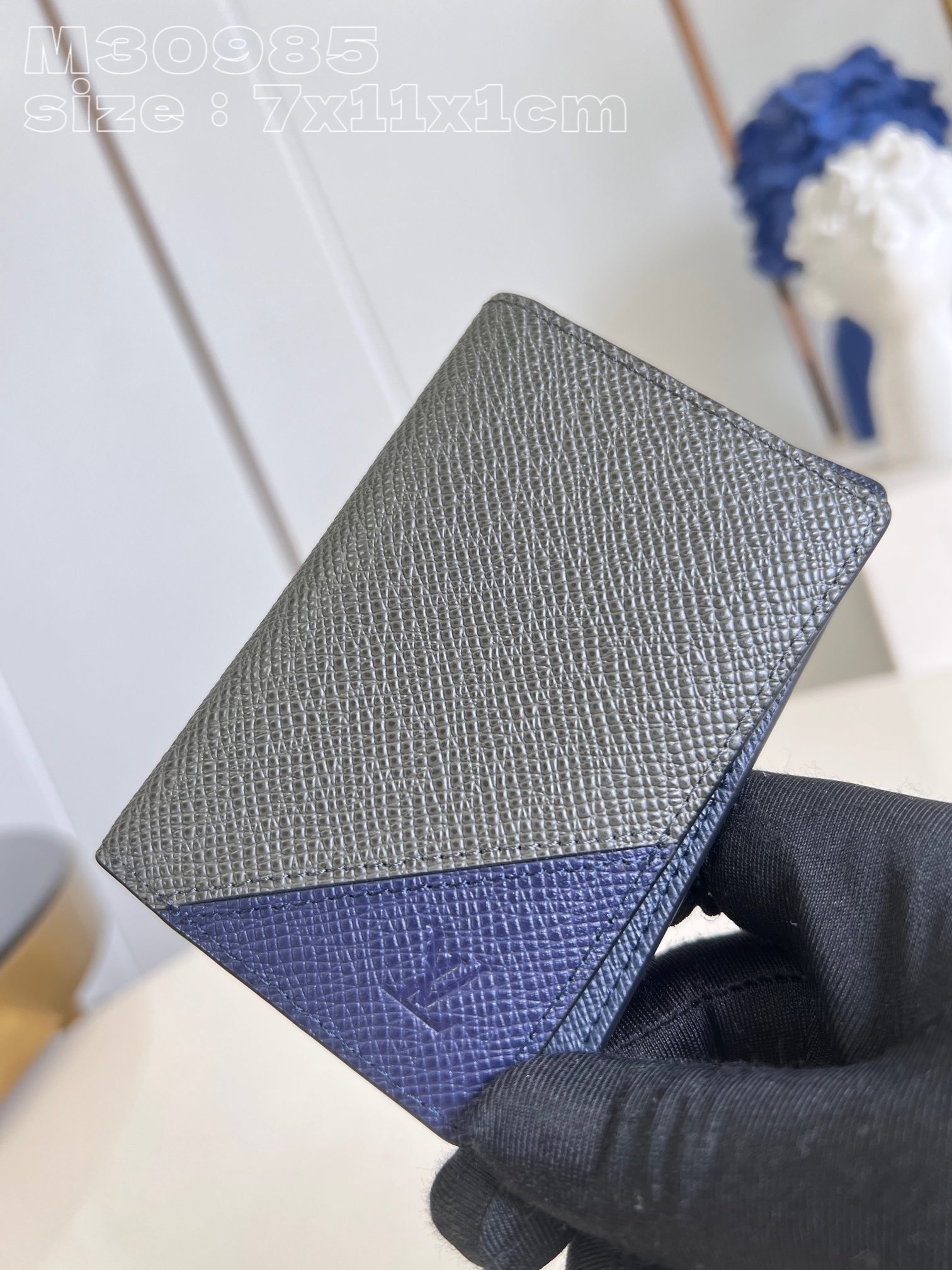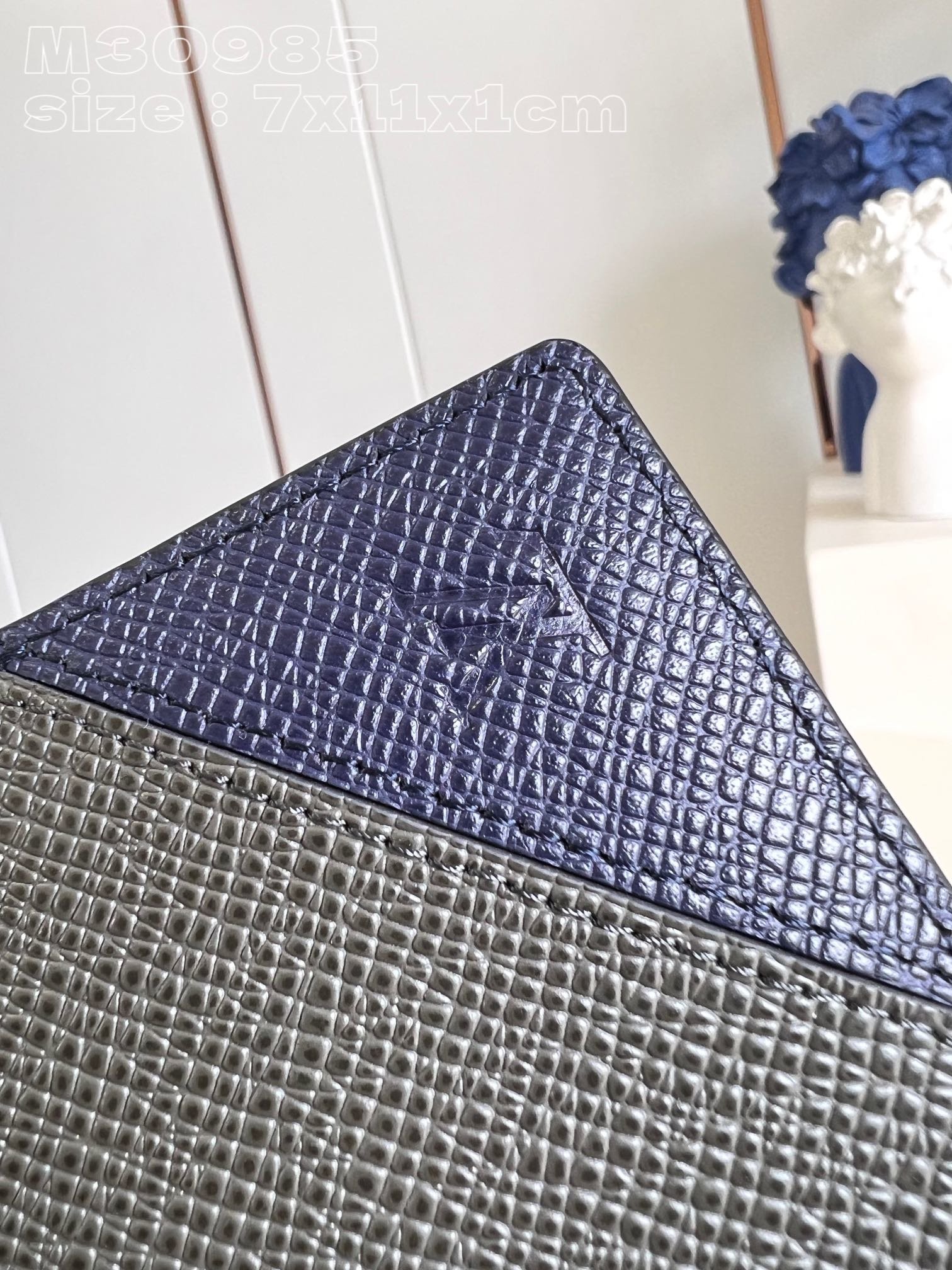 [Exclusive real shot M30985 dark blue] This pocket wallet is made of Taïga cow leather dip-dyed in natural colors, including a card compartment, an inner pocket and an outer credit card pocket. 7.5 x 11.1 x 1 cm (length x height x width)