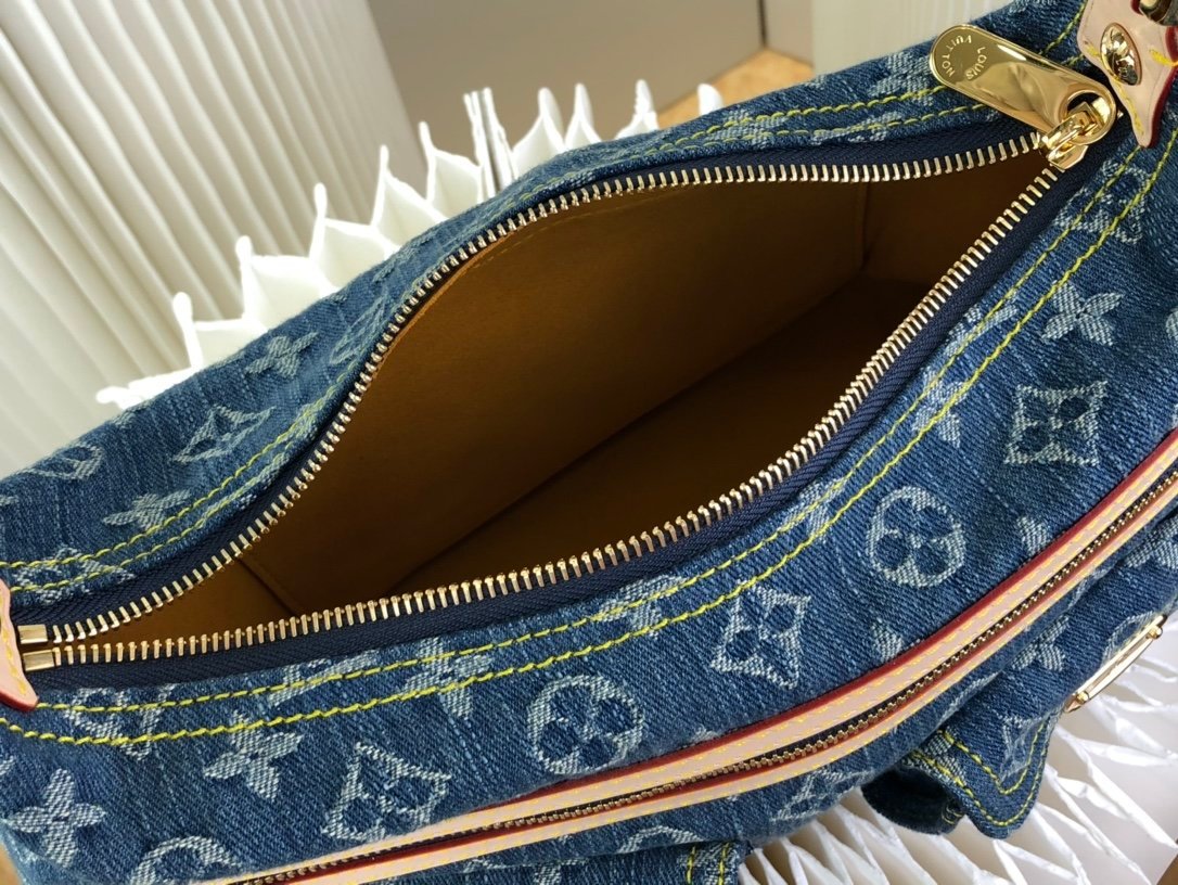 【VINTAGE】M44464 Denim blue✨✨ Second-hand series denim handbag Size: 30×10×19cm