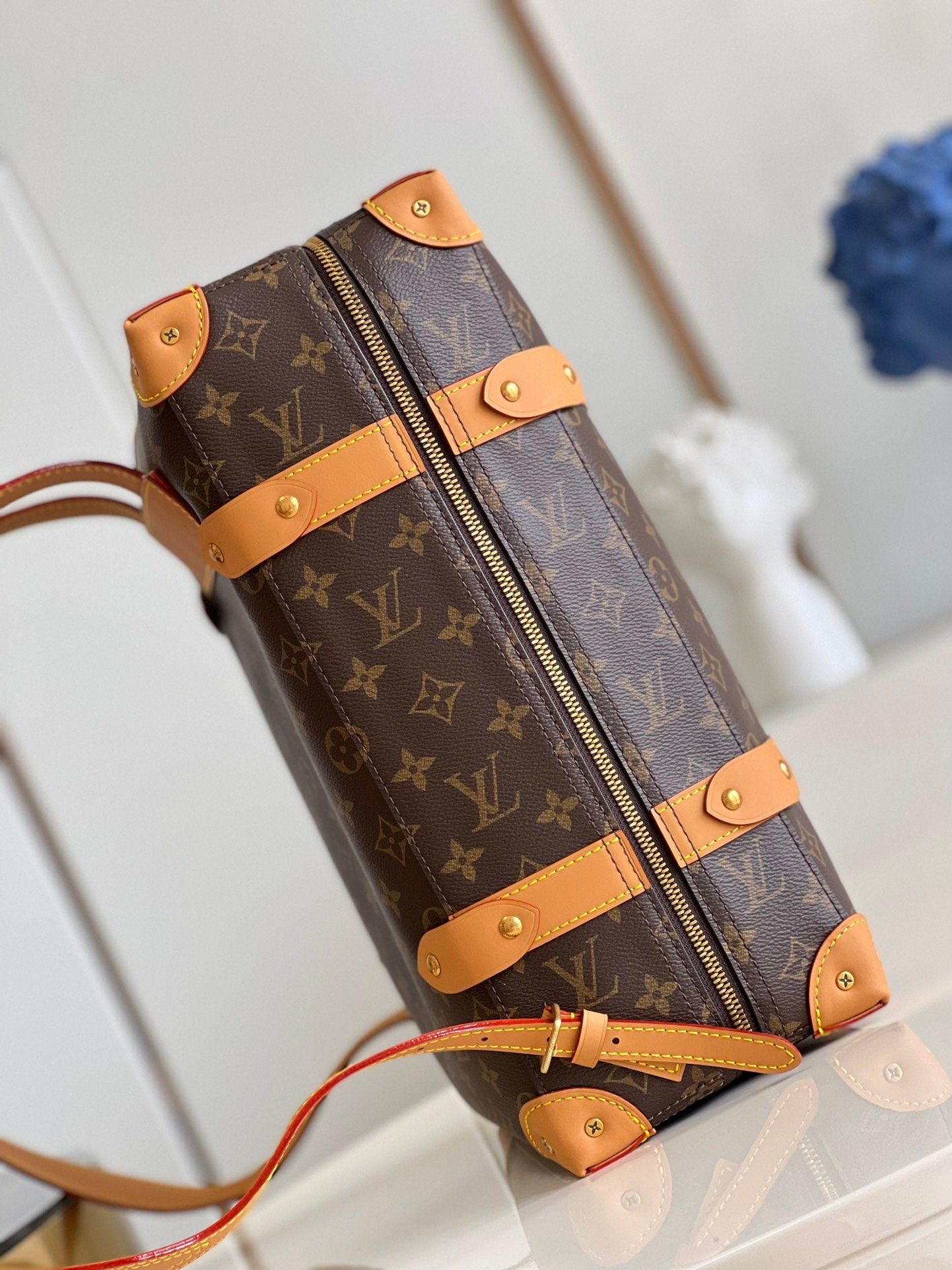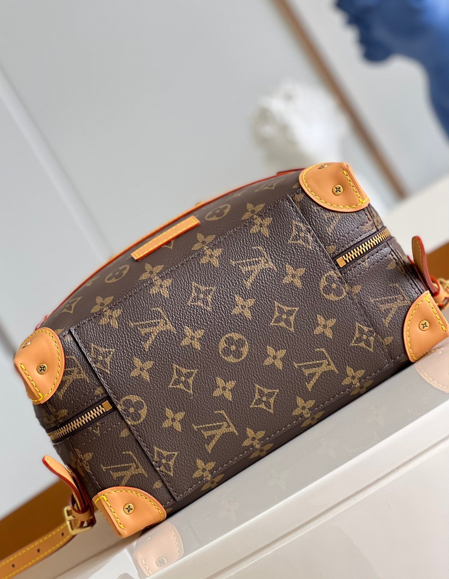 [Exclusive real shot M44752 presbyopia] Retro suitcase bag. Classic and elegant suitcase bag, fabric lining, aged gold metal parts, full-width Monogram pattern. Adjustable leather shoulder strap with zip closure. Size: 36*28*14cm