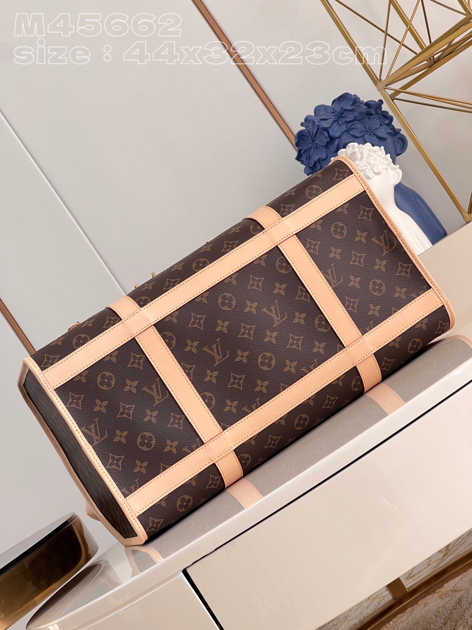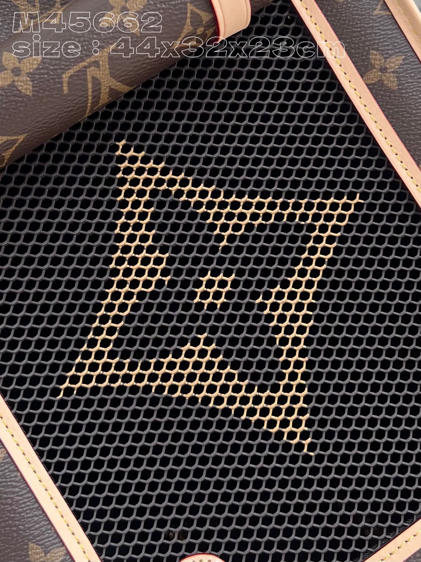 [Exclusive real shot M45662] Louis Vuitton’s classic pet bag integrates flexible functions into trendy design. The Monogram canvas body and calfskin leather trim continue the traditional elements, while plush padding and breathable mesh add to the comfort. Use the adjustable shoulder strap wisely to start your cute pet companion journey. 44 x 32 x 23 cm (length x height x width)