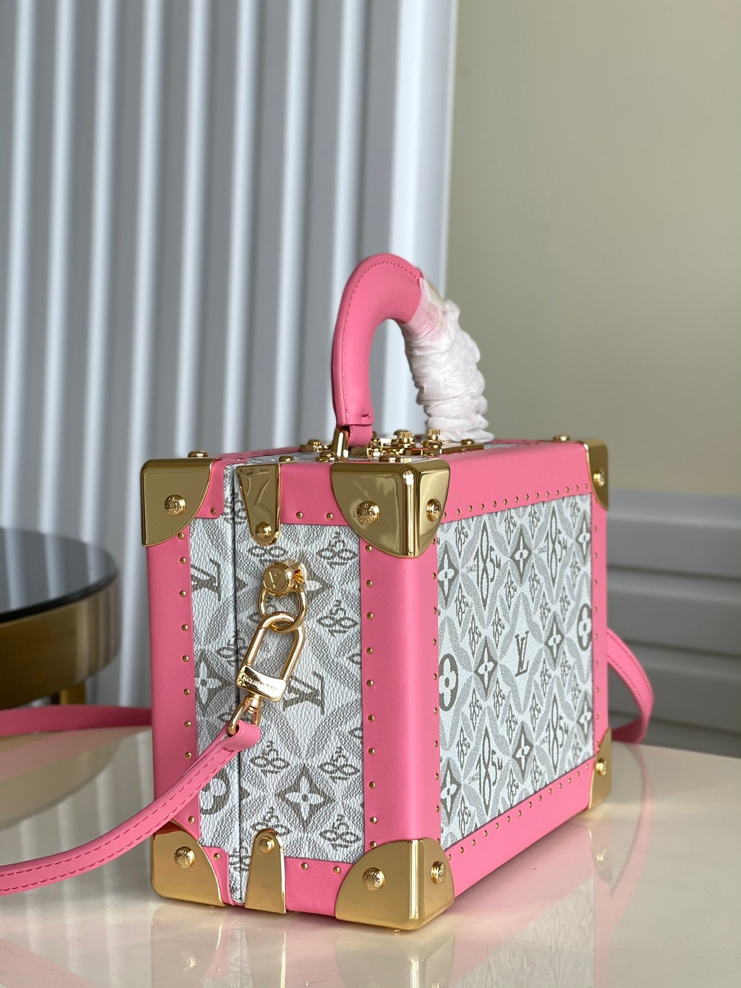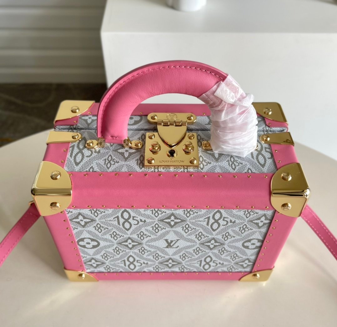 [Exclusive real shot M45675 pink] VALISETTE TRESOR handbag hard case In the 2021 spring and summer series, women’s art director Nicolas Ghesquière and women’s leather goods design director Johnny Coca launched a new wearable hard case style handbag – Valisette Trésor handbag hard case. The shape and dimensions of this hard case are based on the brand’s classic and traditional Coffret Trésor 20 hard case. This hard case is a compact storage box for jewelry or other valuables. Reinterpreted, the white pollen leather-lined red universal wooden box has been transformed into a wearable, feminine handbag. Fully functional, this handbag is both a traditional leather design and an authentic hard case style (including studded lozines vulcanized fiber material binding and S-shaped padlock with key) Dimensions: 24cm × 18cm × 12cm