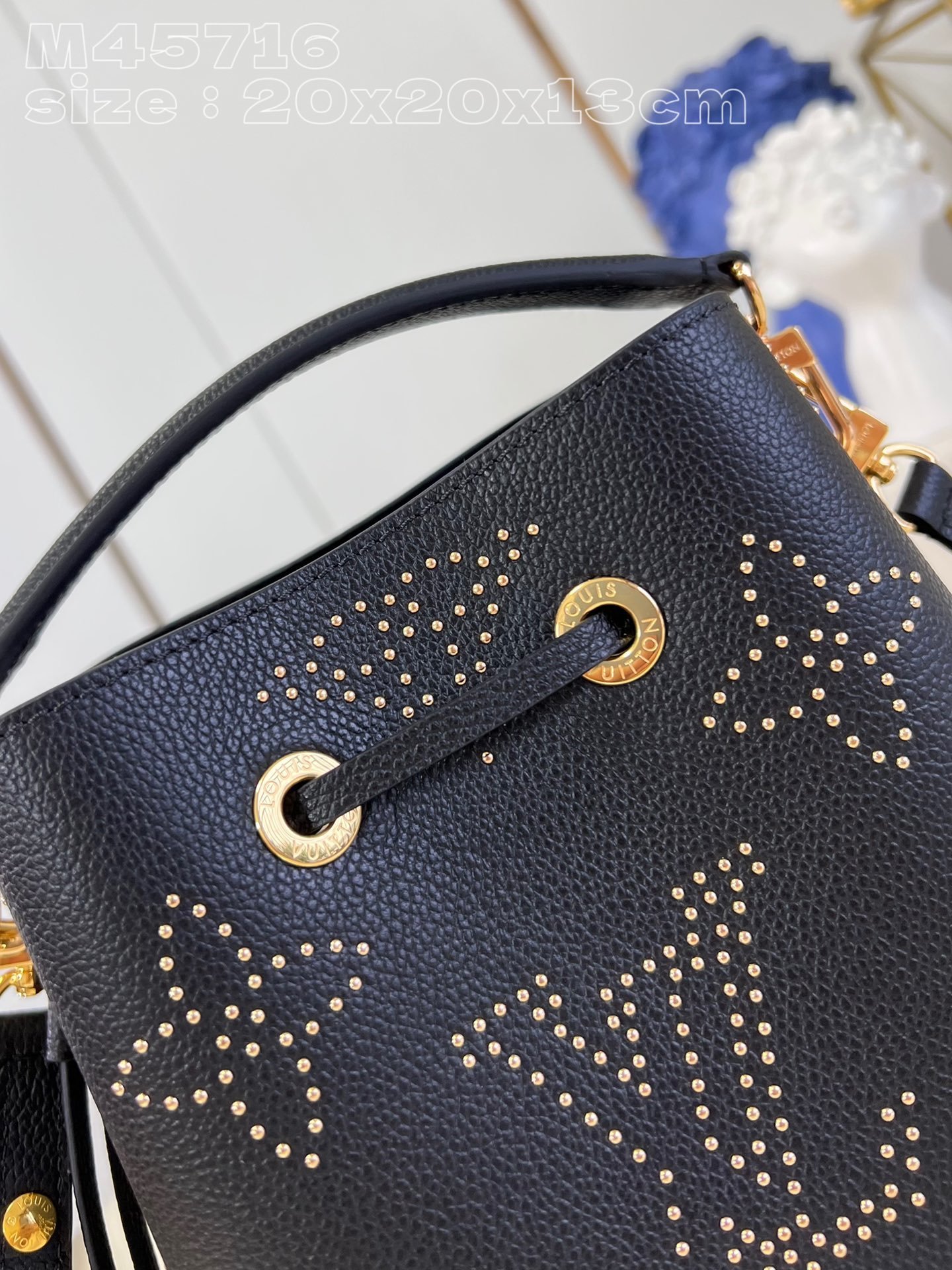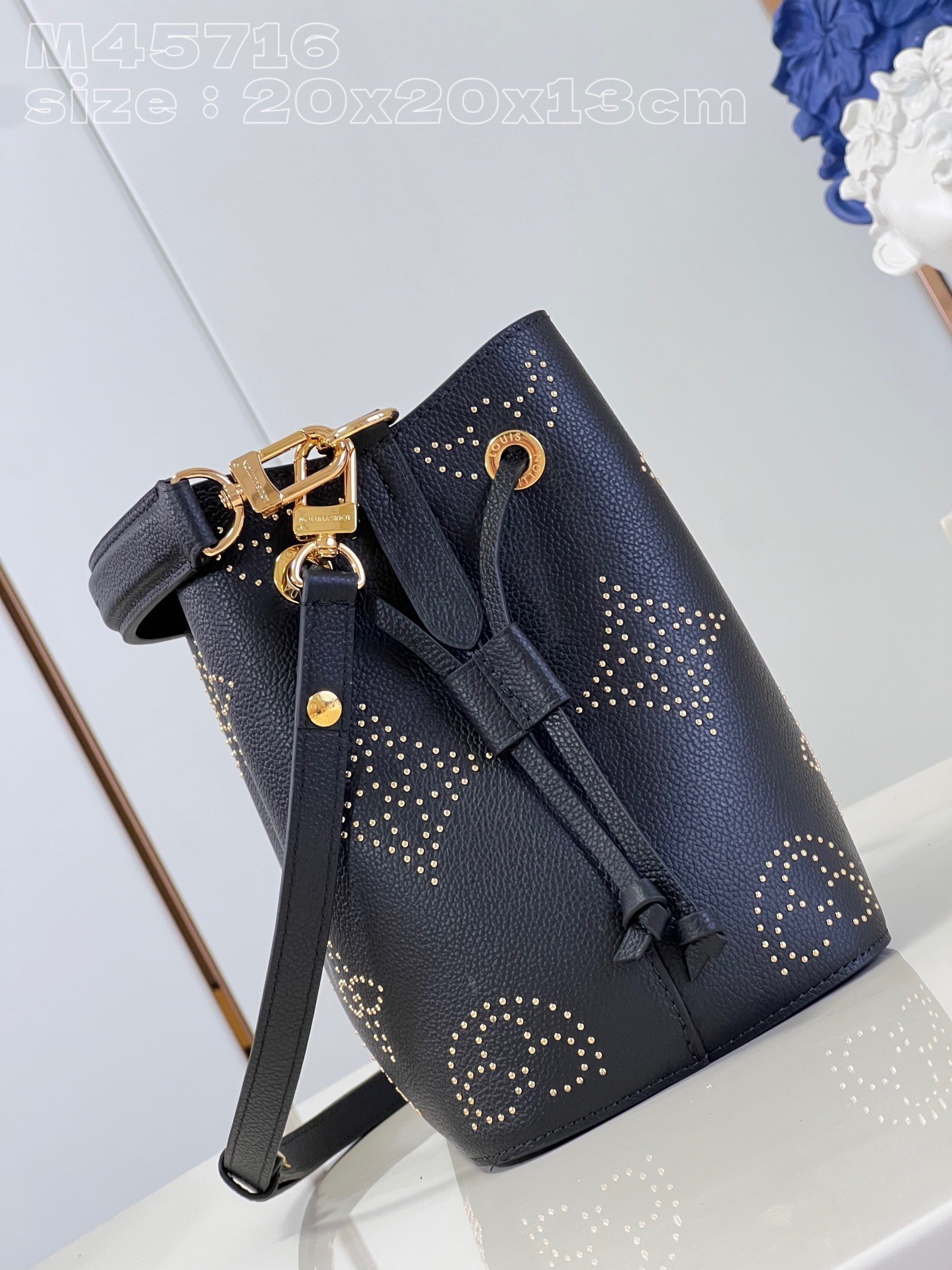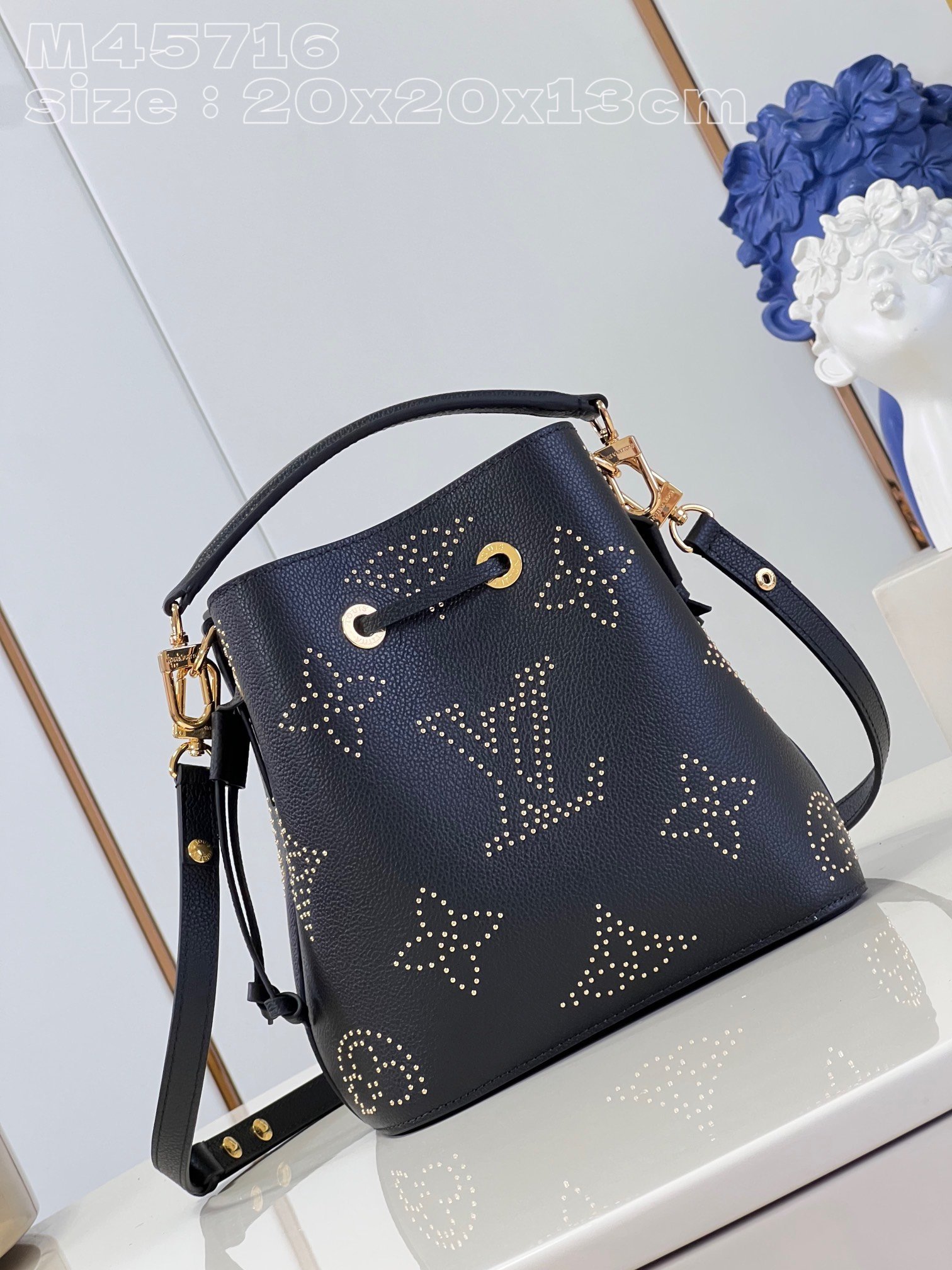 [Exclusive real shot M45716 black studded] M46734 This NéoNoé BB bucket bag uses studs to inject an avant-garde edge into the Monogram pattern. The compact structure can properly store personal items such as mobile phones, keys, and wallets. The top handle and shoulder strap are detachable, allowing you to switch between hand-carrying, elbow-carrying, and shoulder-carrying. 20 x 20 x 13 cm (length x height x width)