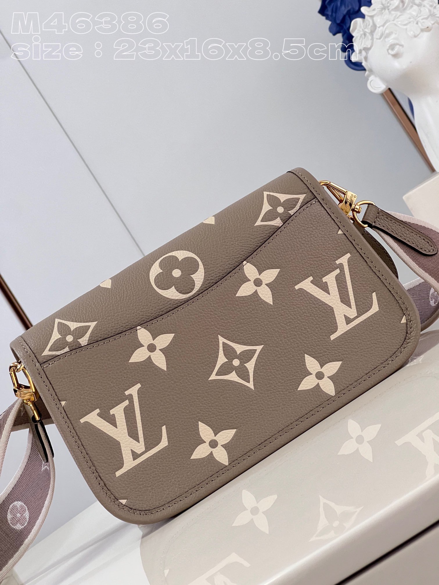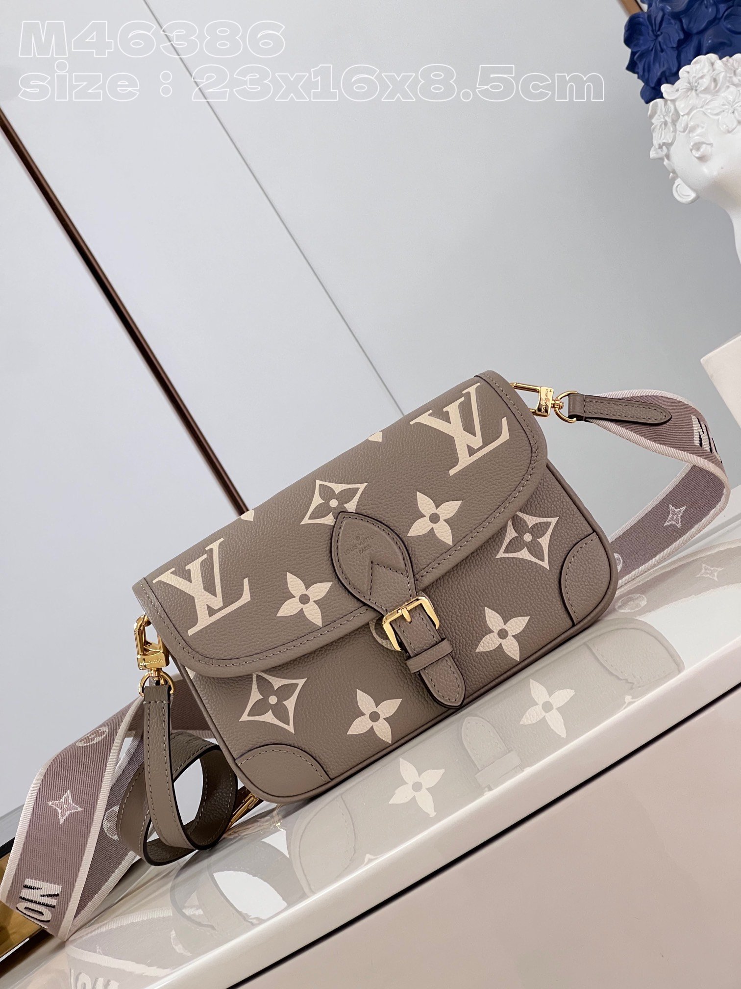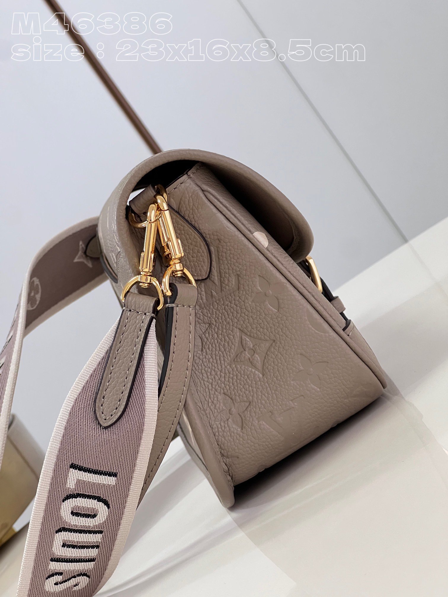 [Exclusive real shot M46386 gray screen printing/version] This Diane handbag is made of Louis Vuitton’s classic Monogram Empreinte embossed leather, with the brand logo woven into the detachable wide jacquard shoulder strap, and a diagonal addition to the detachable leather shoulder strap. The choice of shoulder bag can be flexibly matched with elegant style or sporty style. Detailed features 23 x 16 x 8.5 cm (length x height x width)