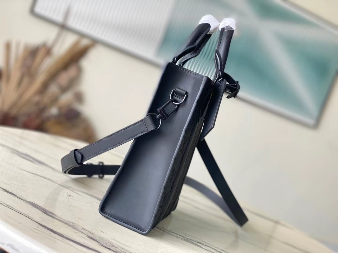 Top original order M46453 black full leather mini men’s bag series. As a compact handbag in the Sac Plat series, Monogram Eclipse coated canvas, cow leather trim, fabric lining, Sac Plat mini handbag this time combined with Monogram Eclipse canvas, leather trim and metal hardware, with removable name tag and wide cowhide leather side straps. The on-the-go cross-body design has plenty of room for a smartphone, wallet and keys. Dimensions: 19 x 22 x 7 cm