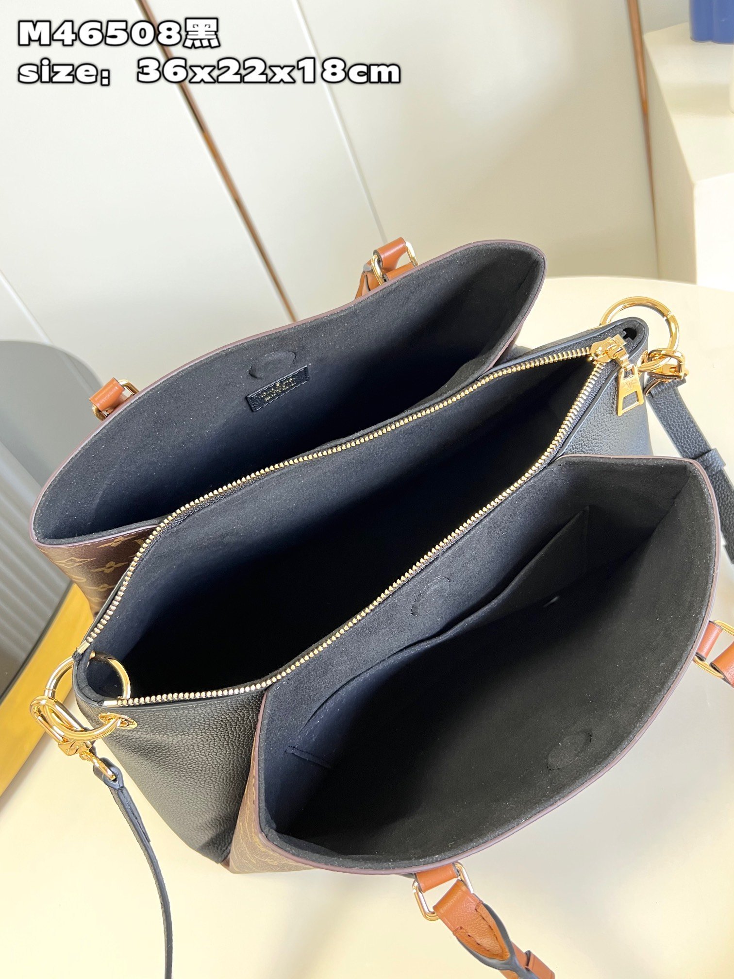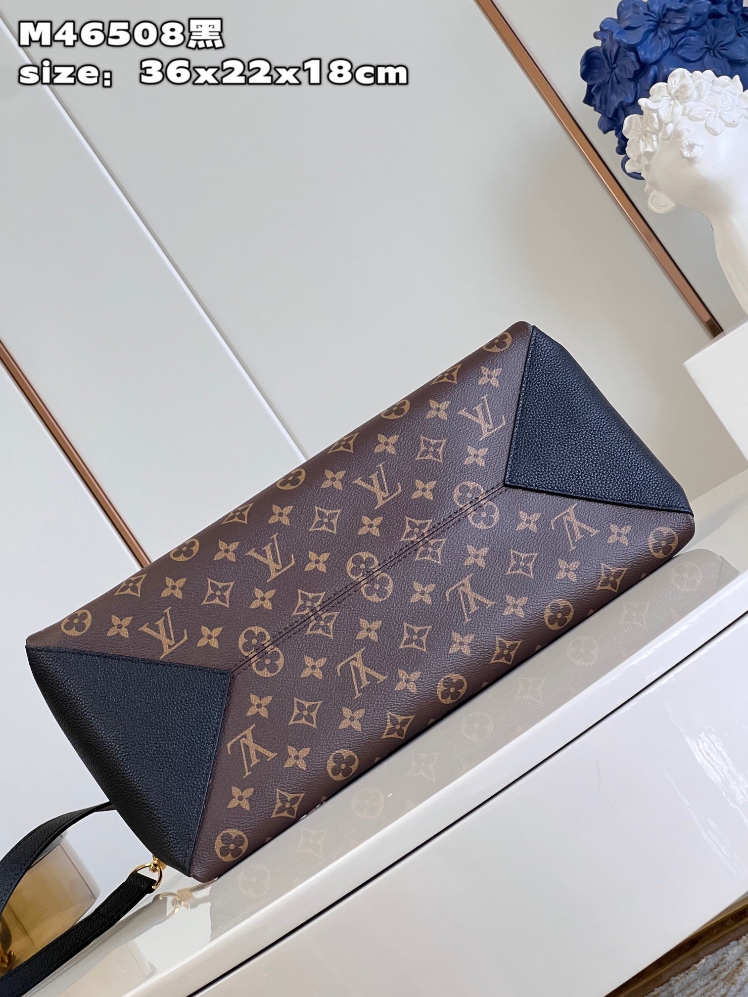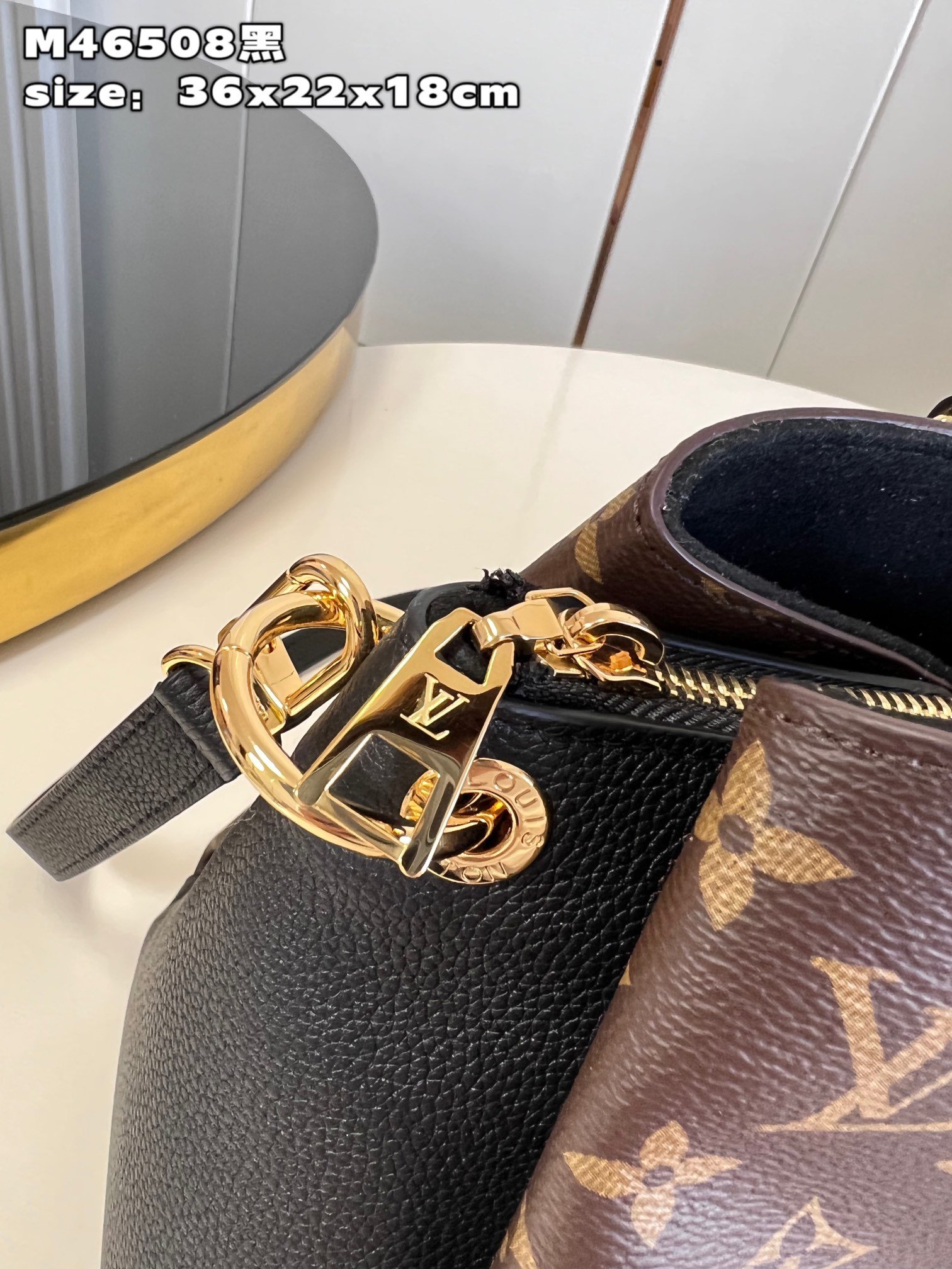 [Exclusive real shot M46508 black] VENDOME medium handbag looks back to the design of the Pallas handbag in 2012, showing the aesthetics of blending materials and colors. Monogram canvas combined with grained leather sides, smooth leather handles and handle loops. Interior compartment and pocket for laptop. size:36x22x18cm