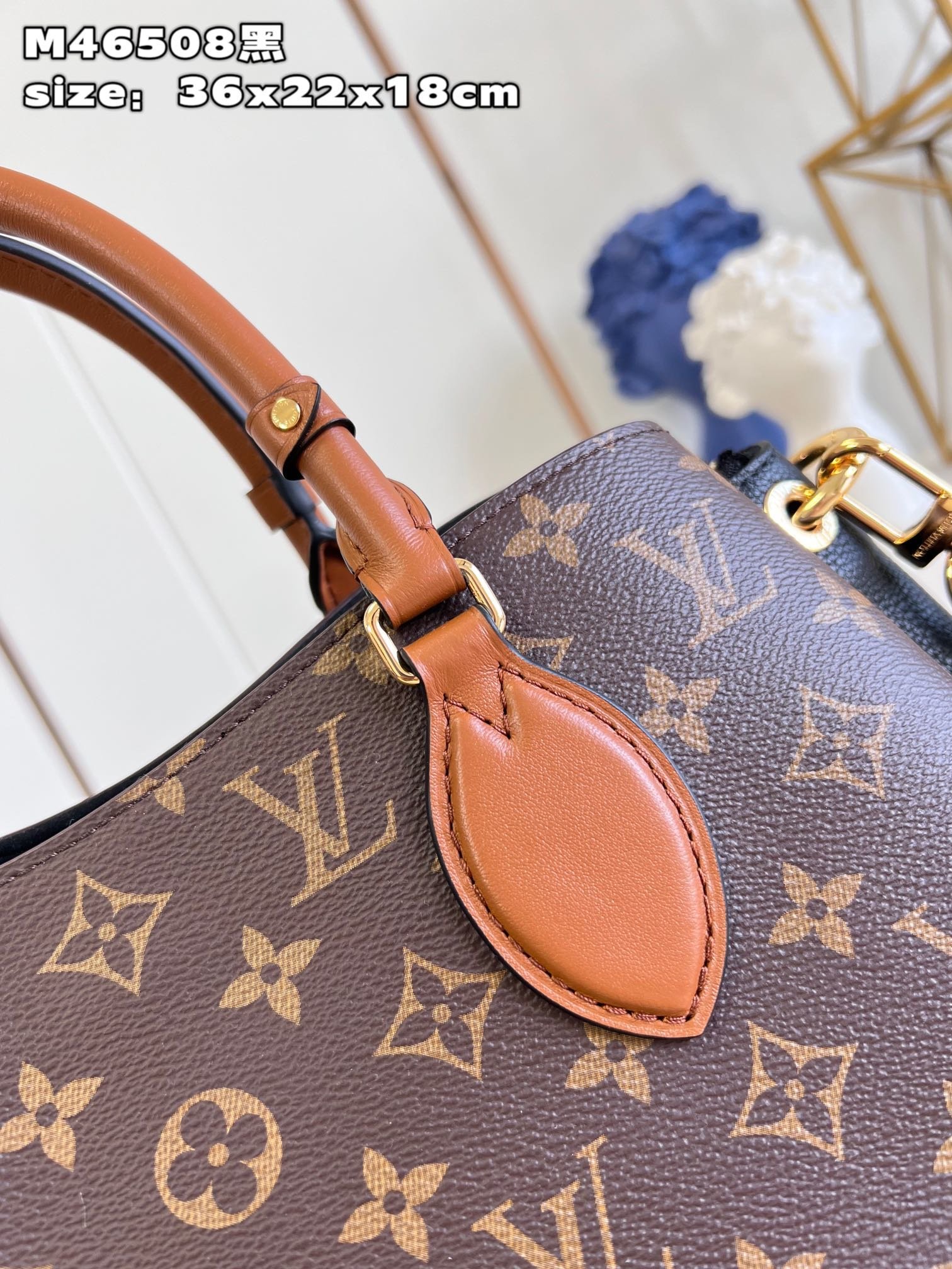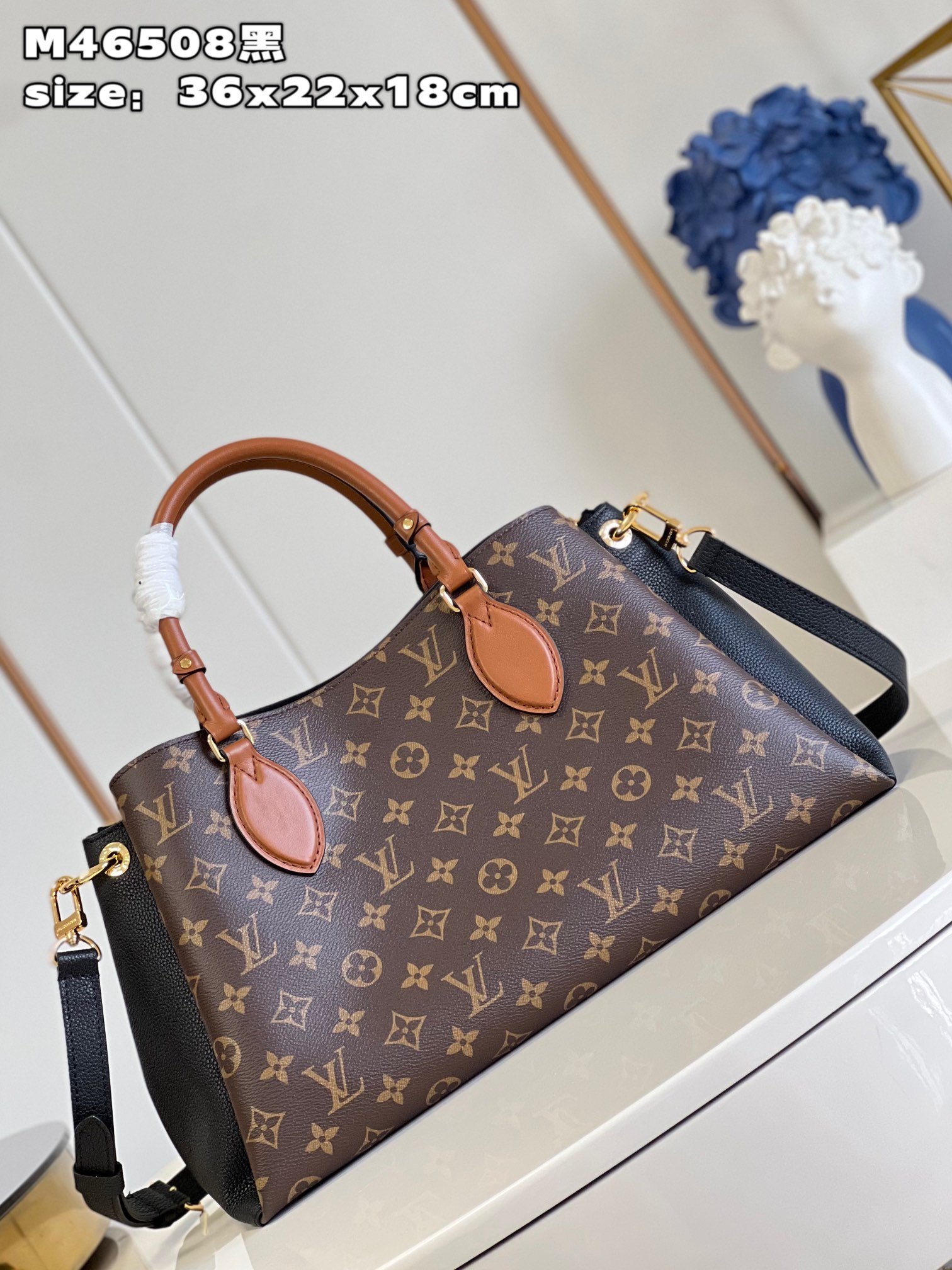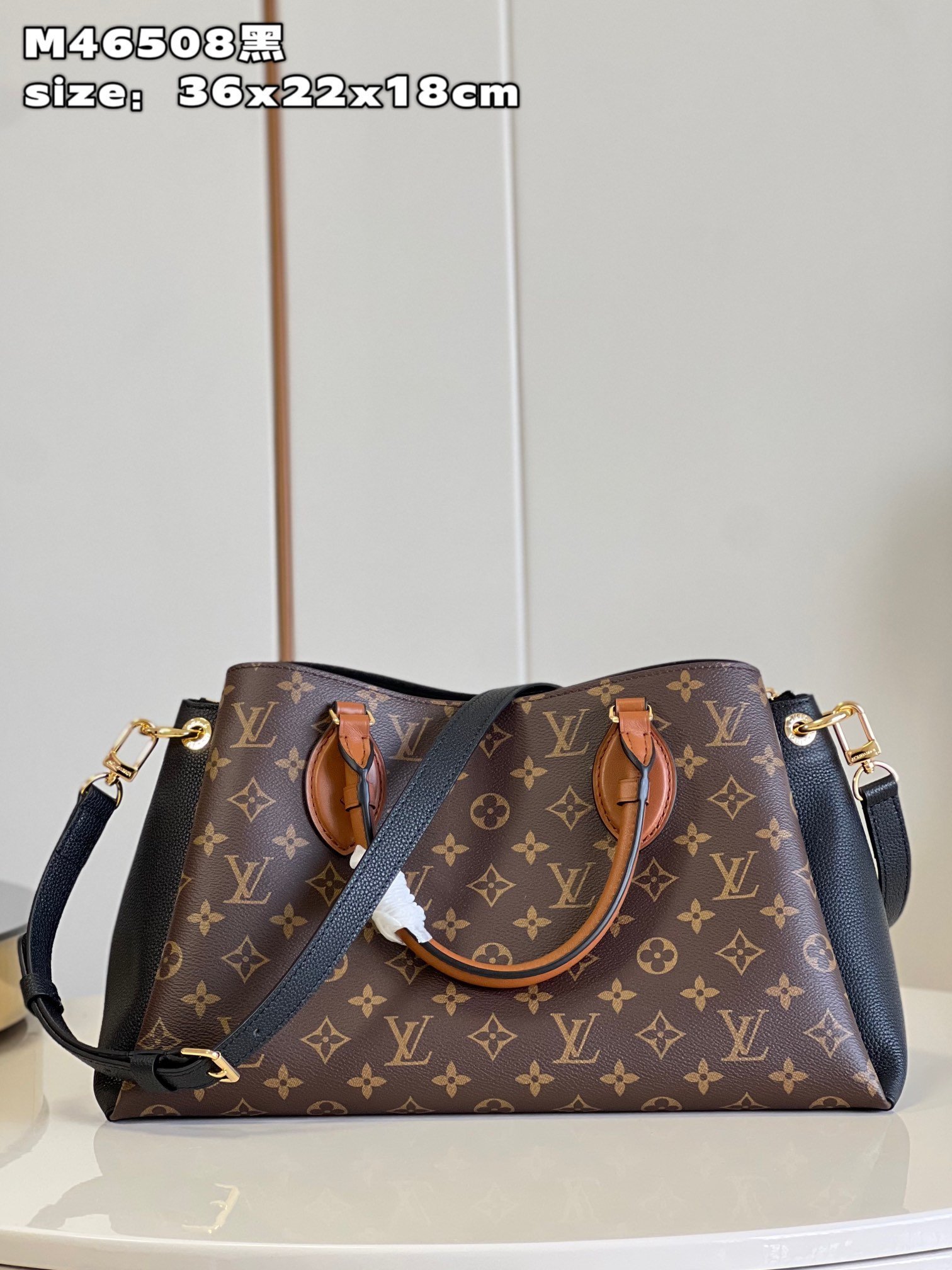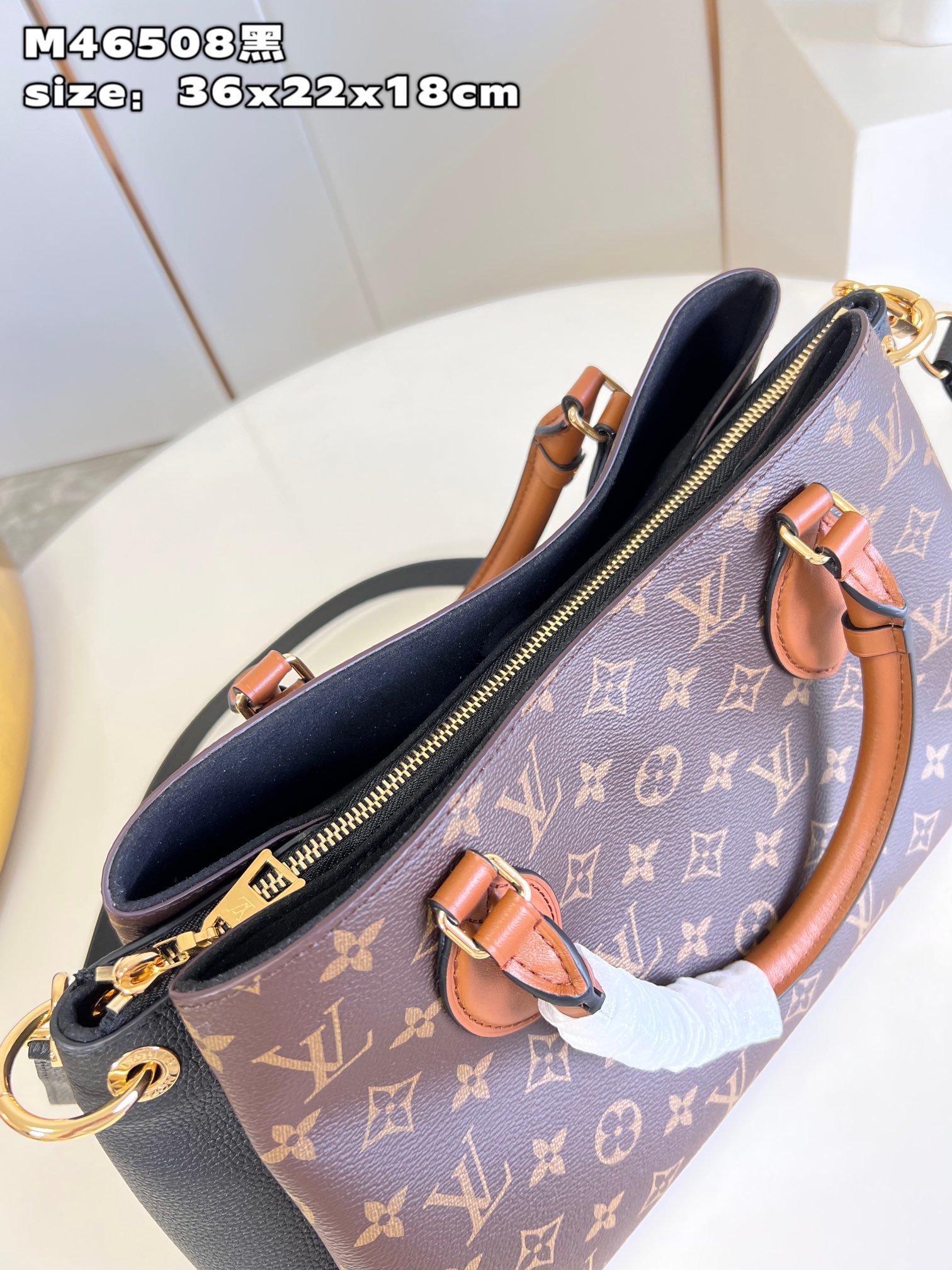 [Exclusive real shot M46508 black] VENDOME medium handbag looks back to the design of the Pallas handbag in 2012, showing the aesthetics of blending materials and colors. Monogram canvas combined with grained leather sides, smooth leather handles and handle loops. Interior compartment and pocket for laptop. size:36x22x18cm