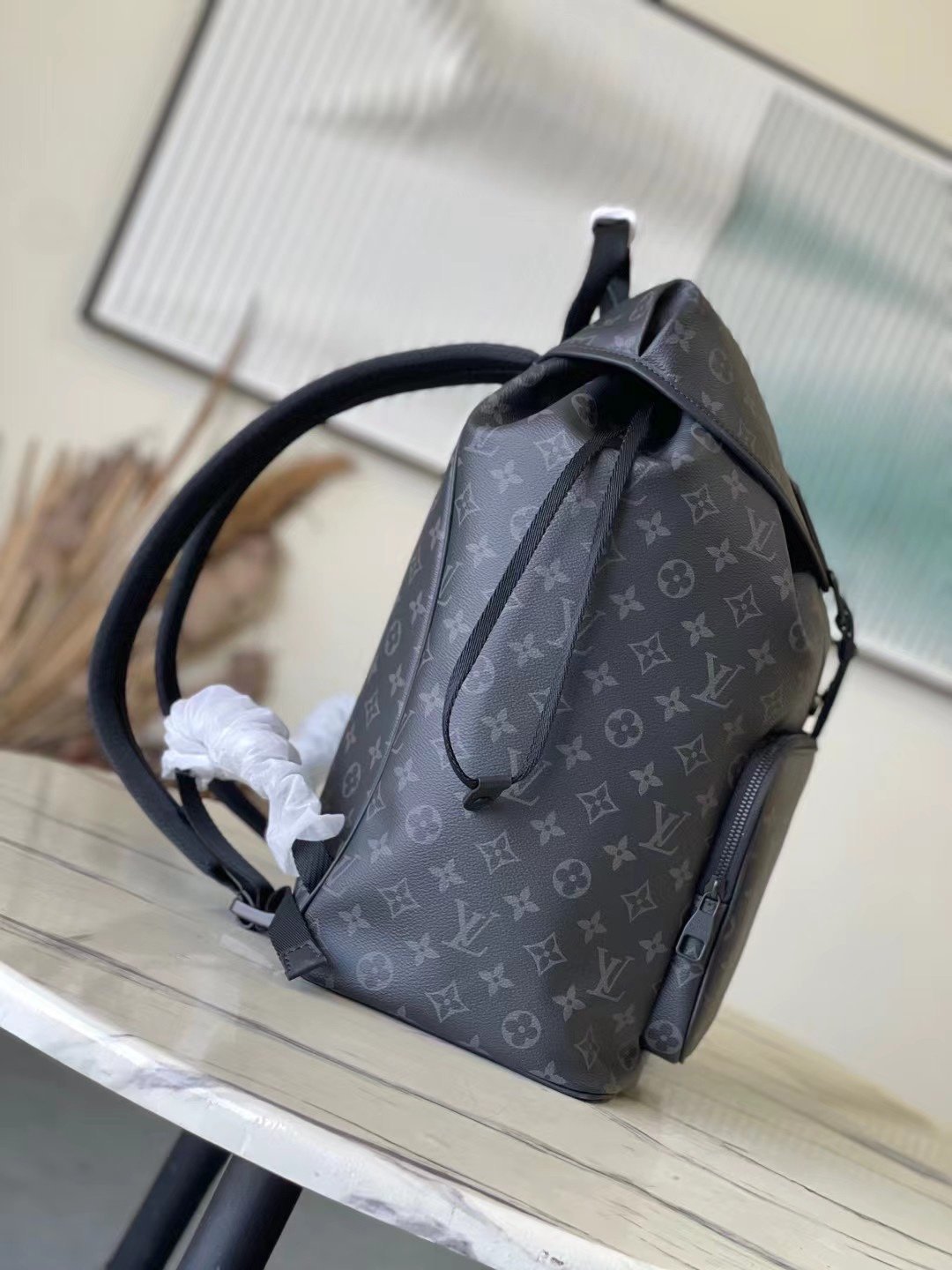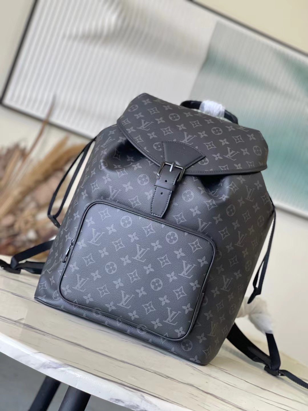 Top original order M46683 Black Flower This Montsouris backpack is made of Monogram Eclipse canvas with cow leather trim. The drawstring and magnetic buckle strap ensure secure storage. The large zippered front pocket makes it easy to take everything you need on the go, and the adjustable shoulder strap provides a comfortable carrying experience. Dimensions: 32 × 40 × 19 cm