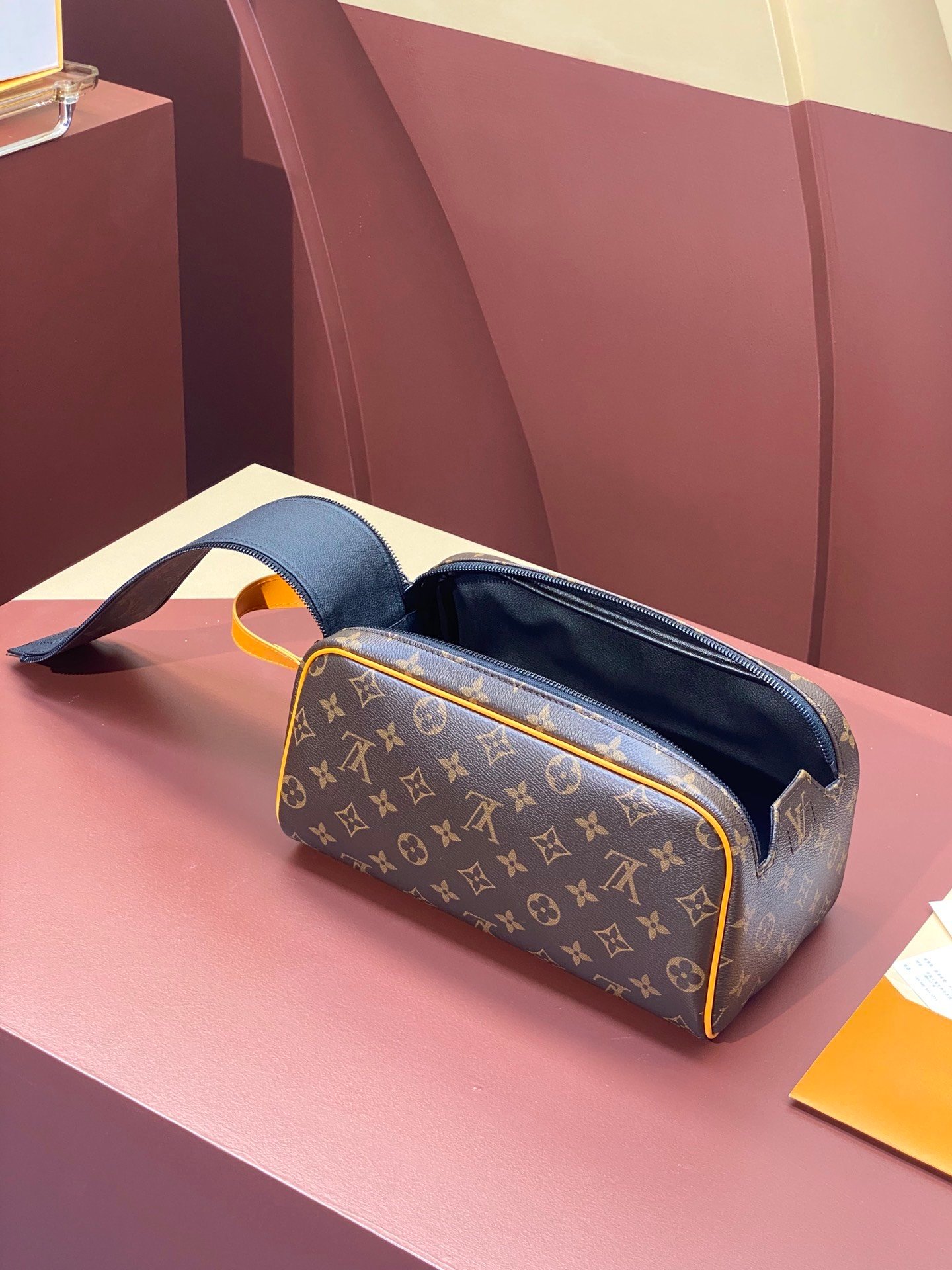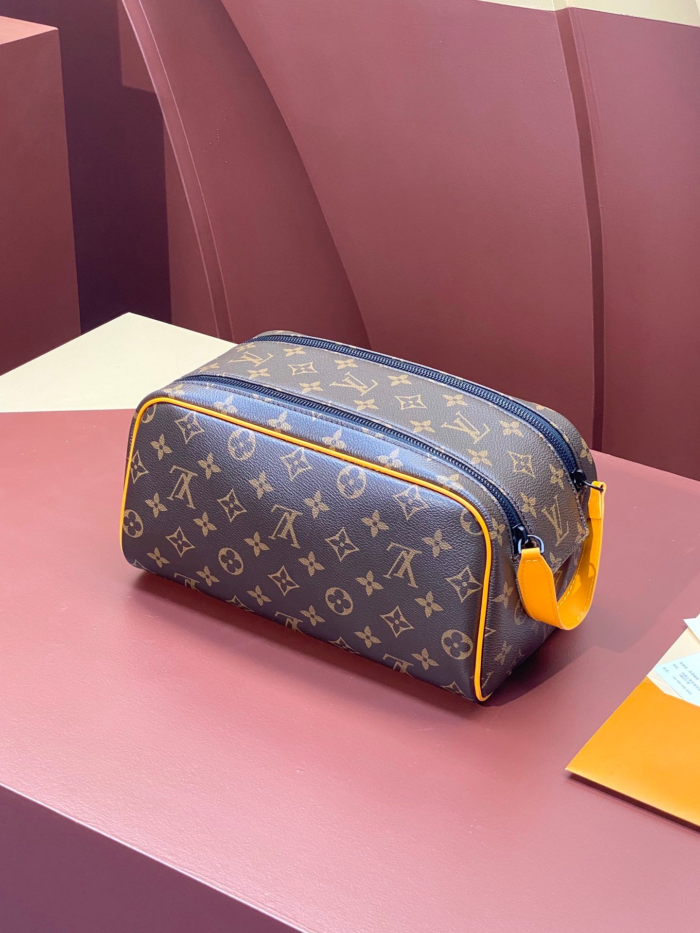 M46696 presbyopia! Made from fine-grained Taurillon Monogram leather, this Dopp Kit toiletry bag is an elegant way to carry toiletries and other personal items. The bag is spacious, equipped with double zipper closure and washable lining, making it both stylish and functional. This accessory makes a thoughtful gift or perfectly complements any travel bag. Dimensions: 28 x 15 x 16.5 cm.