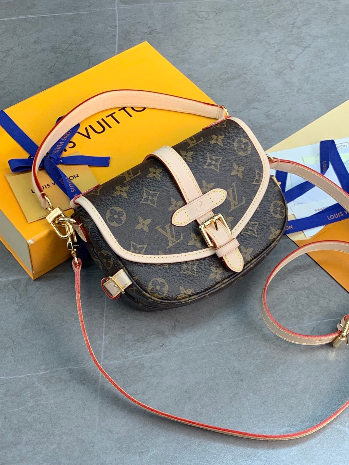 M46740 presbyopia mini! The Saumur BB bag in Monogram canvas reinterprets a beloved archival design with a contemporary twist. The saddlebag shape and natural cowhide belt buckle evoke the equestrian spirit, but the front buckle hides the magnetic closure: a convenient, modern touch. This compact bag has space inside for the day’s essentials and is versatile thanks to its removable shoulder strap and handle. size:20x15x7.5cm