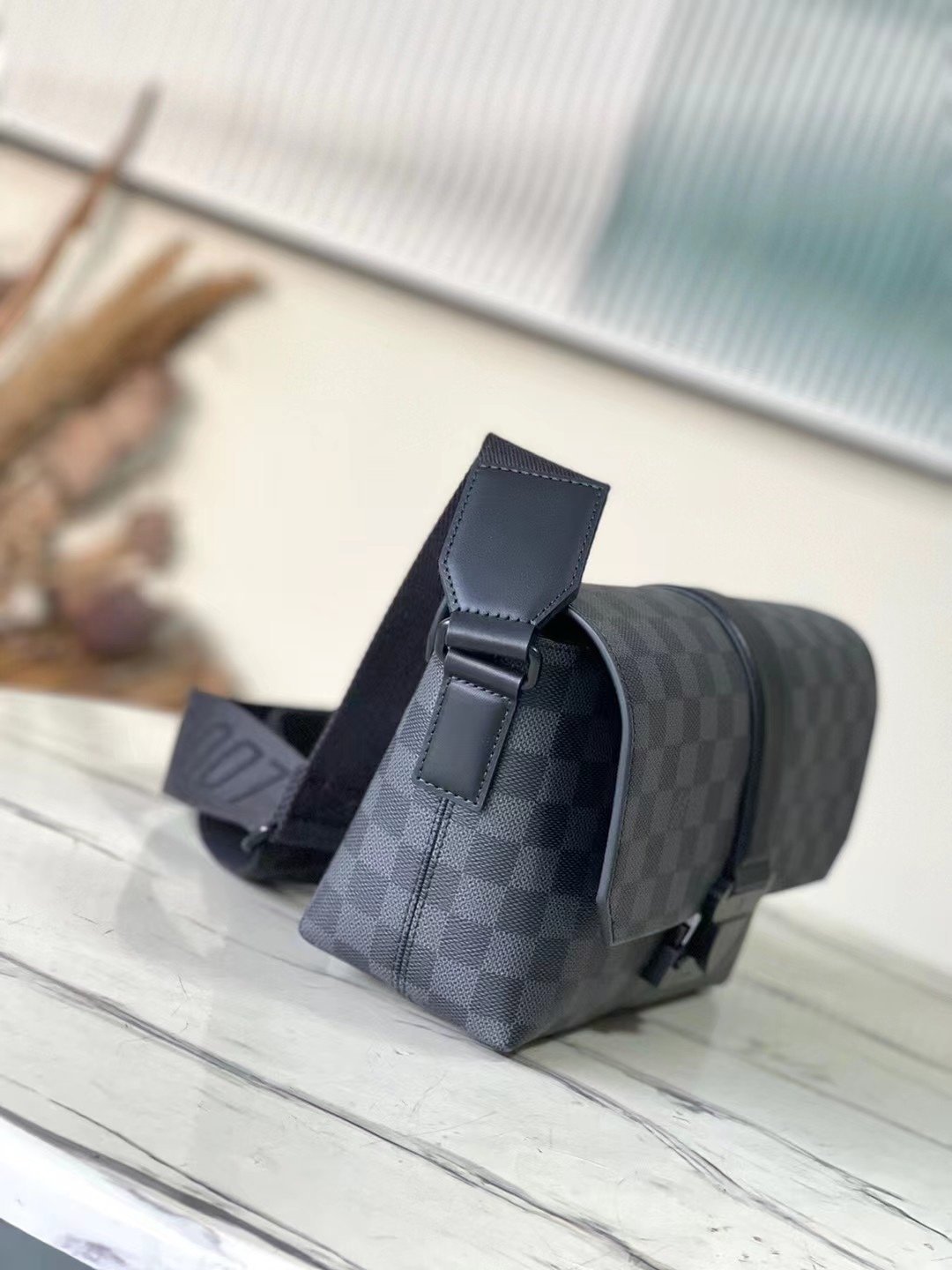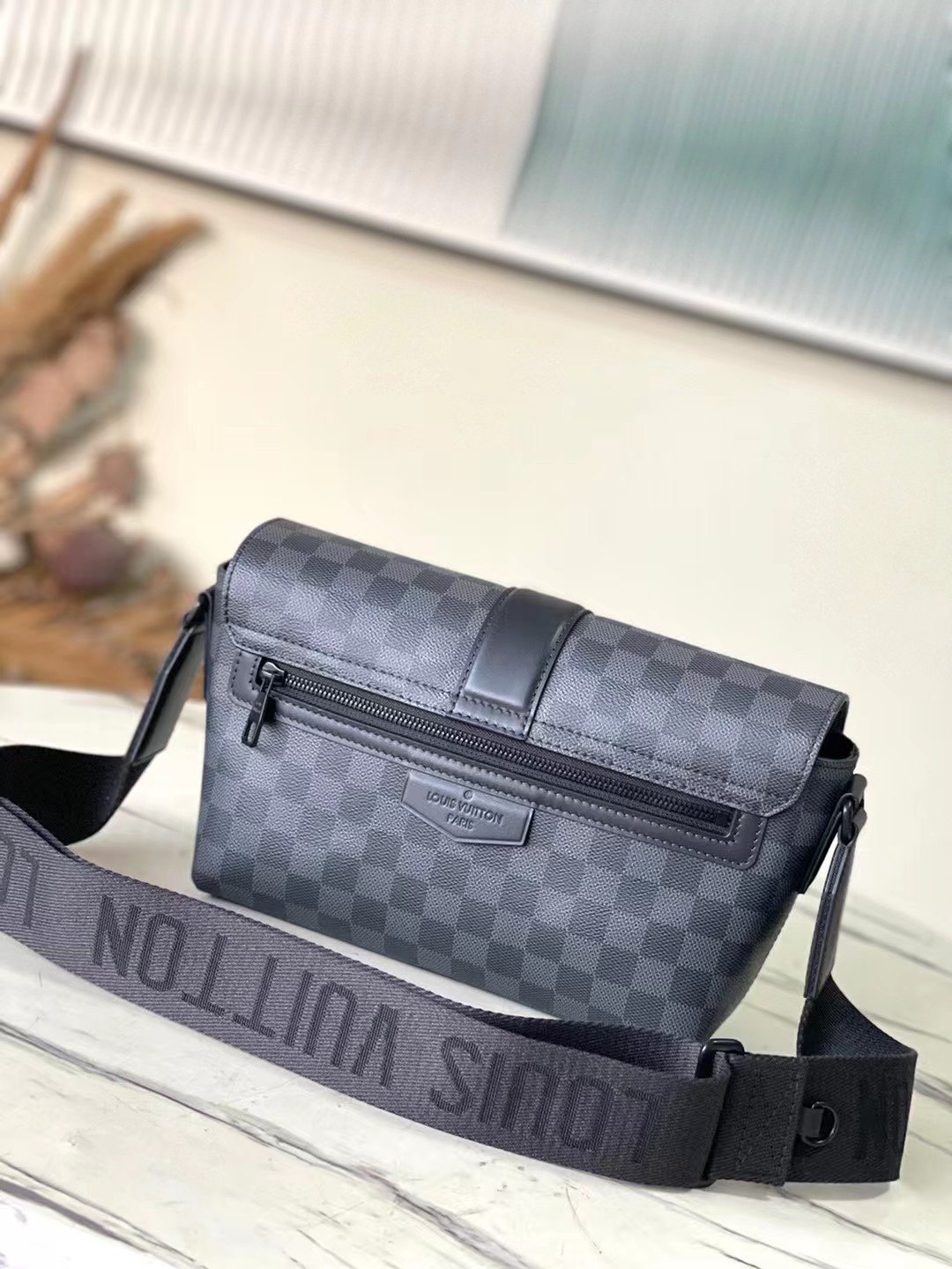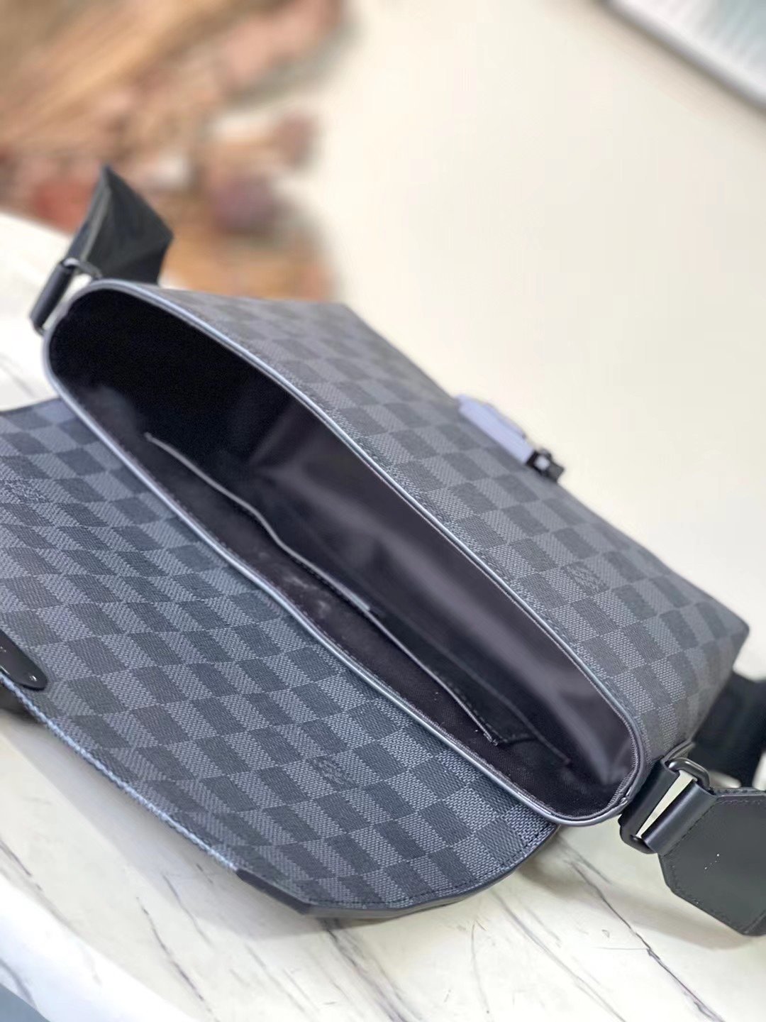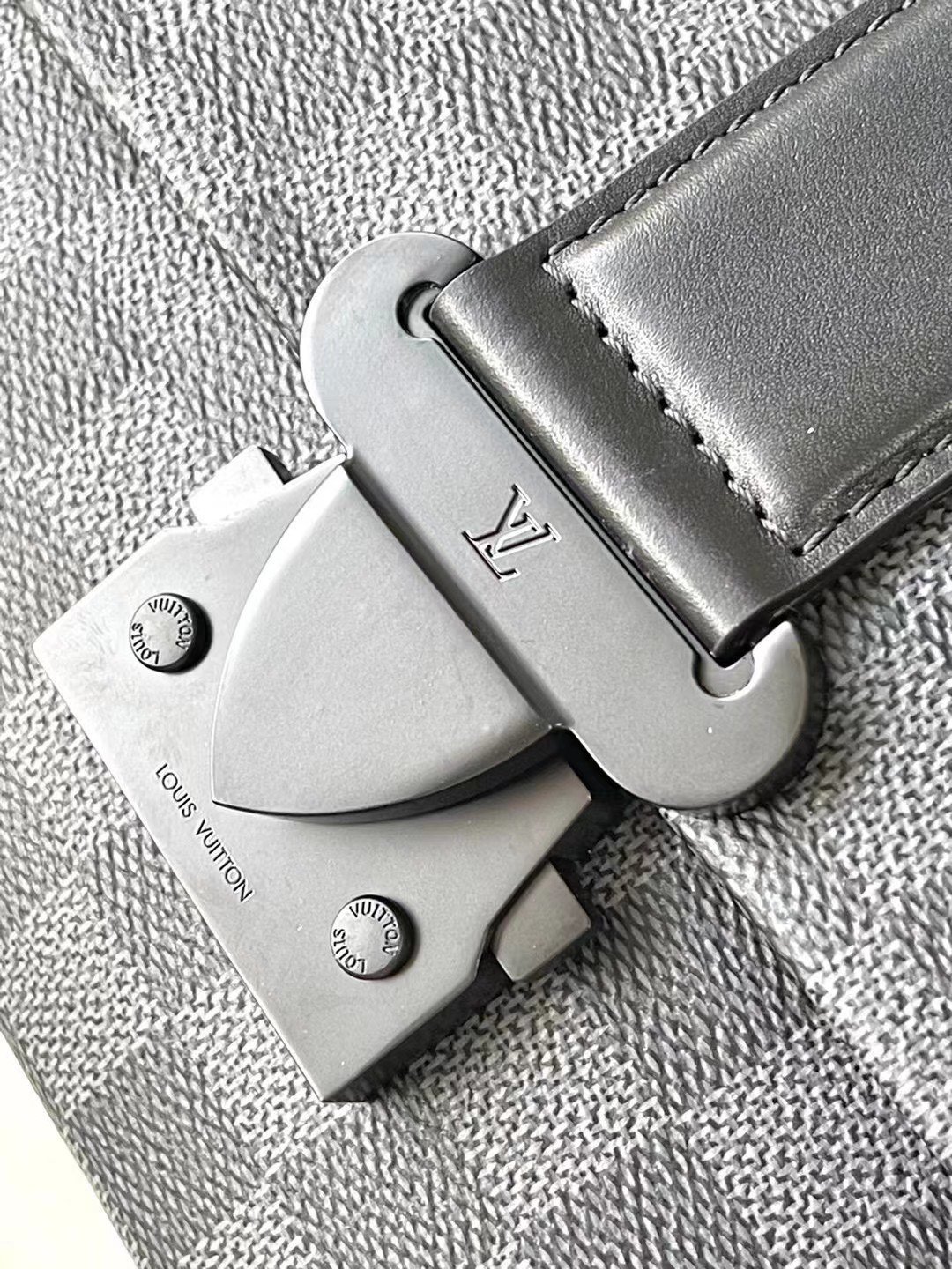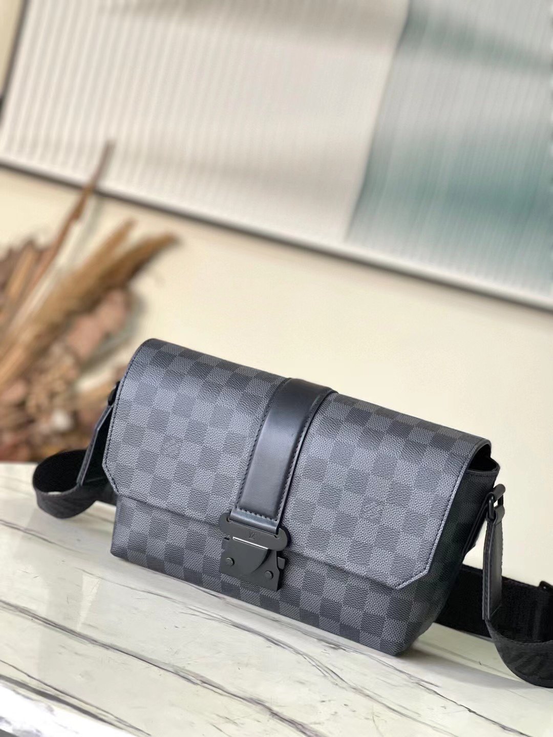 Top original order M46794 black check S-Cape messenger bag Zhouyuan brand collection leather hard case, rendered in monochrome Monogram Ecipse canvas. The new S-lock adds a sophisticated style and provides proper protection for your belongings. Dimensions: 28 × 16 × 10 cm