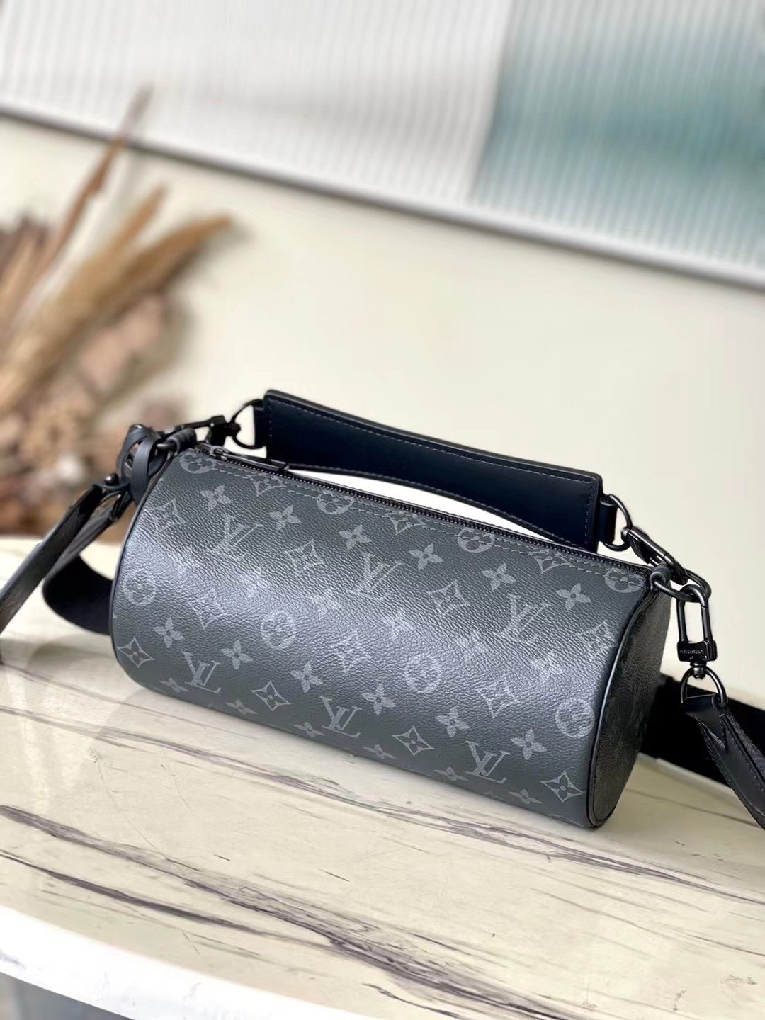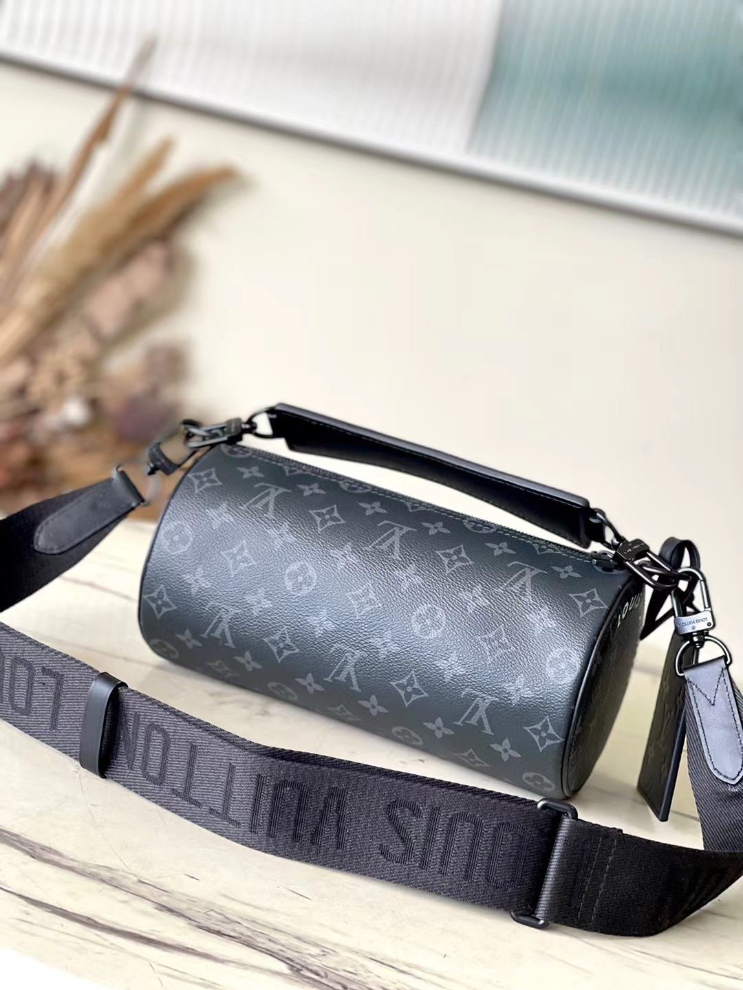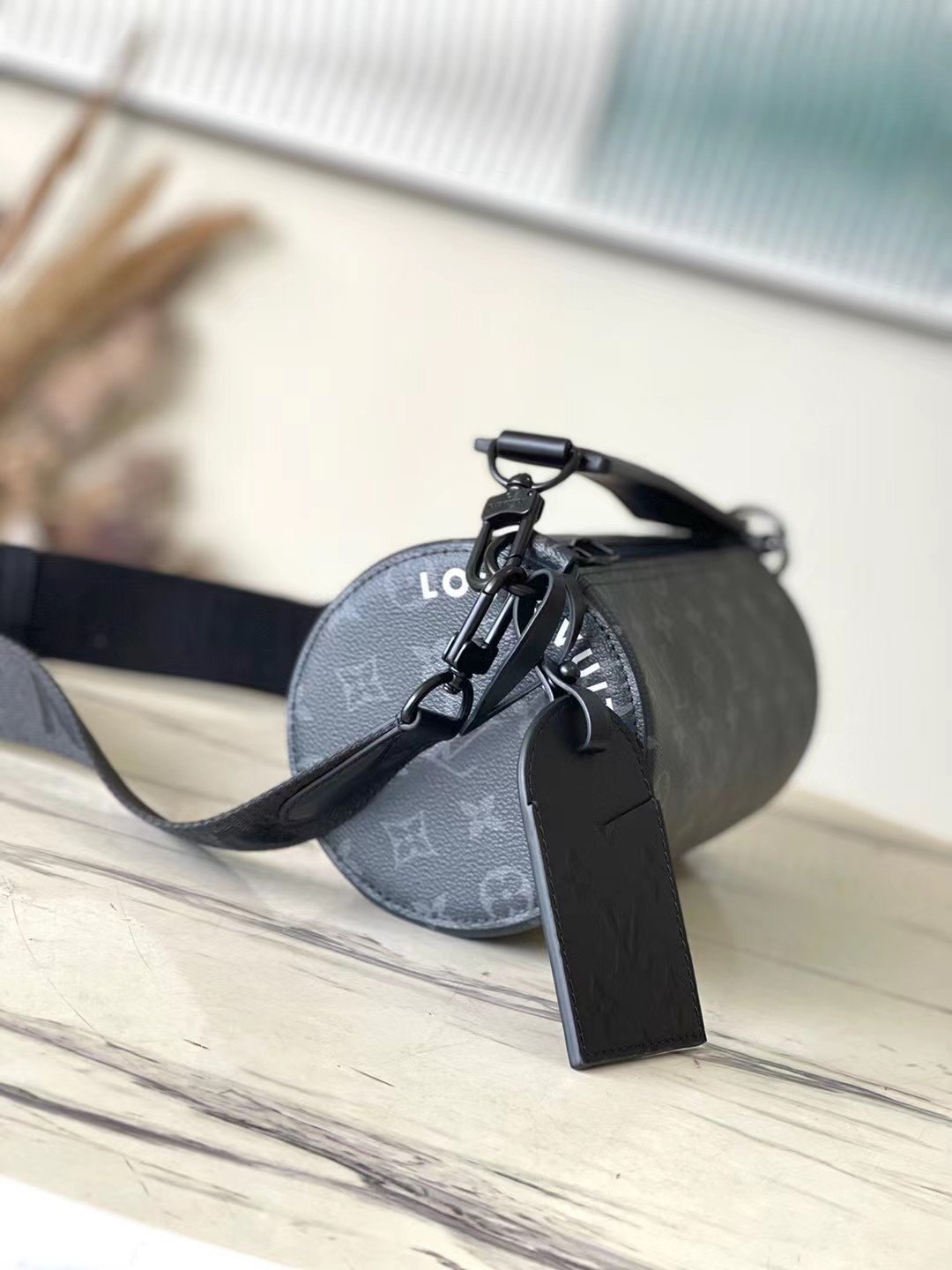 The fusion of Monogram Macassar canvas and bright leather details makes the chic cylindrical silhouette more modern, providing an alternative way to carry daily essentials. The body-fitting design has a detachable leather handle and a detachable and adjustable fabric shoulder strap, allowing for a variety of travel options~