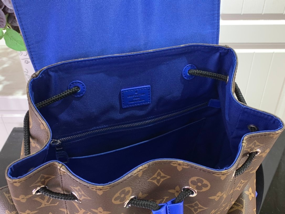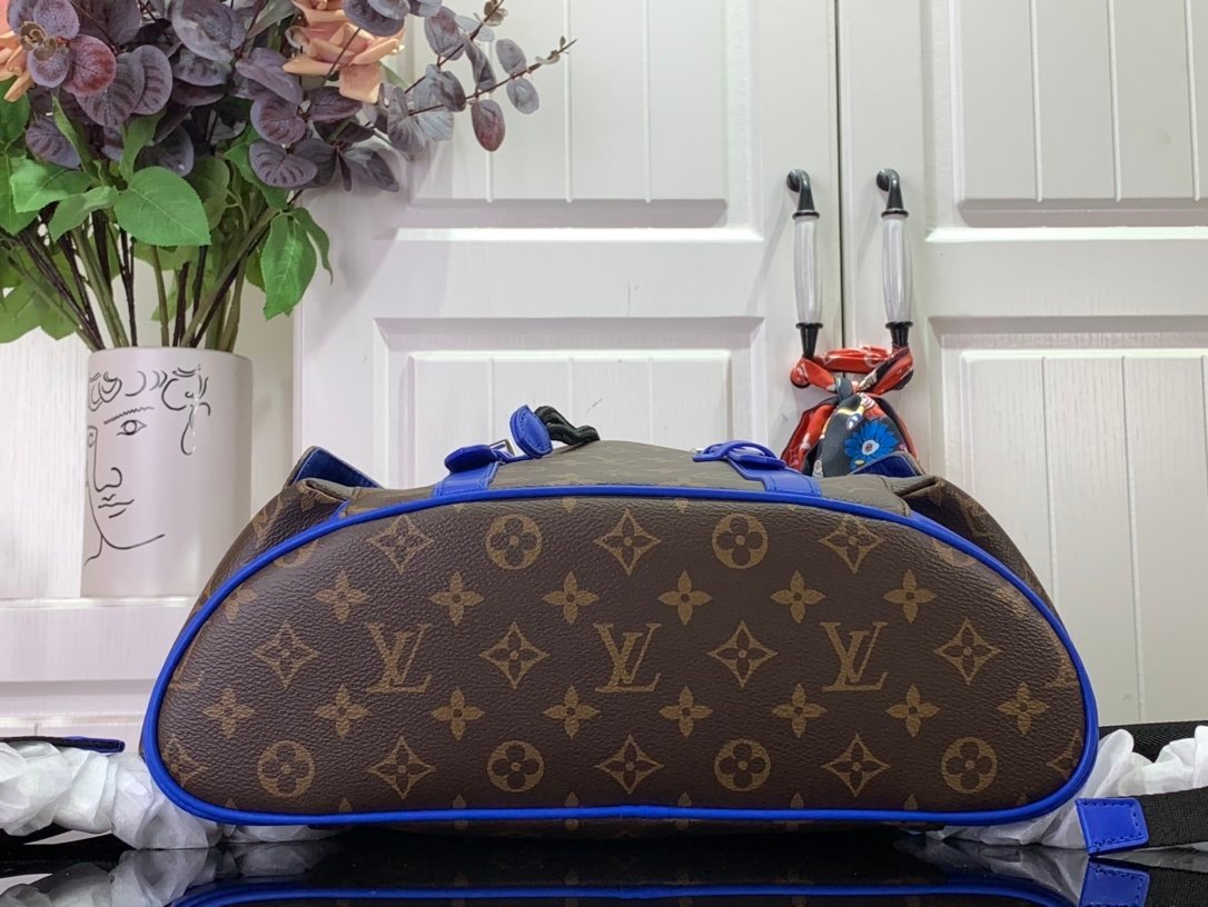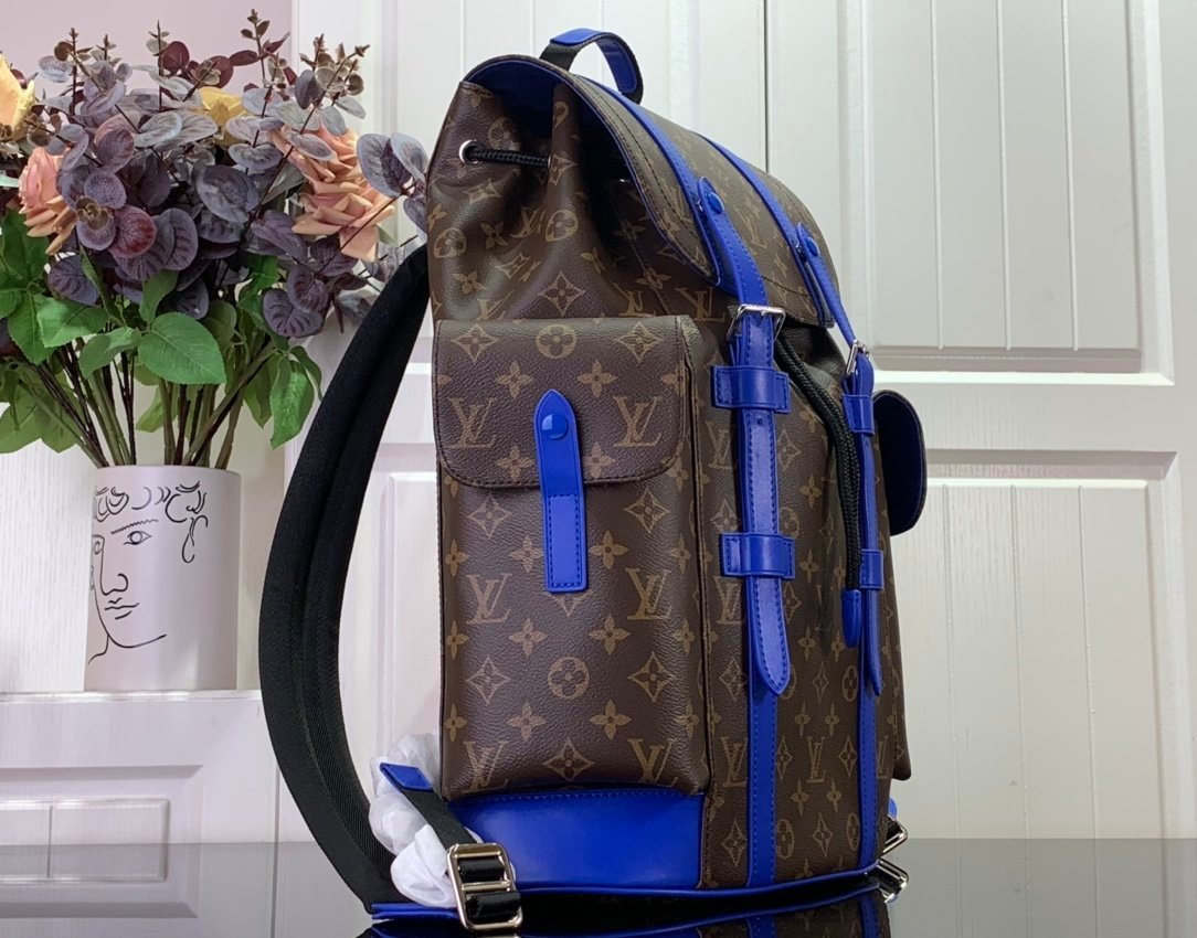 This medium Christopher backpack is crafted from Monogram Macassar canvas and accentuated by bright leather trim. Side pockets provide easy access to frequently used items, and the spacious main compartment offers neat storage with patch pockets, iPad pockets, and zipper pockets.