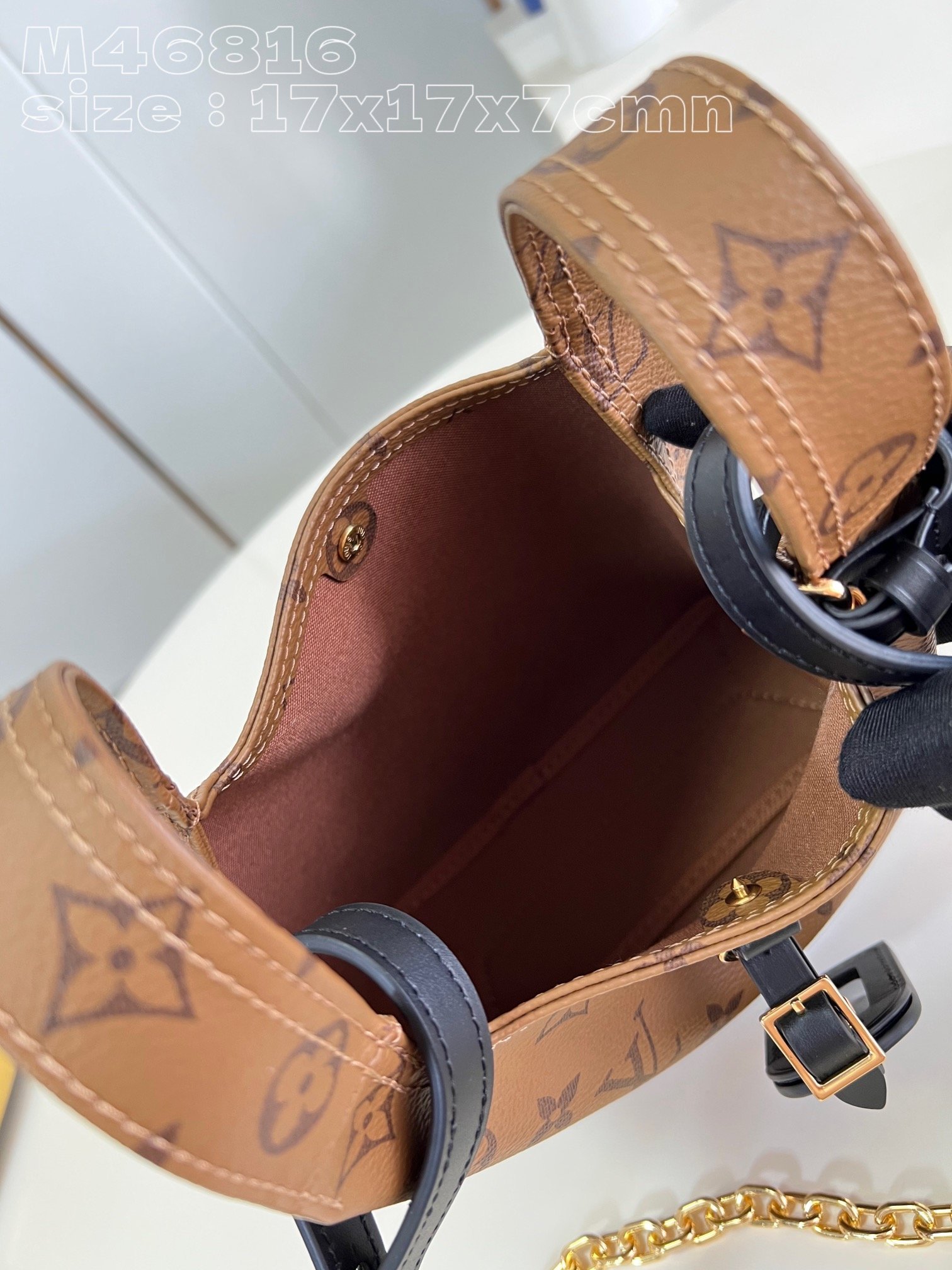 [Exclusive real shot M46816 Yellow Flower] The Atlantis BB handbag is made of Monogram reverse canvas, decorated with dark cowhide trim, including LV nameplate and detachable shoulder strap. The fashion-forward shape and soft construction inspired by shopping bags make it very body-friendly. Adjustable, removable shoulder strap allows for cross-body carry. size:17x17x7cm