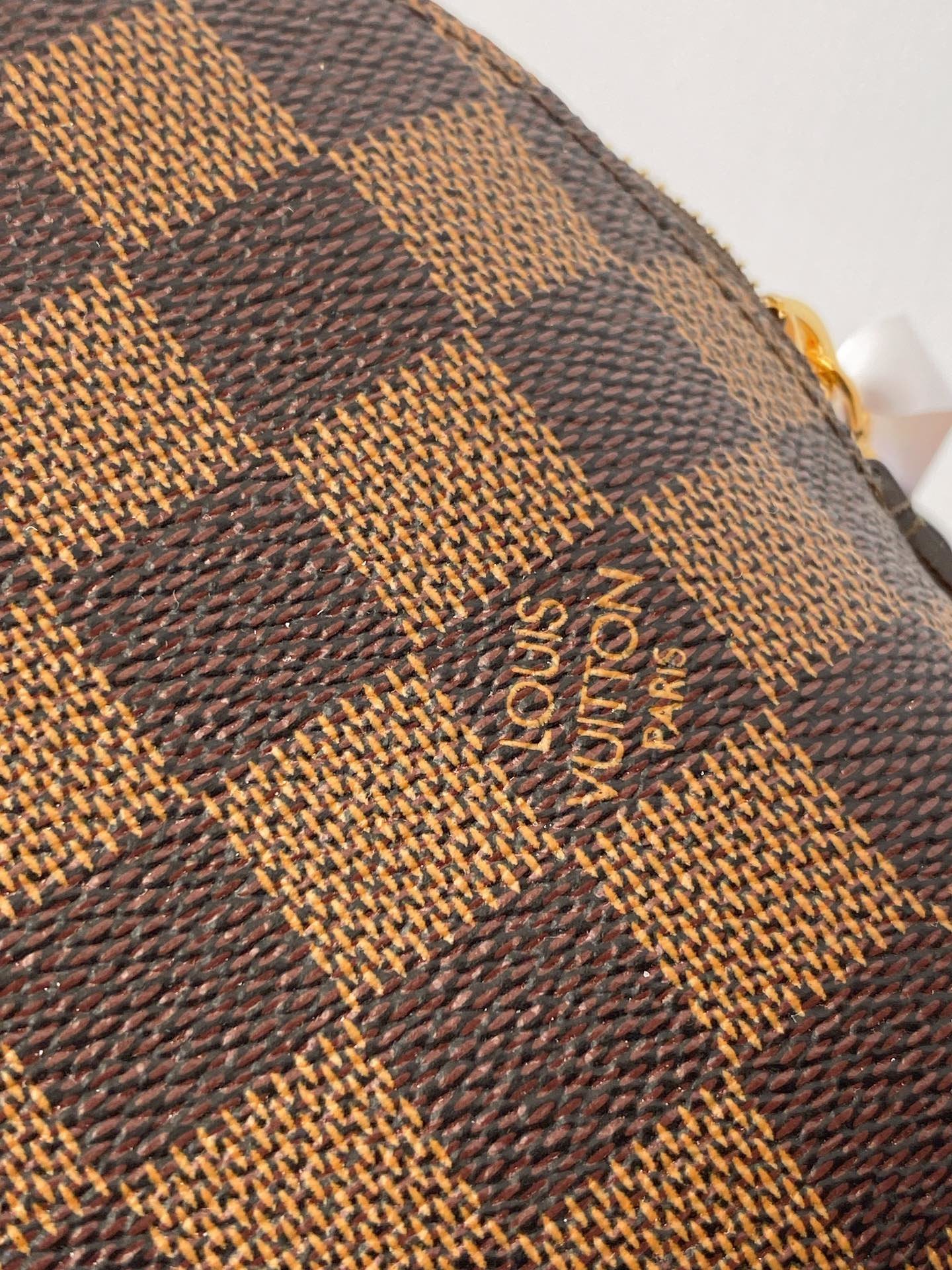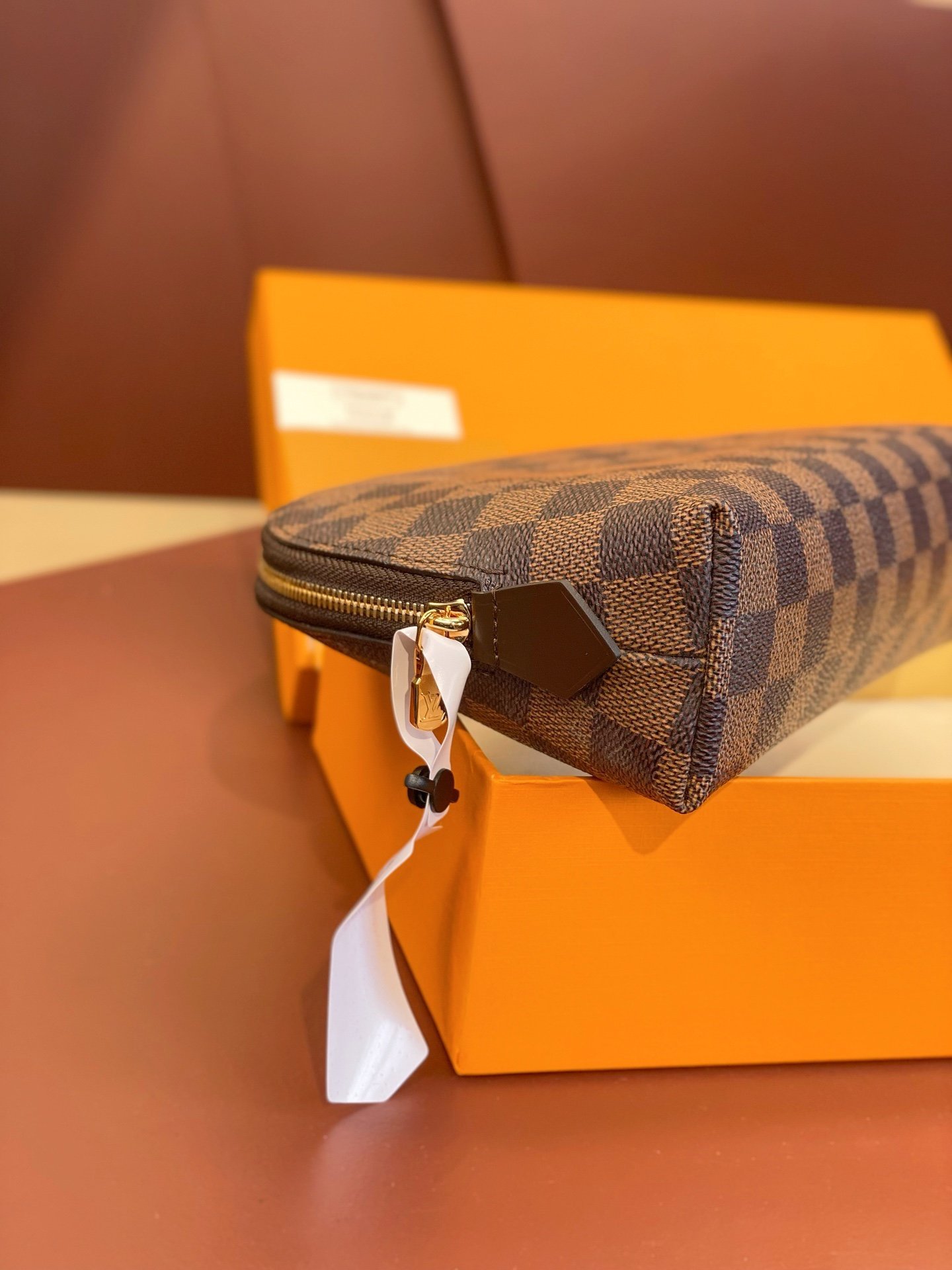 Brown size! M47353 This large cosmetic bag is made from classic and stylish Monogram canvas, which is the ultimate luxury. Shiny gold-tone metal details and cotton lining add to the elegance. 24.0x 17.0x 6.0 cm