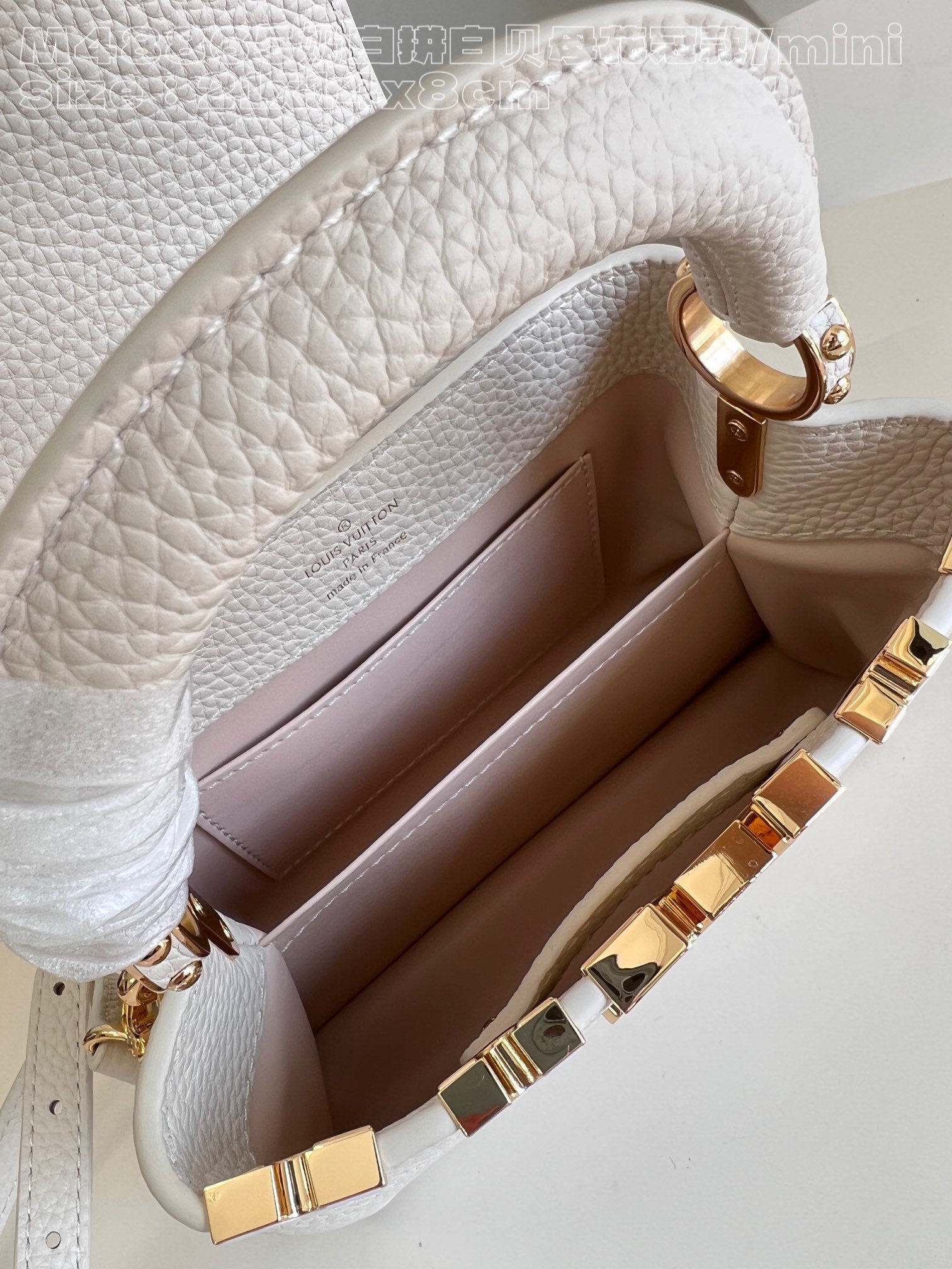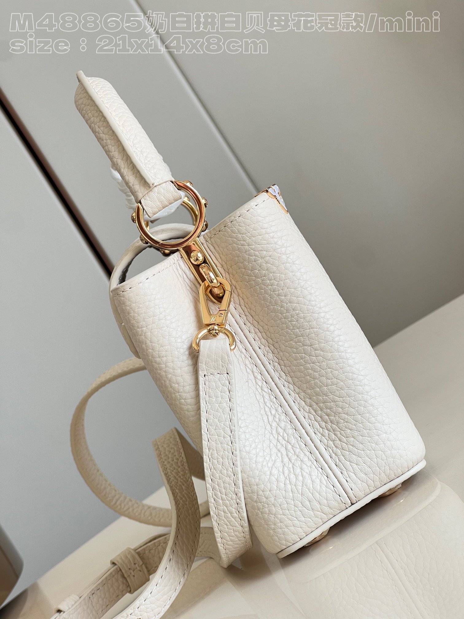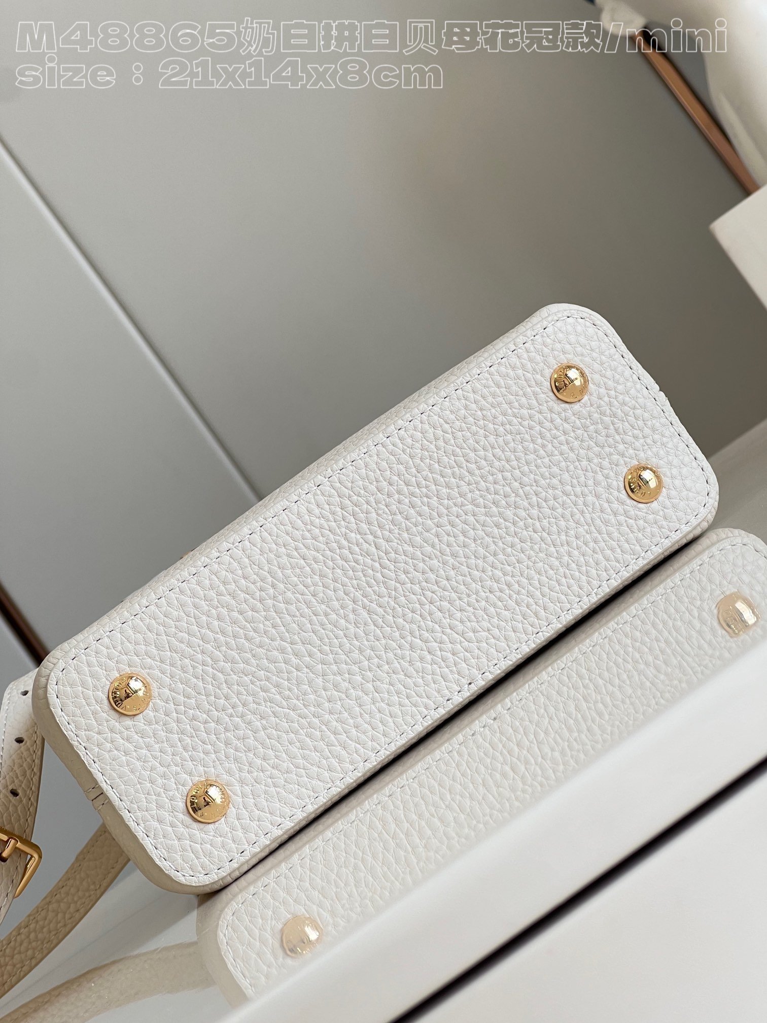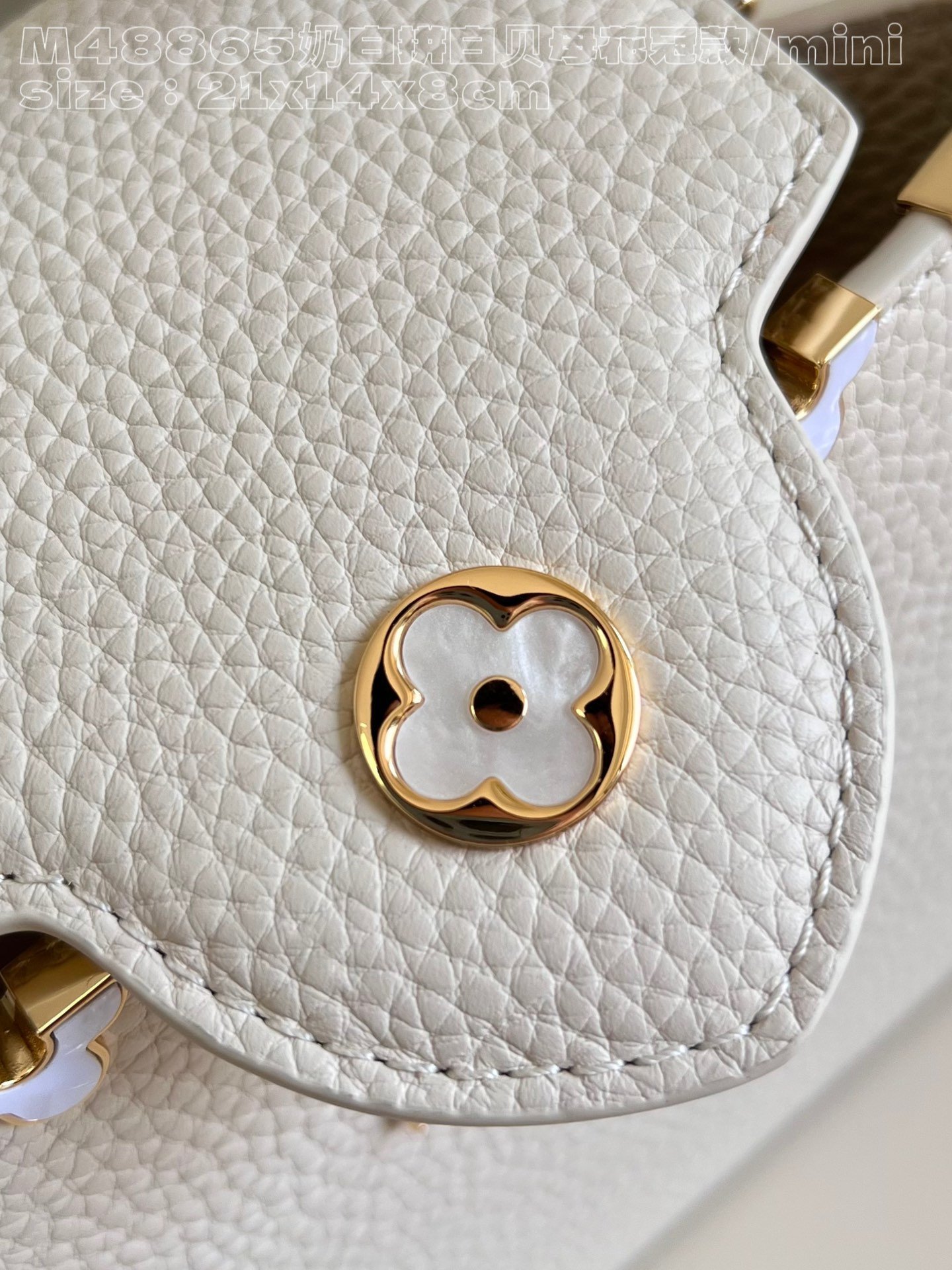 [Exclusive real shot M48865 milk white and white mother-of-pearl corolla mini] Capucines mini handbag imported from France calfskin, shiny metal accessories, unique Capucines cover can be stored in the bag to display the letter logo, and can be turned out to display the Monogram Flower pattern size:21x14x8 cm