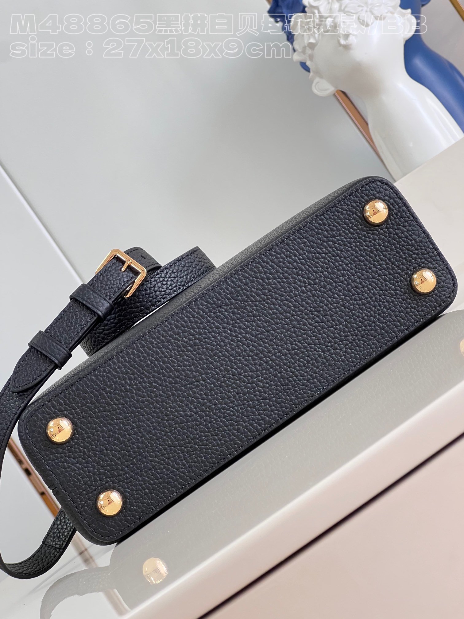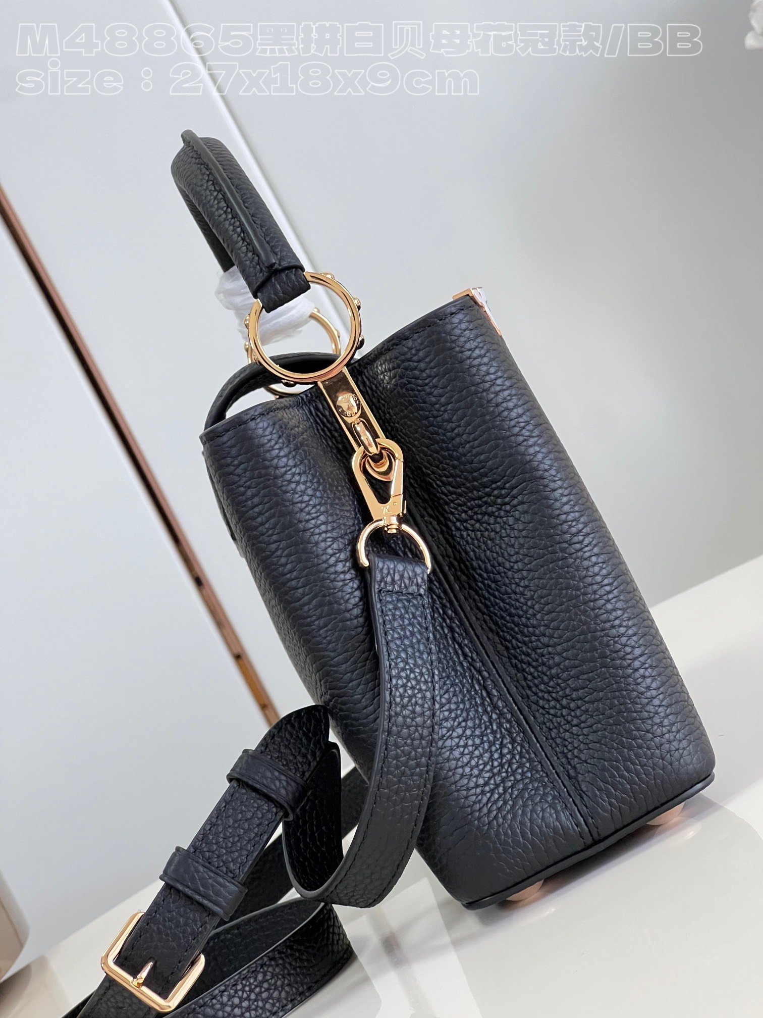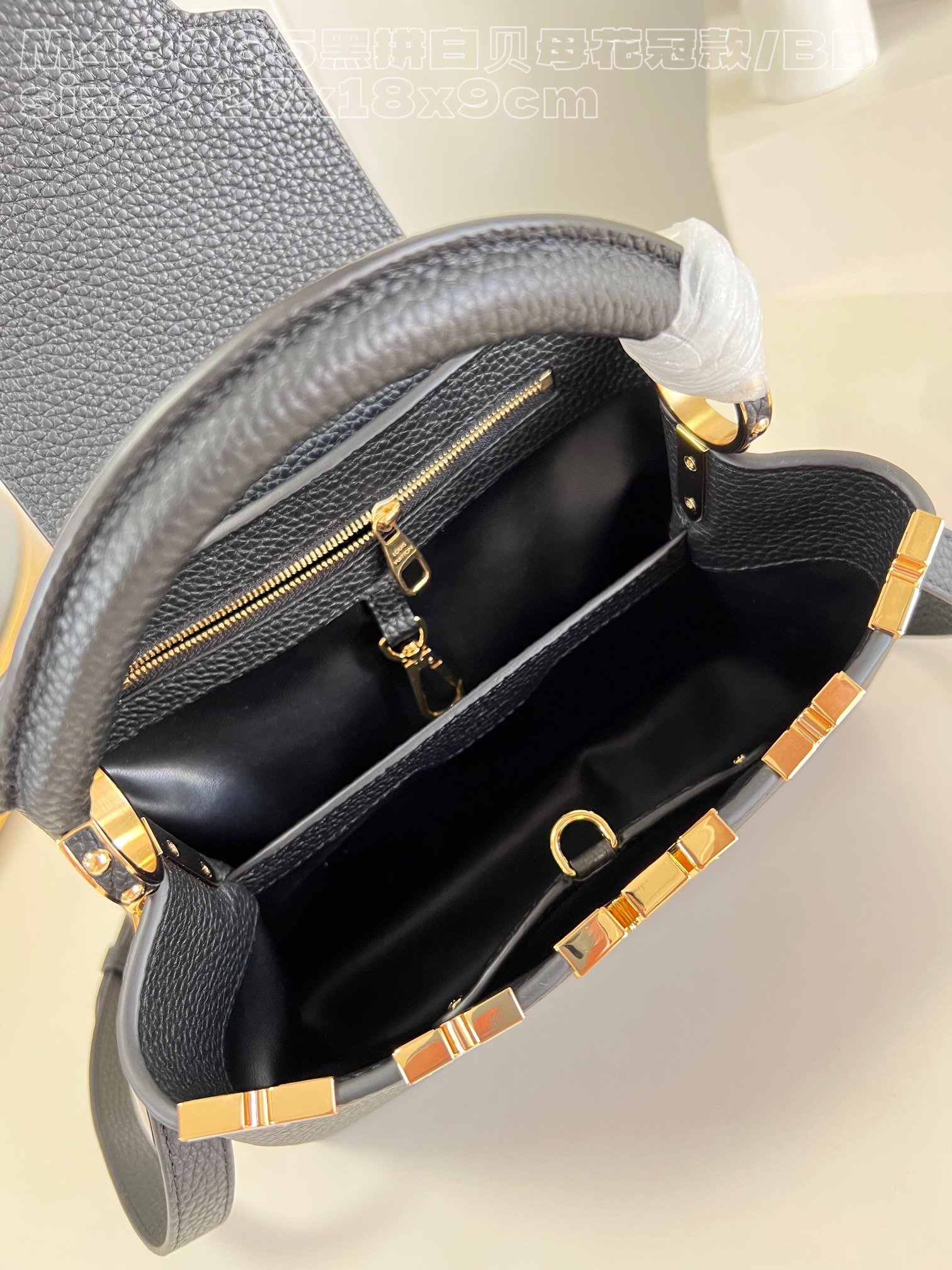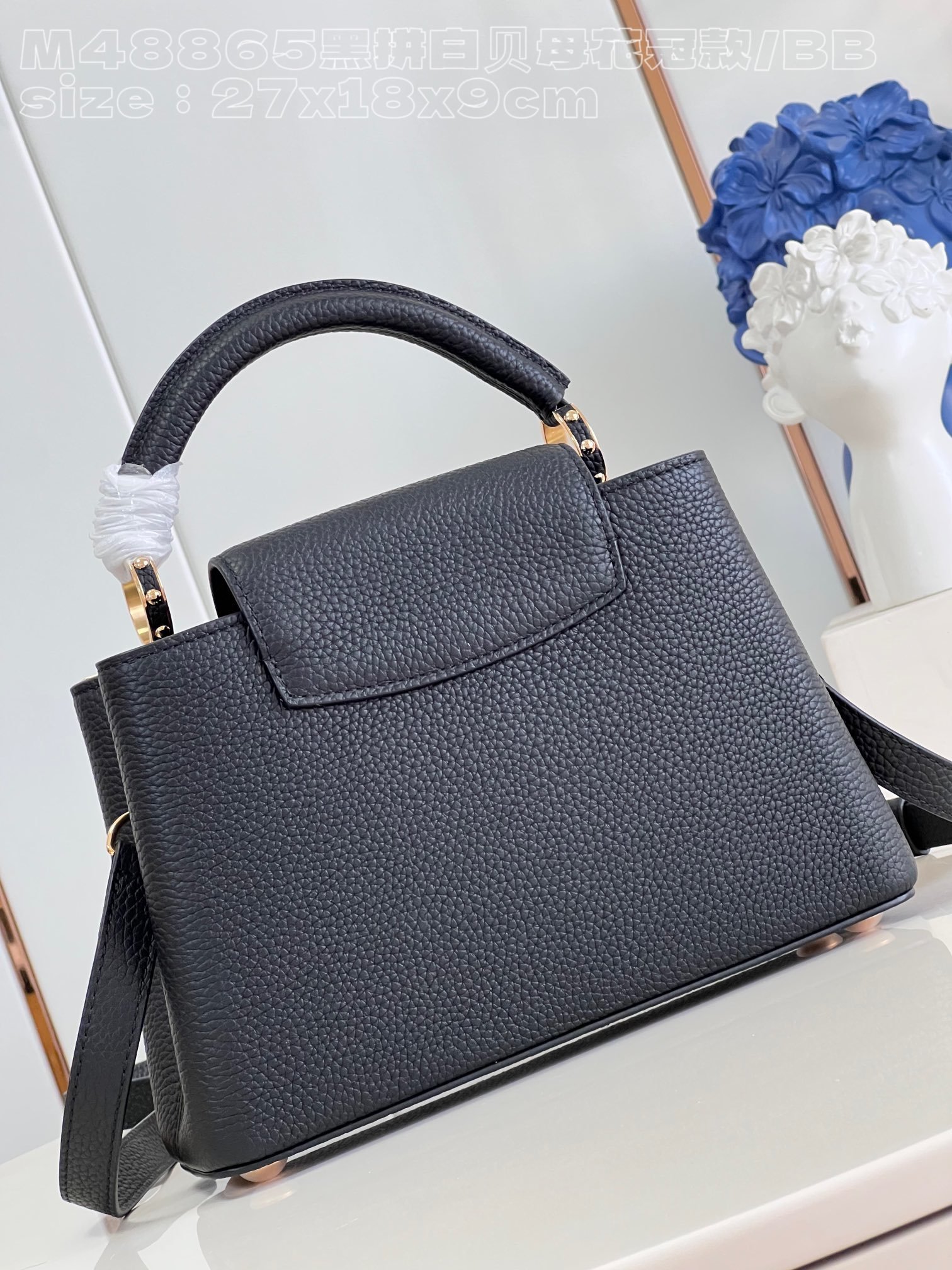 [Exclusive real shot M48865 black and white mother-of-pearl corolla small size] Capucines BB handbag is made of calfskin imported from France, with shiny metal accessories. The unique Capucines cover can be stored in the bag to display the letter logo, and can be turned out to display the Monogram. Flower pattern size: 27x18x9cm