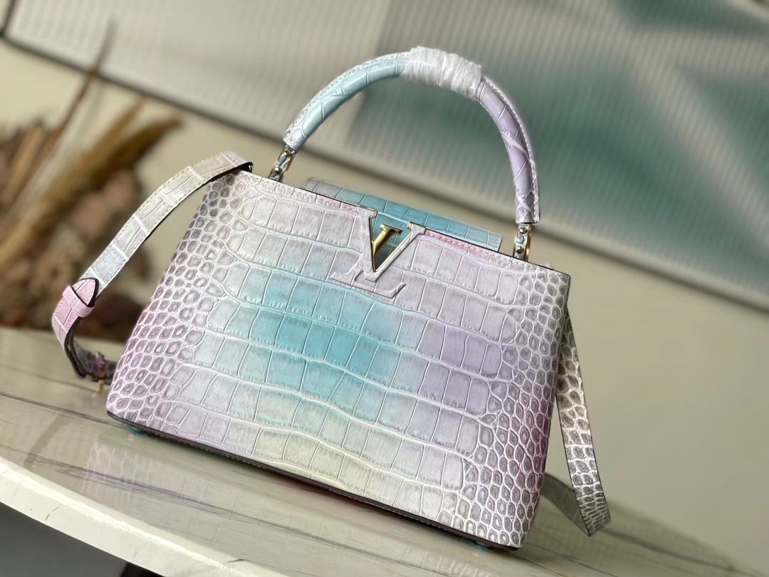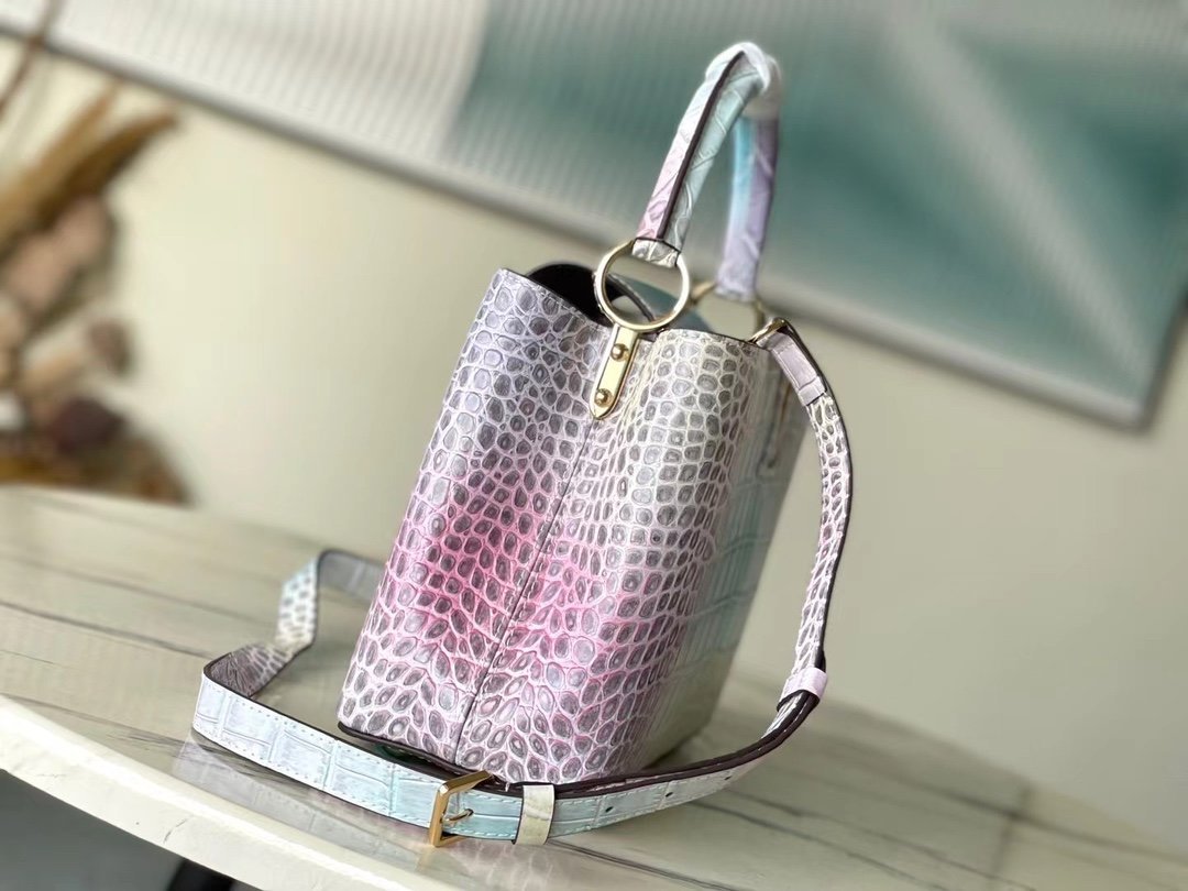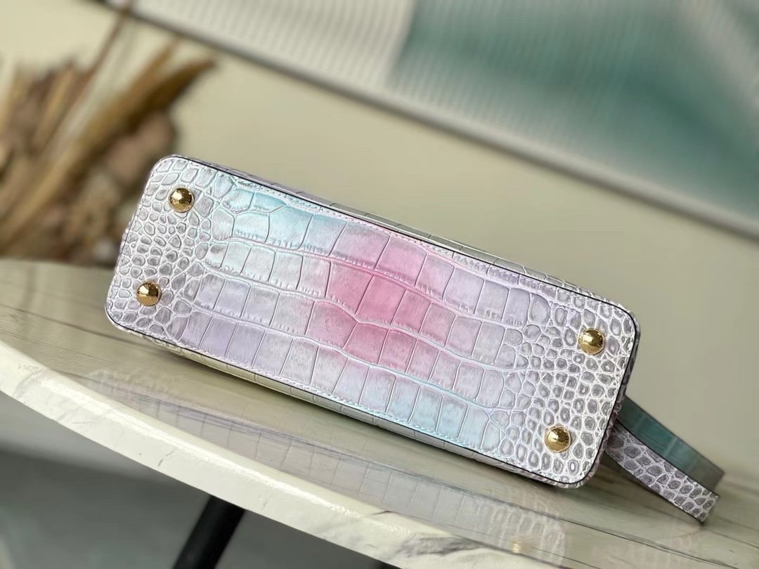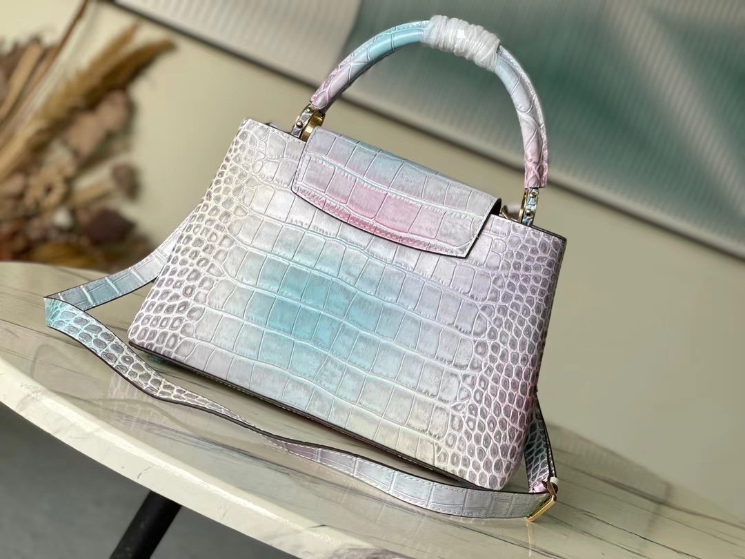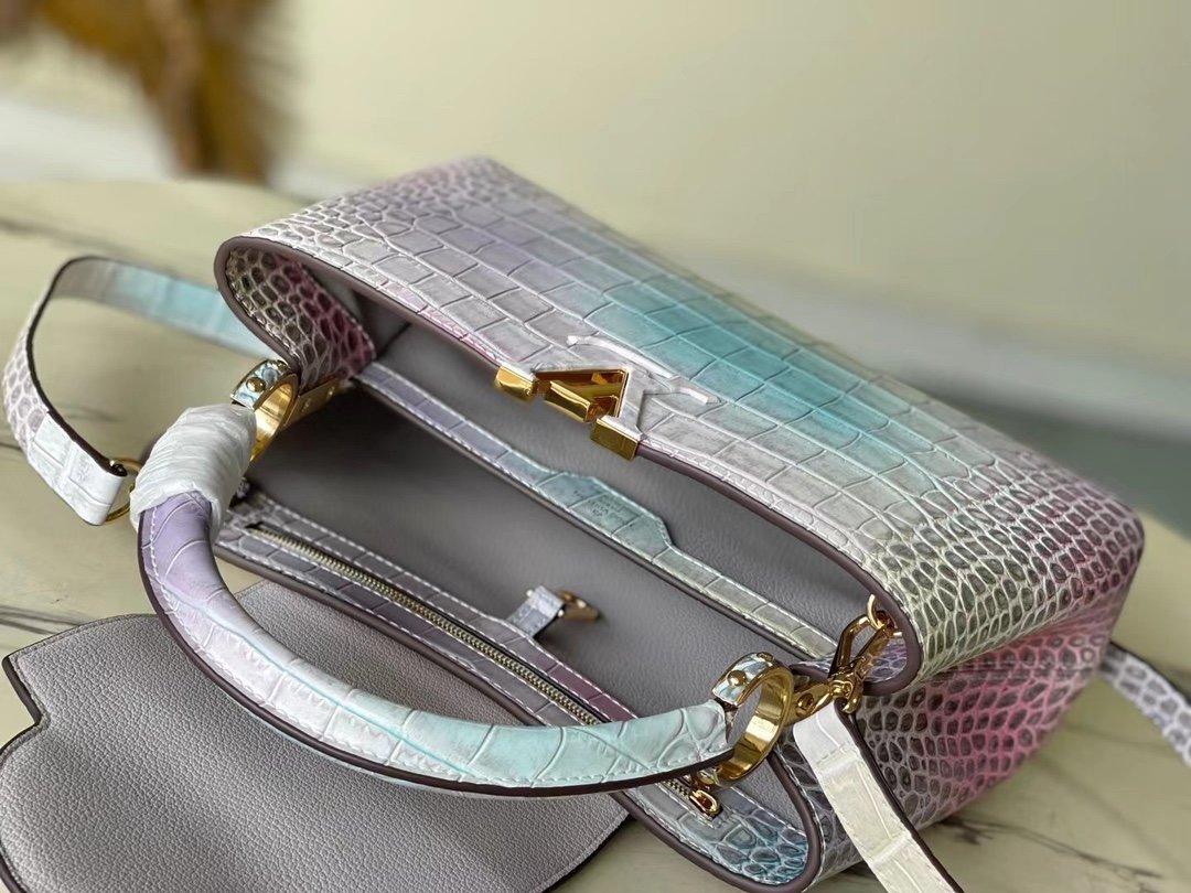 Top original order M48865 colorful crocodile pattern, noble crocodile leather pattern, luxurious goatskin lining, shiny metal accessories, unique Capucines cover that can be stored in the bag to display the letter logo, or can be turned out to display the Monogram Flower pattern. Size: 31.5* 20* 11 cm
