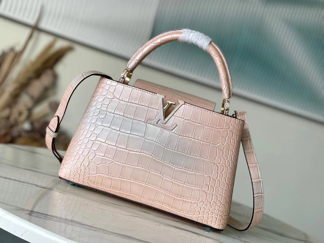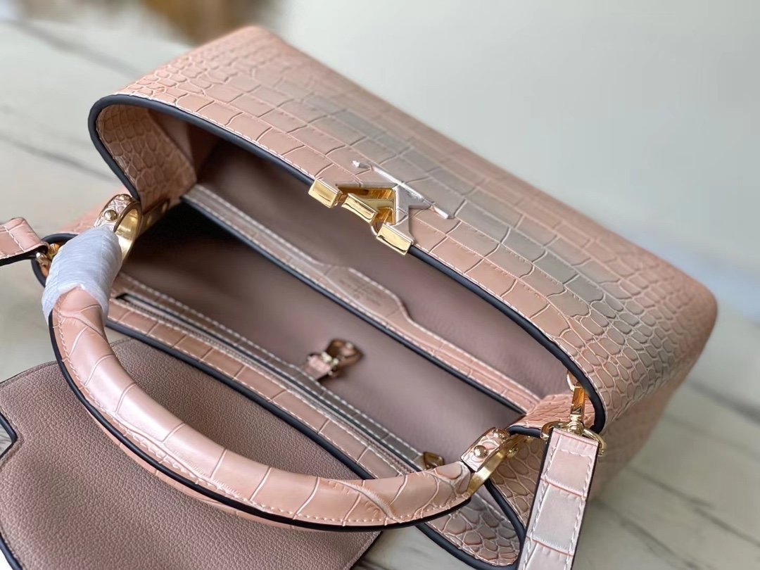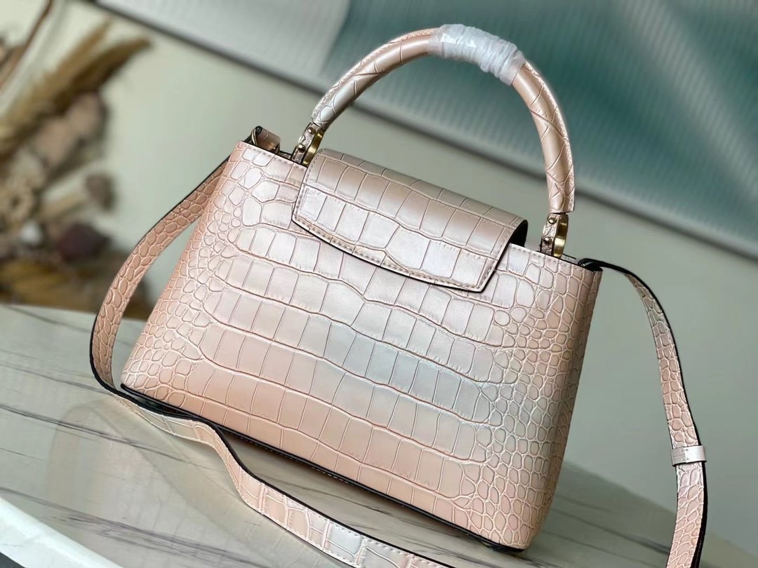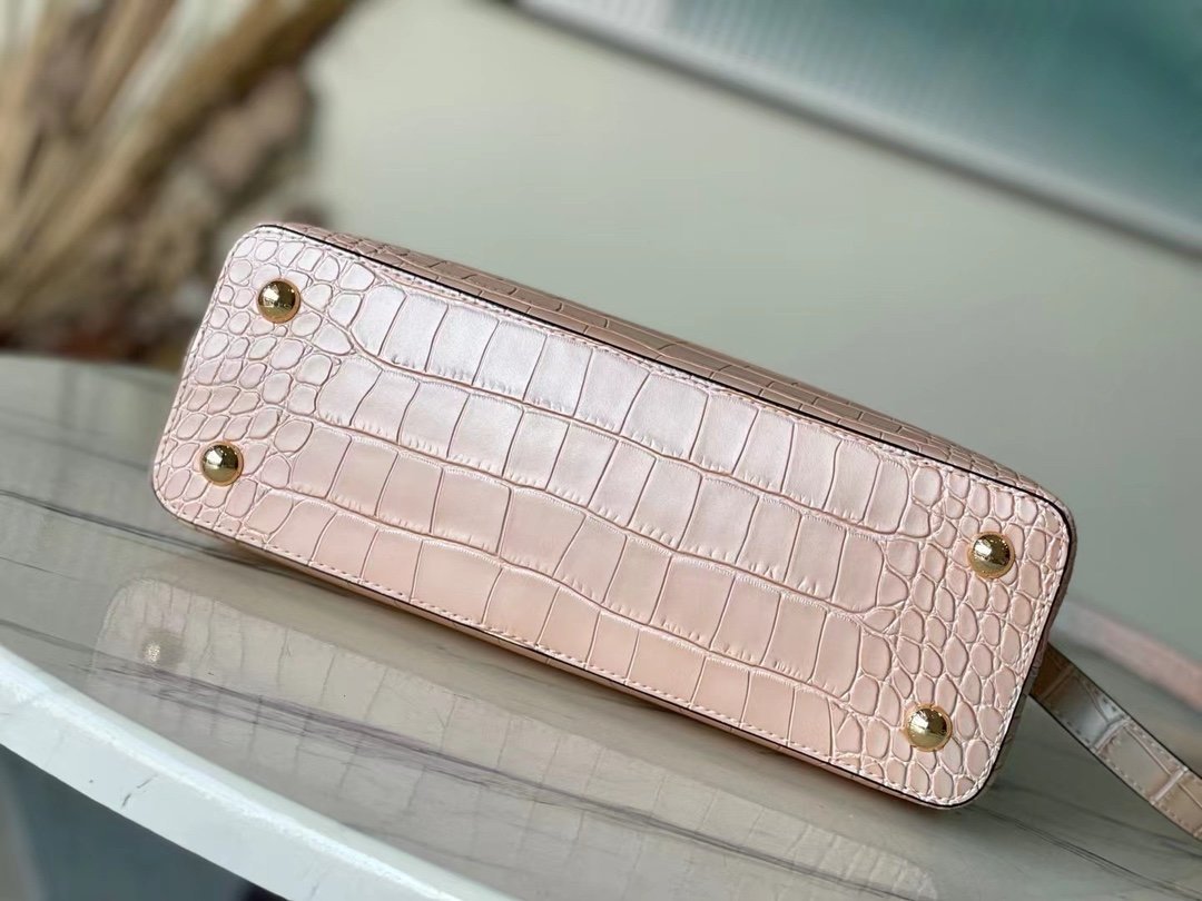 Top original order M48865 Gold powder crocodile pattern, noble crocodile leather pattern, luxurious goatskin lining, shiny metal accessories, unique Capucines cover that can be stored in the bag to display the letter logo, or can be turned out to display the Monogram Flower pattern. Size: 31.5* 20* 11 cm