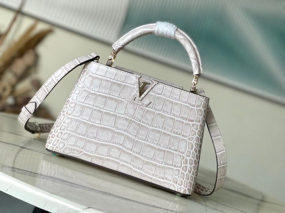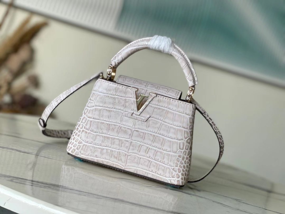 Top original order M48865 Sahara crocodile pattern, noble crocodile skin pattern, luxurious goatskin lining, shiny metal accessories, unique Capucines cover that can be stored in the bag to display the letter logo, or can be turned out to display the Monogram Flower pattern. Size: 21* 14* 8 cm