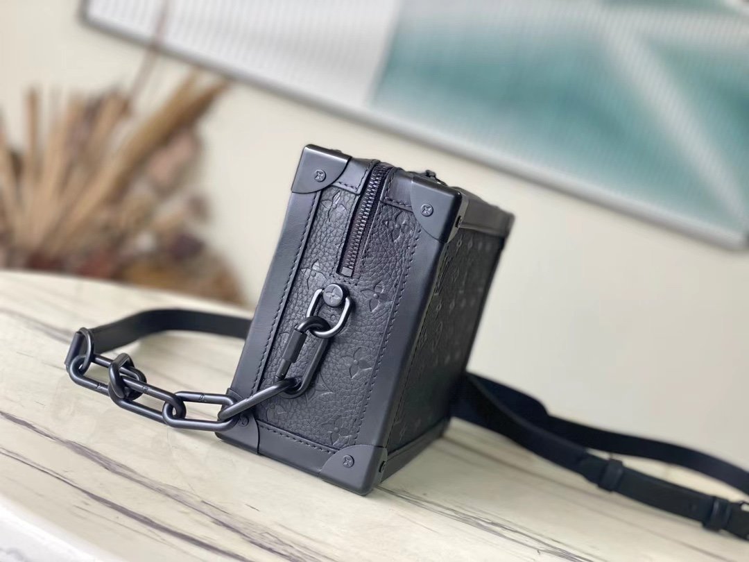 The top original M55700 full leather Soft Trunk handbag combines Monogram embossed Taurillon leather, matte zippers and elegant shoulder straps to create a new interpretation of the traditional messenger bag. Reinforced corners and square shapes slowly reveal the box-making heritage. Dimensions: 25.0 x 18.0 x 10.0 cm