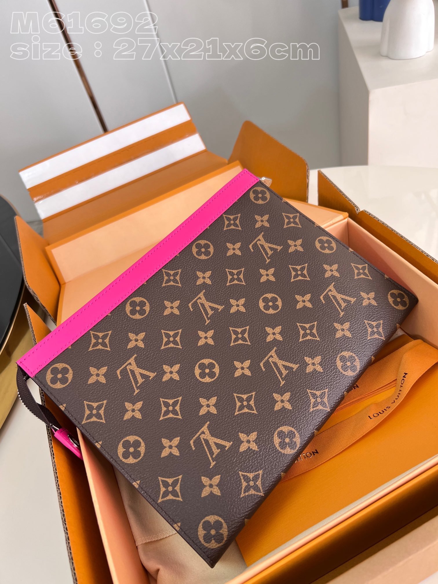 [Exclusive real shot of M61692 rose]❤ Comes with exquisite packaging as shown. Cut from the new iconic Monogram Eclipse canvas, this new Pochette Voyage medium handbag with a tough style can easily store personal items. 27 x 21 x 6 cm (length x height x width)