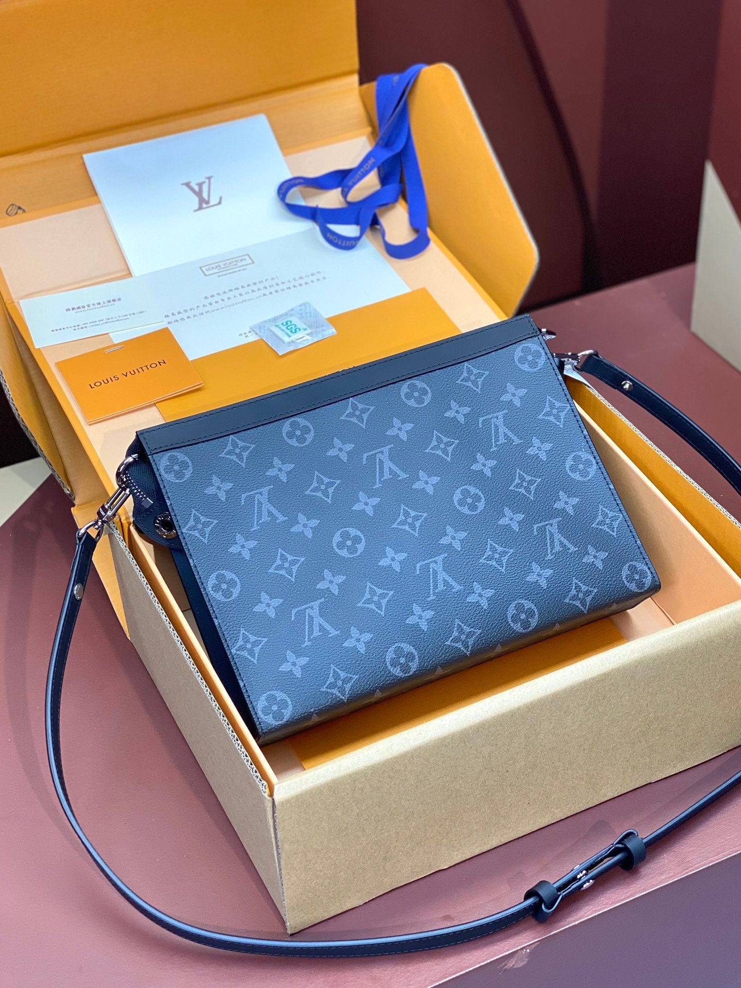 Upgraded version ⚠️M61692 black flower shoulder strap model! This style is made of the new iconic black and gray Monogram Eclipse canvas. It has an adjustable function, card slots and a lipstick pocket inside. This tough new Pochette Voyage medium handbag can easily store personal essentials. Size 26cmx20cm