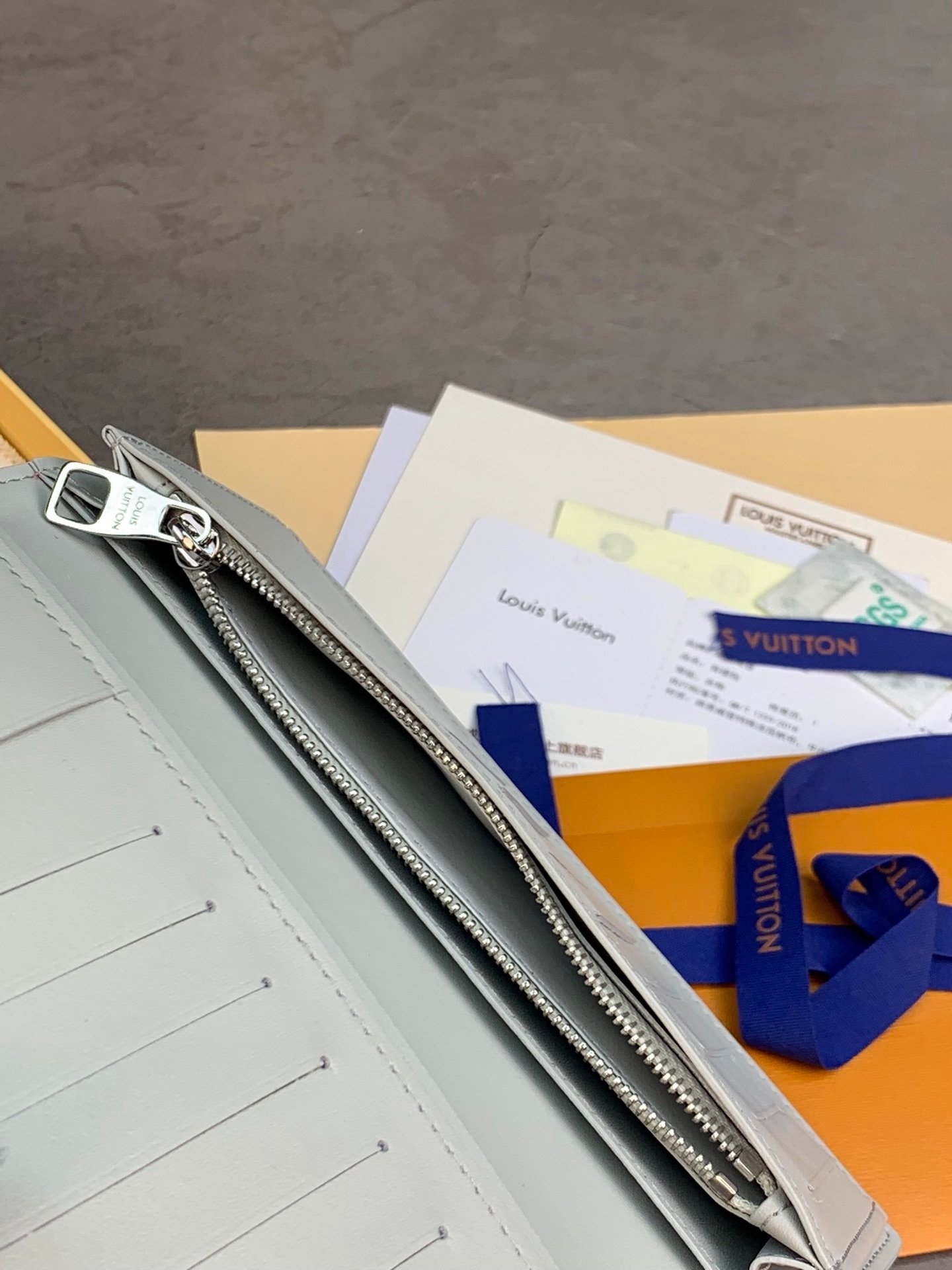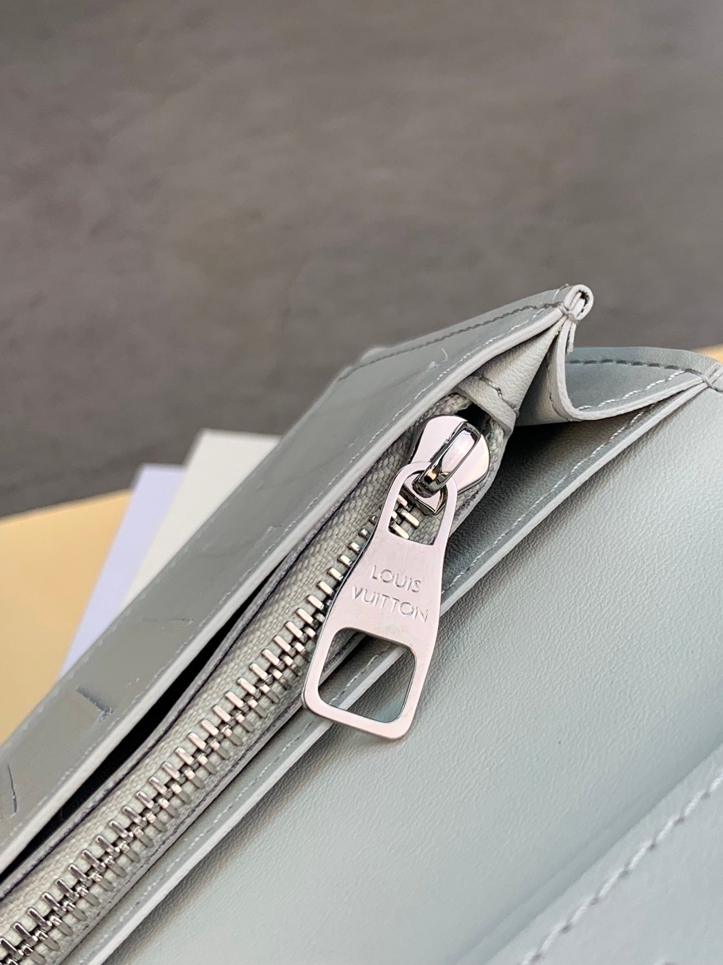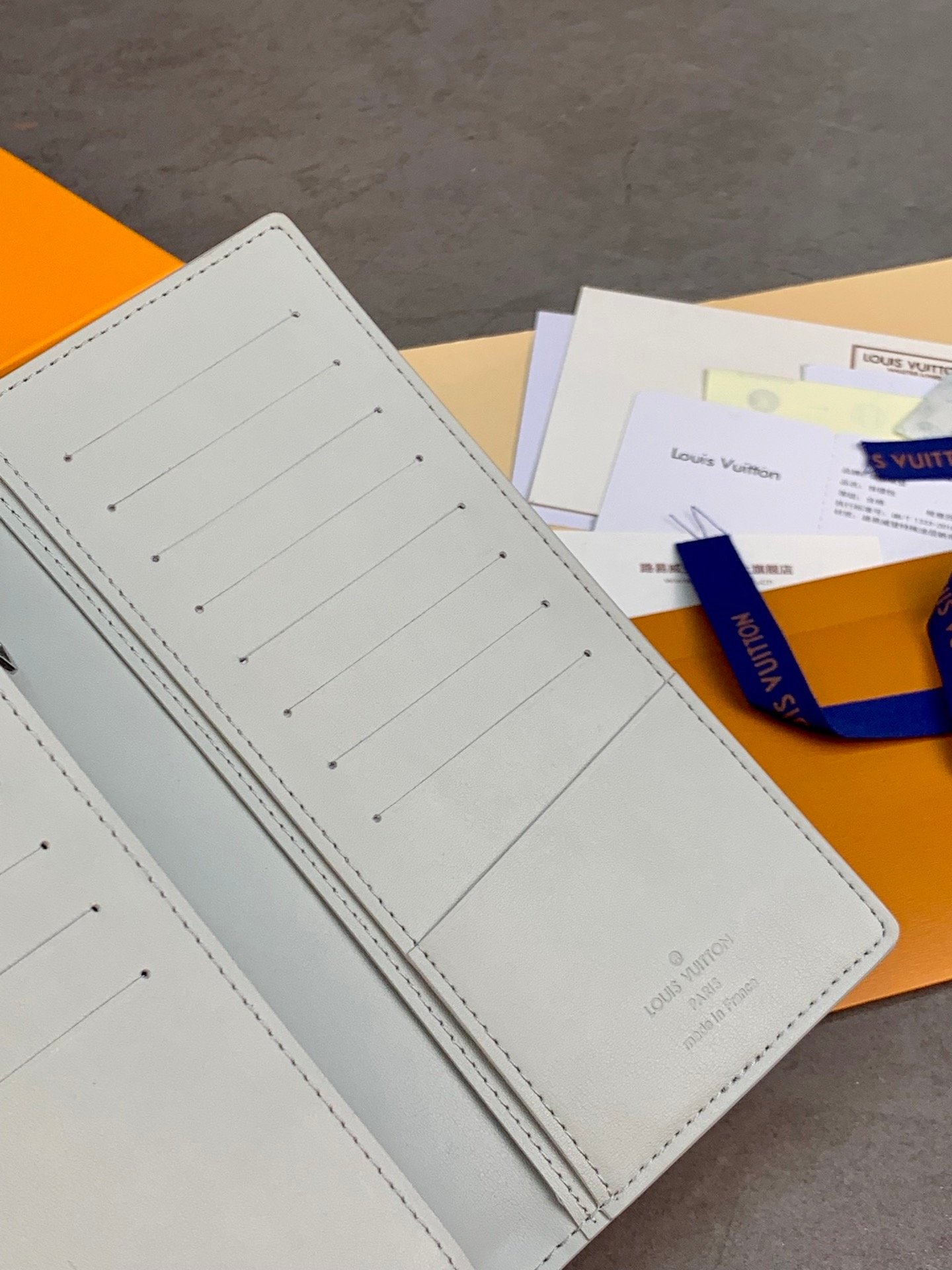 M61697 light green! The Brazza wallet is made of soft Taurillon leather embossed with the Monogram pattern. It has a variety of card slots, pockets and a large zippered coin compartment. It has ample capacity and can easily fit into most jacket pockets. Dimensions 10 x 19 x 2 cm (length x height x width)