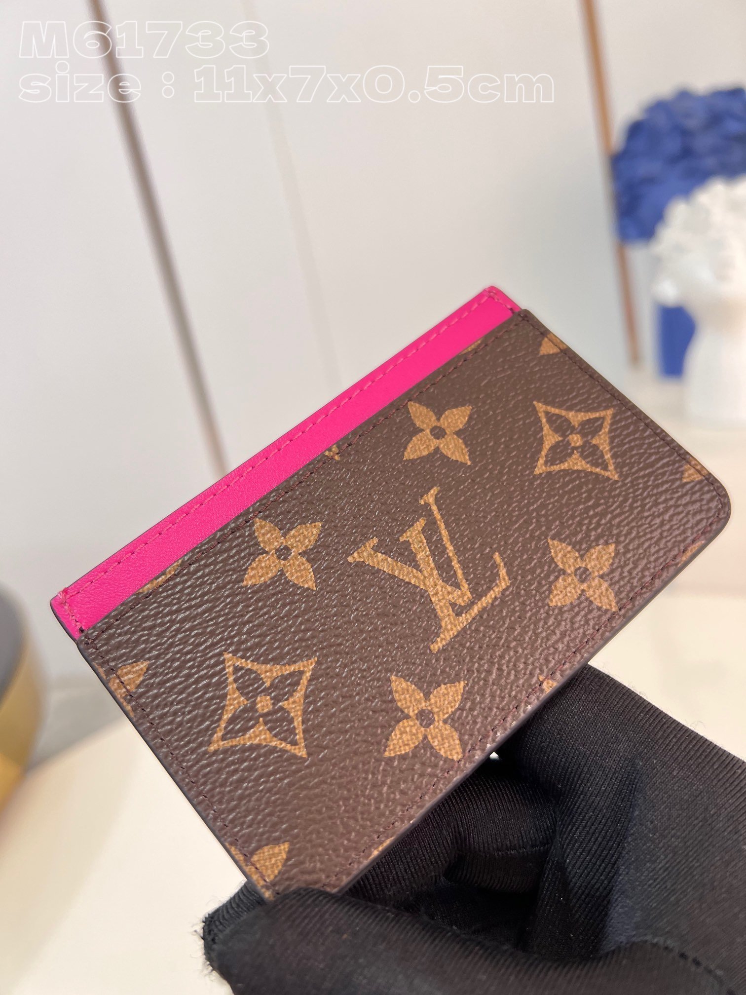 [Exclusive real shot of M61733 rose] M82873 This small card holder is made of Monogram Macassar coated canvas, with bright colors for the top cow leather trim and elegant lining. The internal space can accommodate large cards and bills, and the external mezzanine is convenient for accessing bank cards and transportation cards. 11 x 7 x 0.5 cm (length x height x width)