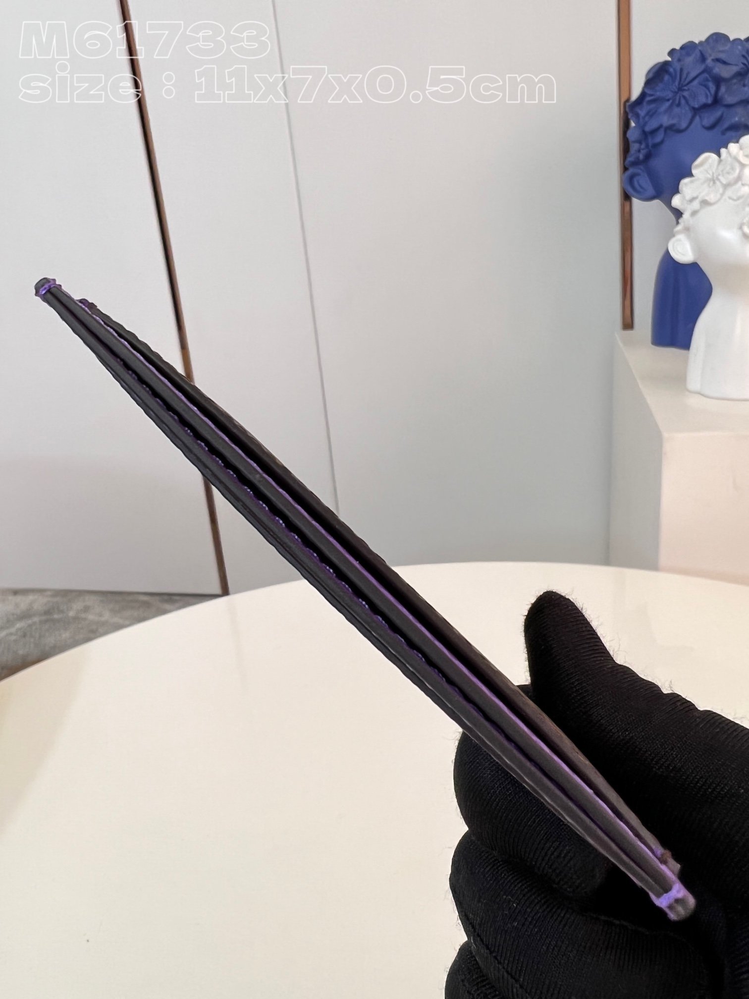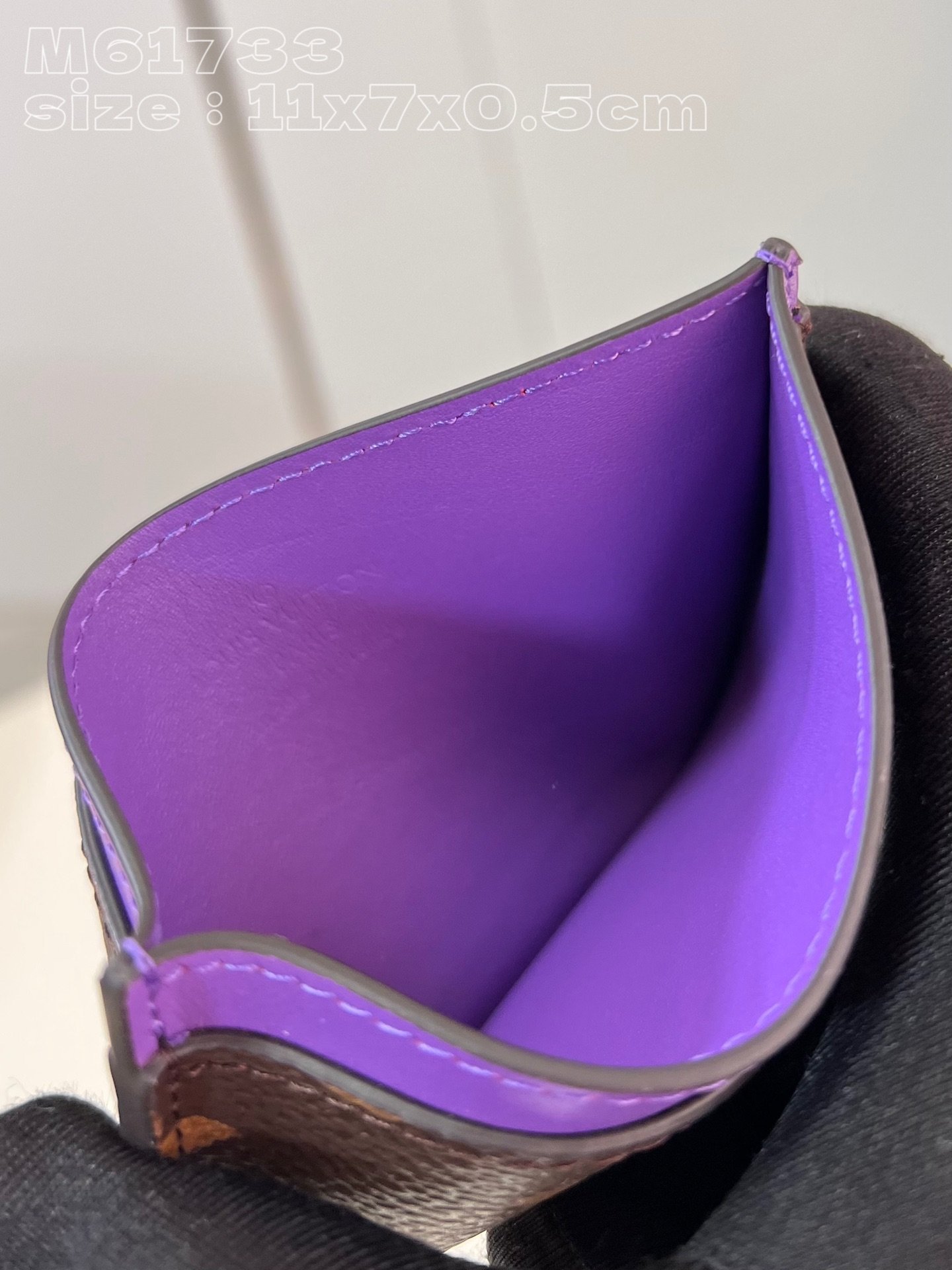 [Exclusive real shot M61733 Purple] M82875 This small card holder is made of Monogram Macassar coated canvas, with bright tones for the top cow leather trim and elegant lining. The internal space can accommodate large cards and bills, and the external mezzanine is convenient for accessing bank cards and transportation cards. 11 x 7 x 0.5 cm (length x height x width)