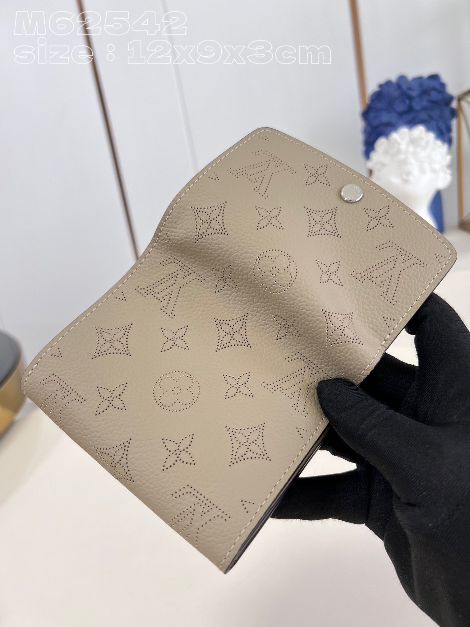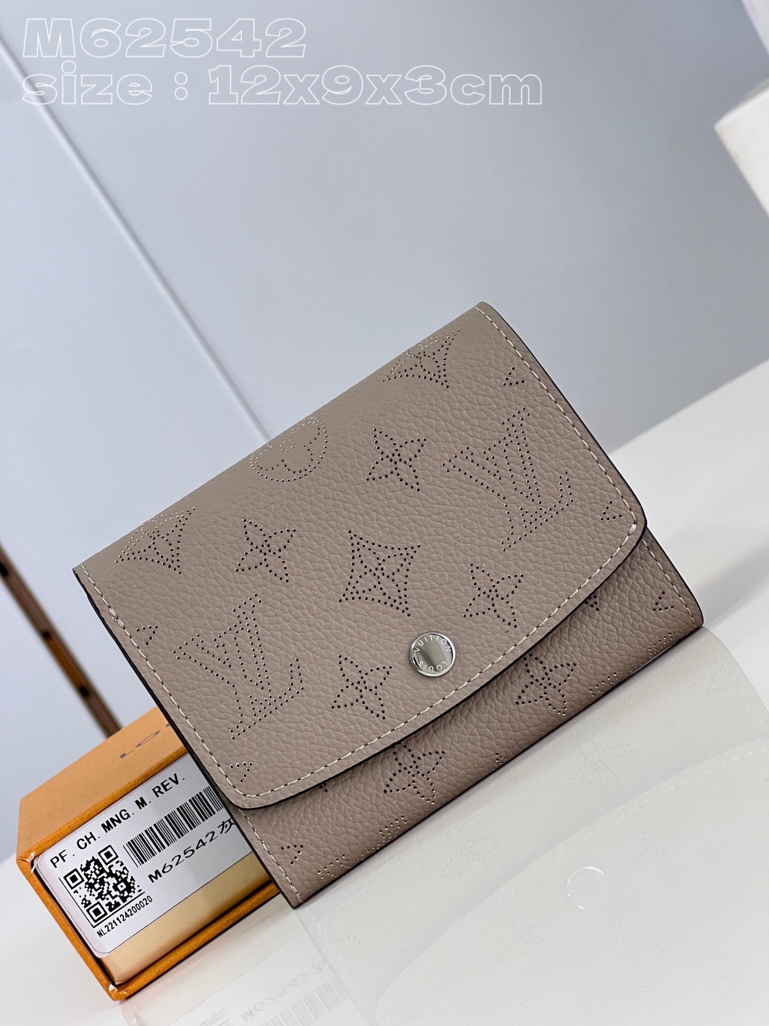 [Exclusive real shot M62542 gray] Made of soft engraved perforated leather with Louis Vuitton’s unique Monogram perforation, this compact IRIS COMPACT wallet can be easily stored in any handbag. Opening the curved flap reveals a functional interior compartment, including a credit card slot and a zippered coin compartment. 12 x 9.5 x 3 cm (length x height x width)