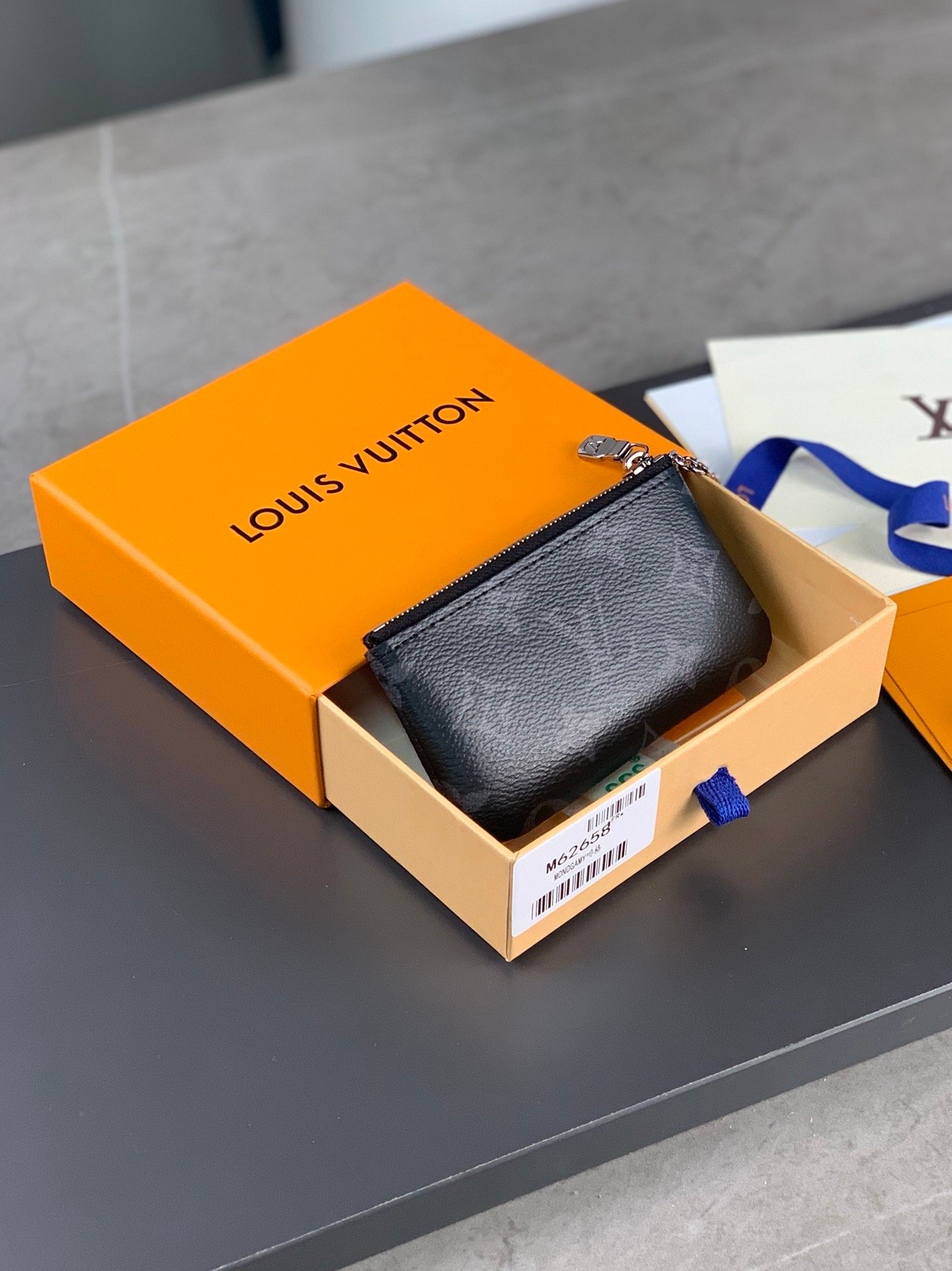 M62650 Black flower! This wallet reminds you of leisurely days on the beach. It has a keychain that can be easily fastened to the D-ring found on most Louis Vuitton handbags. It is beautiful and practical for daily wear. Size: 12x7cm