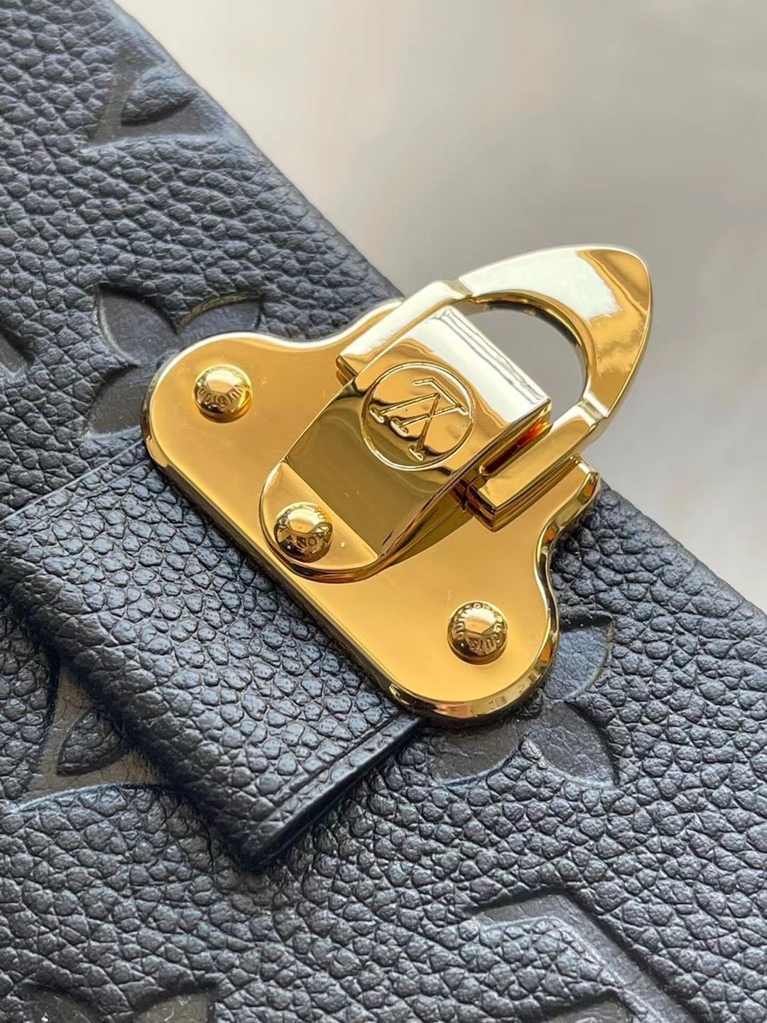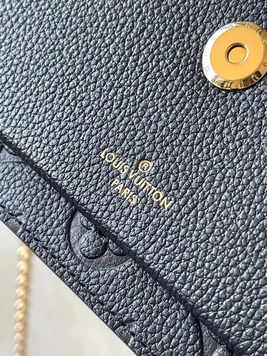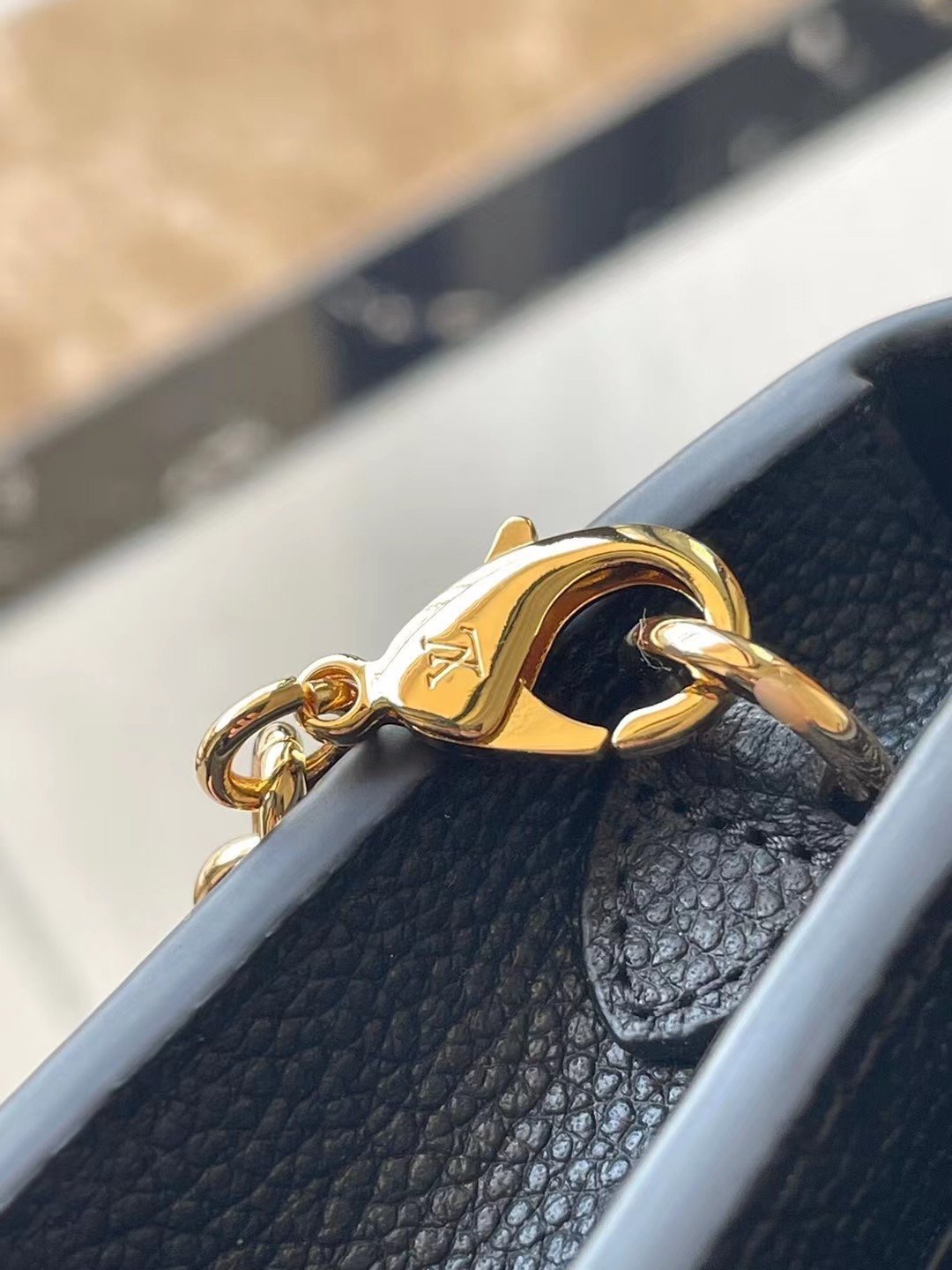 The Vavin chain bag is made of Monogram Empreinte leather to outline classic lines. The golden lock recalls the hard case design and highlights the charm against the same color embossing. Embossed cowhide leather lining Removable chain large accordion compartment Large zippered patch pocket Internal patch pocket Front patch pocket Detailed dimensions: 19.0 x 12.5 x 4.0 cm