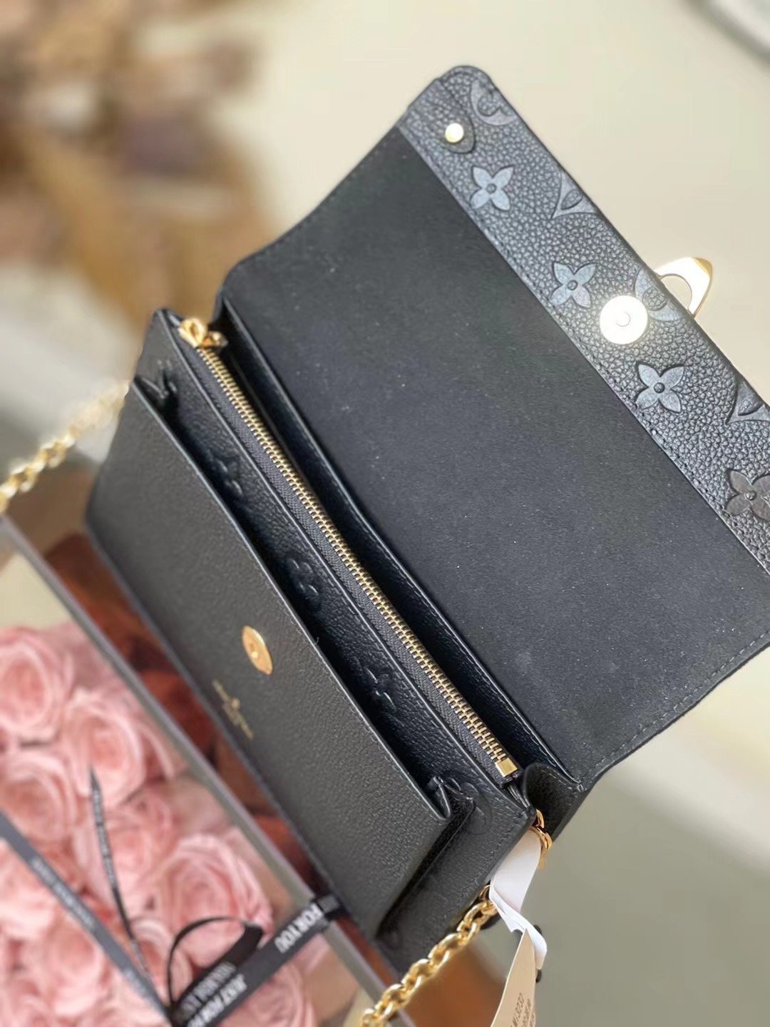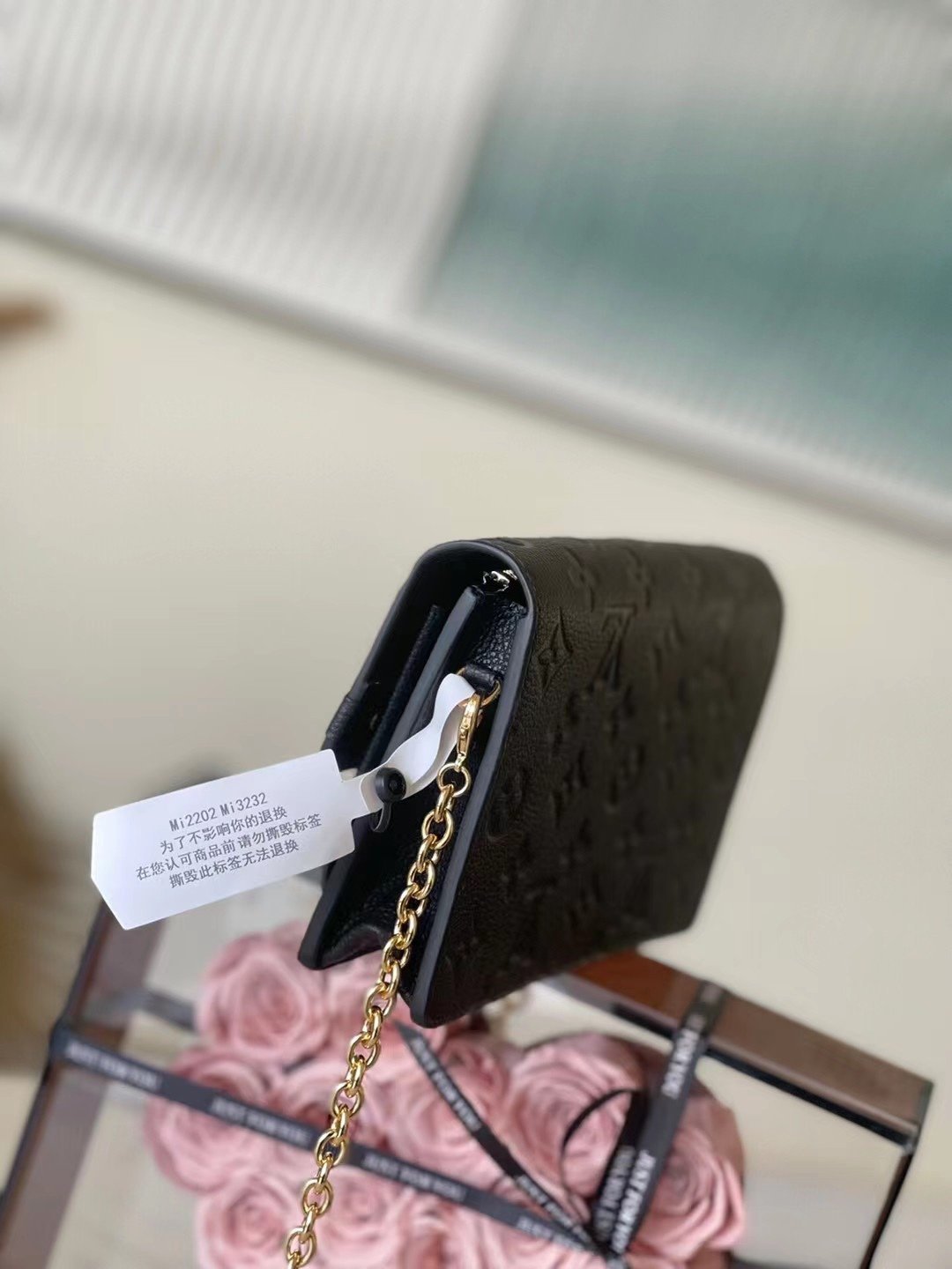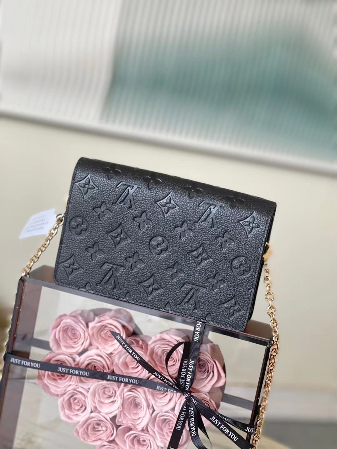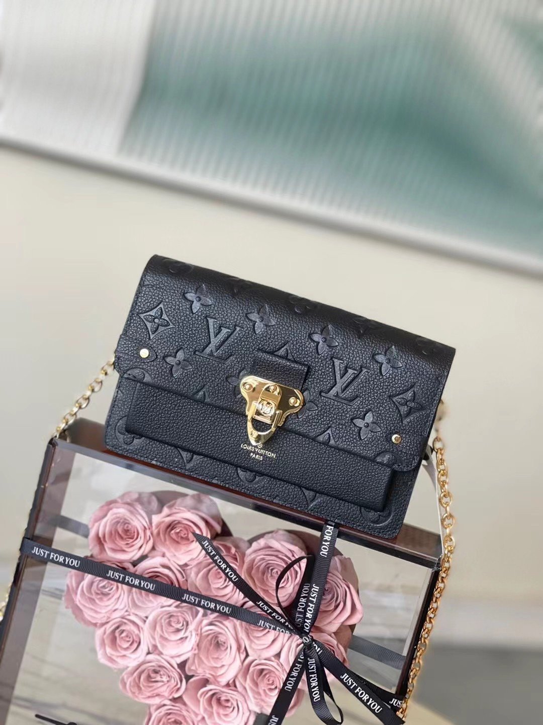 The Vavin chain bag is made of Monogram Empreinte leather to outline classic lines. The golden lock recalls the hard case design and highlights the charm against the same color embossing. Embossed cowhide leather lining Removable chain large accordion compartment Large zippered patch pocket Internal patch pocket Front patch pocket Detailed dimensions: 19.0 x 12.5 x 4.0 cm