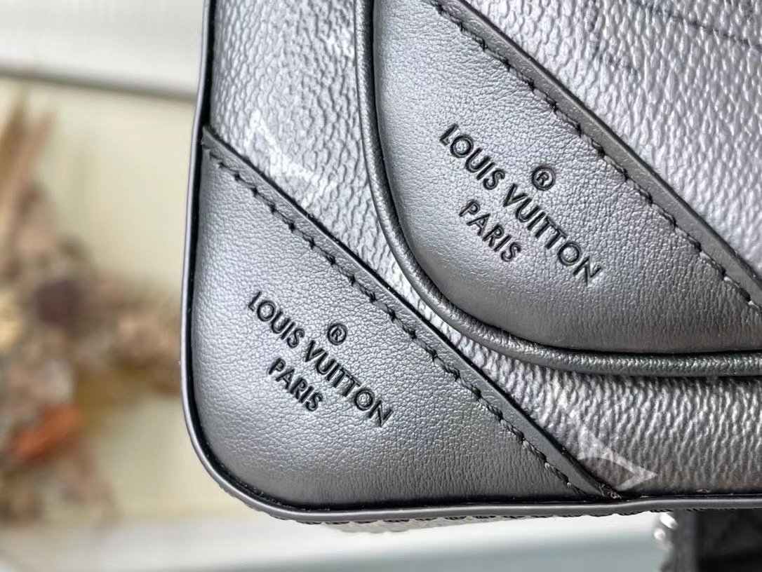 The top original M69443 Trio messenger bag is made of Monogram Eclipse canvas and Monogram Eclipse Reverse canvas. A signature tonal gray pattern accentuates the lines of this versatile, modular design. In addition to the functions of a traditional cross-body bag, it also comes with a removable zipper bag and a coin purse attached to the strap. Dimensions: 25 x 18.5 x 7 cm