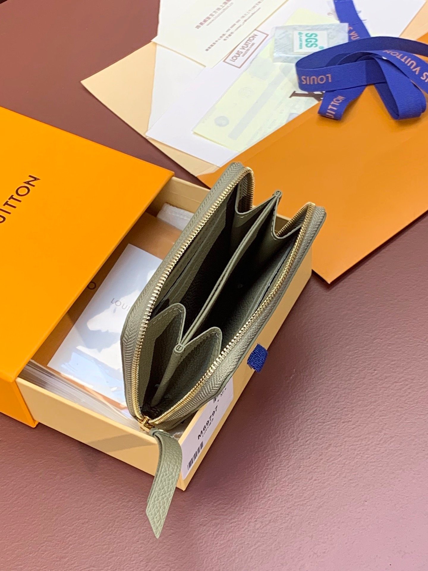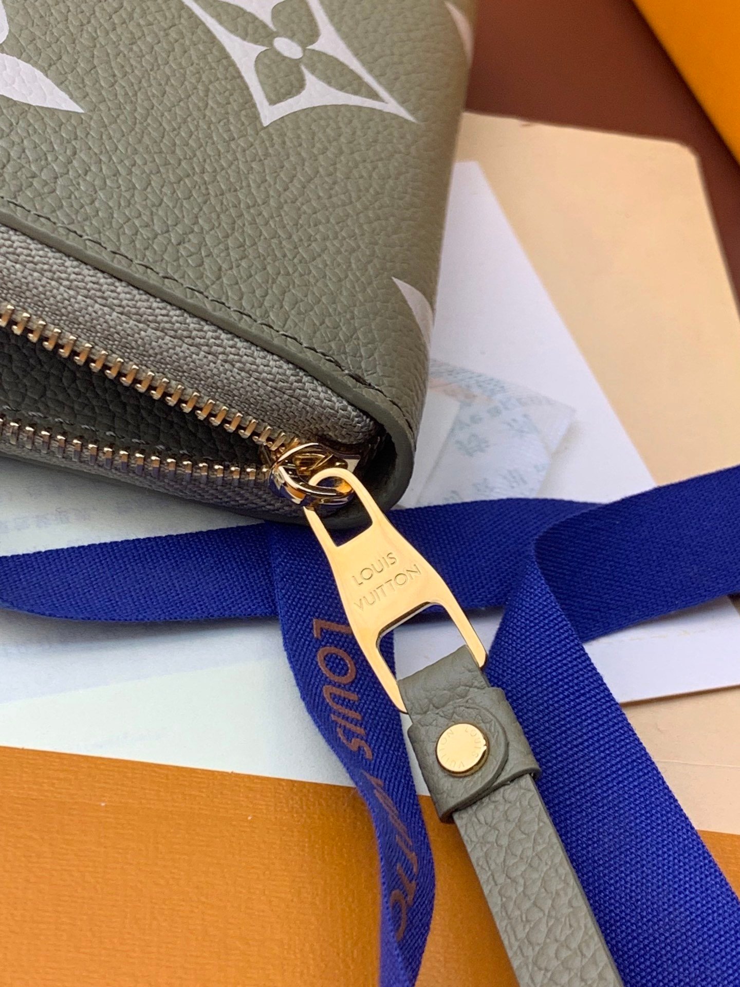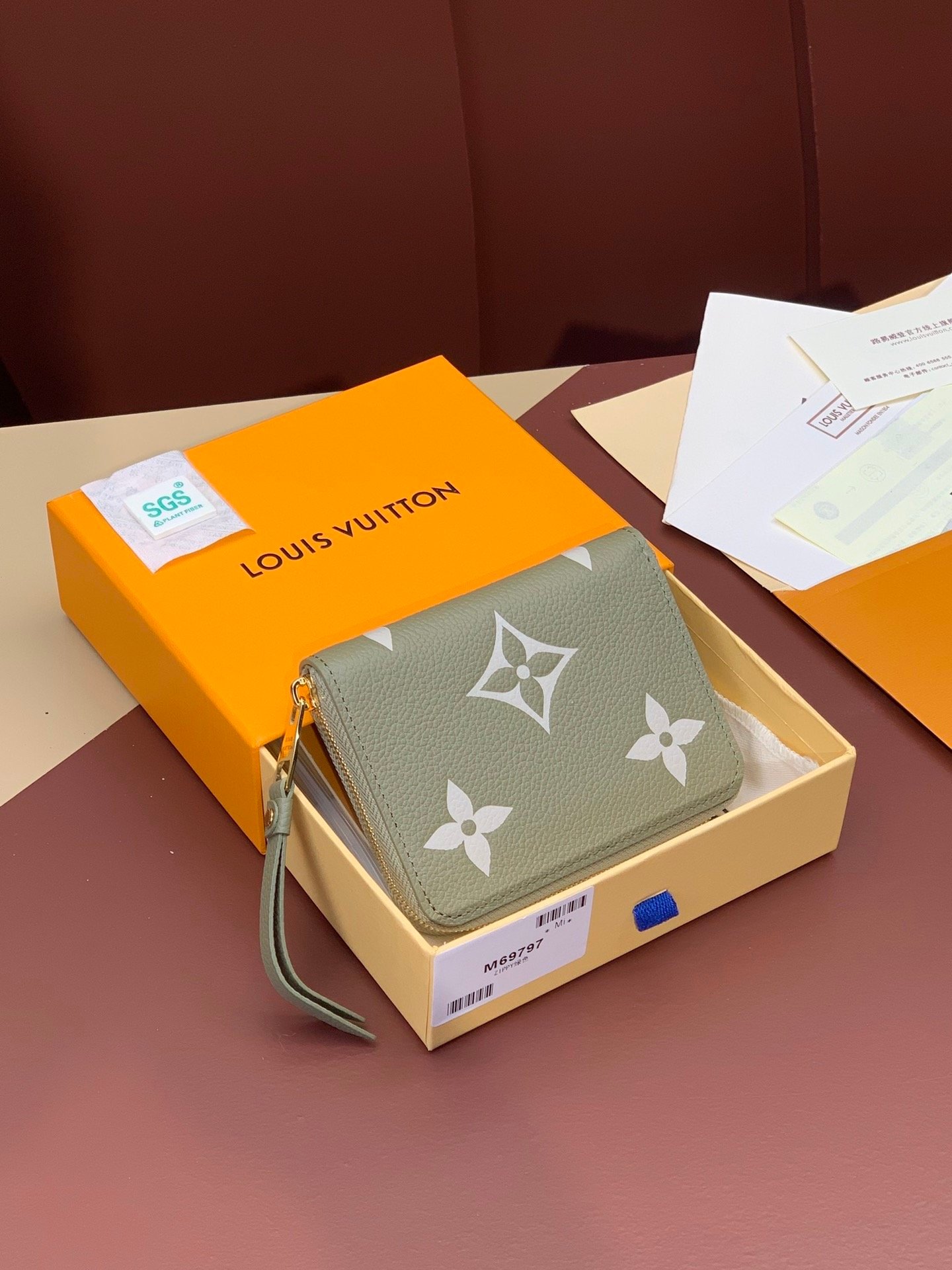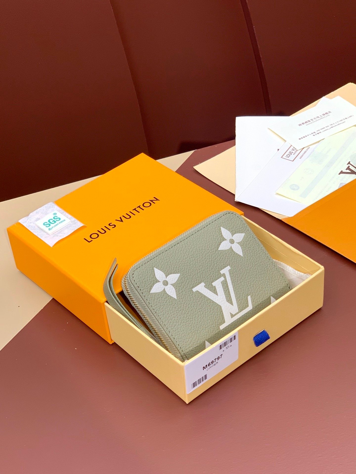 M69797 green, this Zippy coin purse is made of Monogram Empreinte cowhide, which highlights the color contrast of the Monogram pattern embossing. With a compact body and a wide mouth design for easy access, the zippy wallet with full leather embossed large flower zipper can also be easily stored in a handbag or pocket.