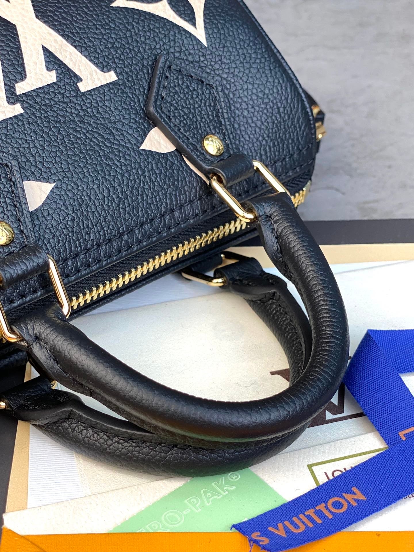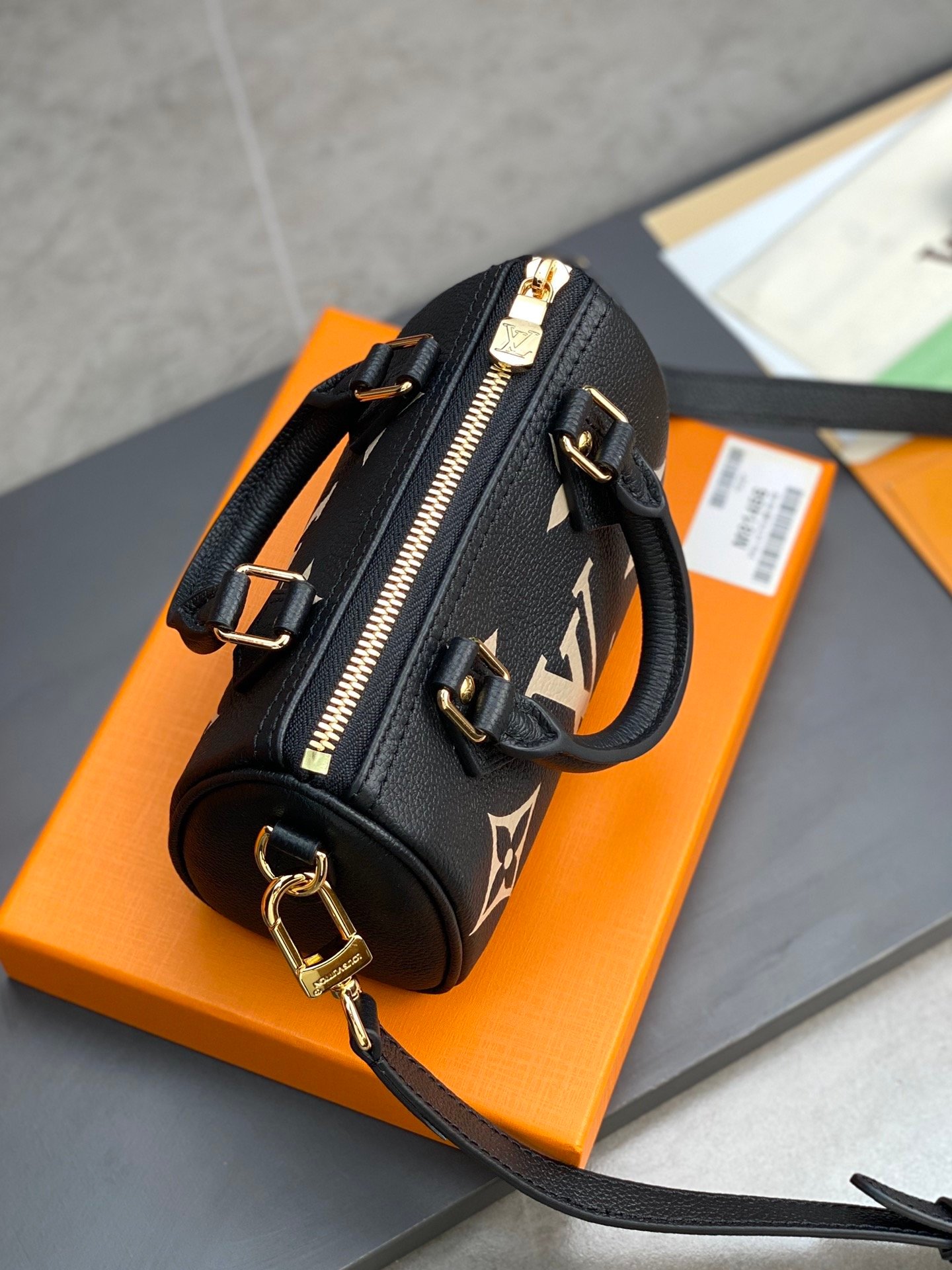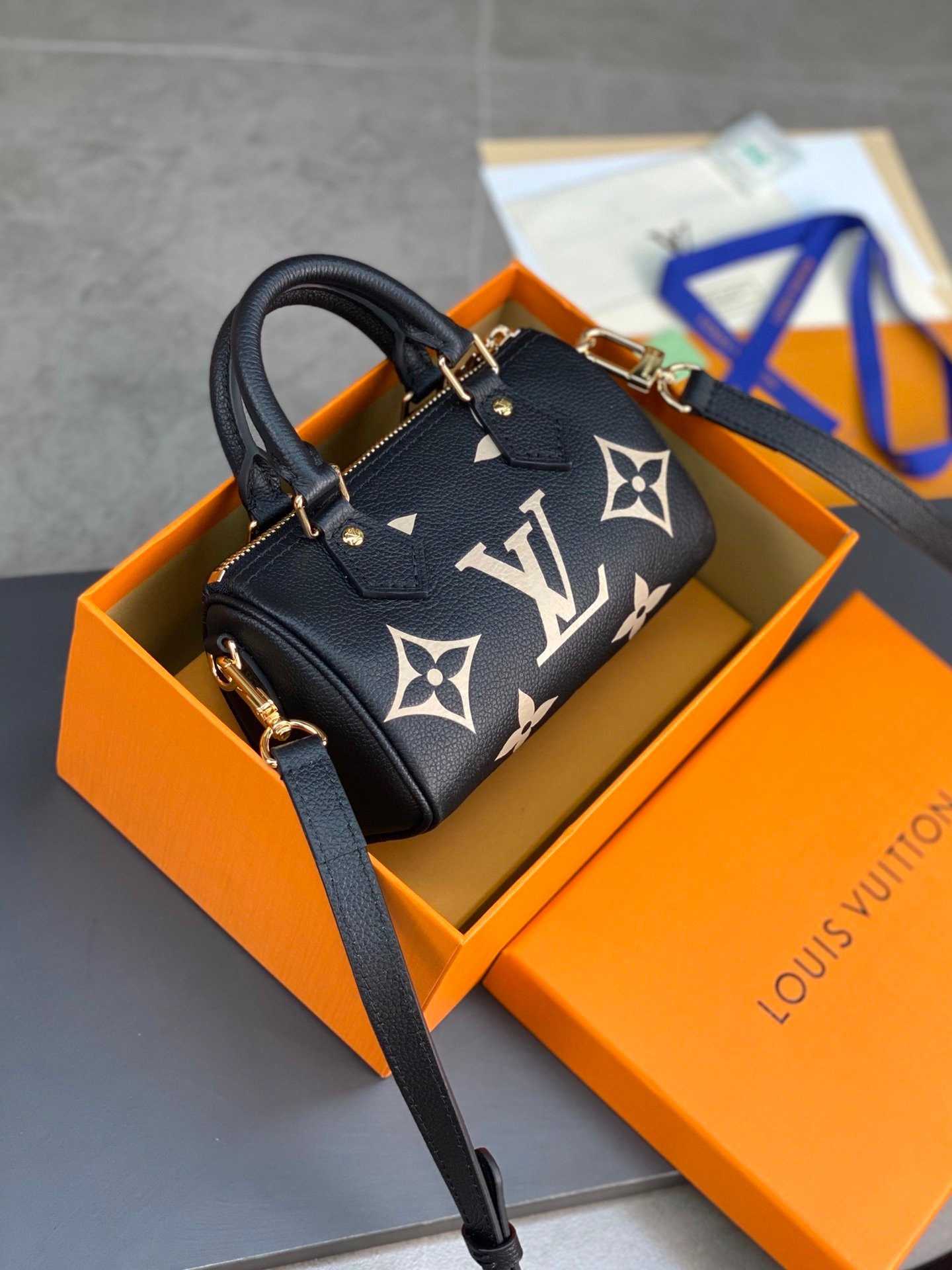 M81456 black print! The Nano Speedy handbag is a pocket-sized replica of Louis Vuitton’s classic Speedy handbag. This time it is made of Monogram Empreinte soft-grain leather, with clear colors to highlight the Monogram embossing. The zipper ensures a secure opening and closing, and the removable and adjustable shoulder strap allows for a variety of styling options.