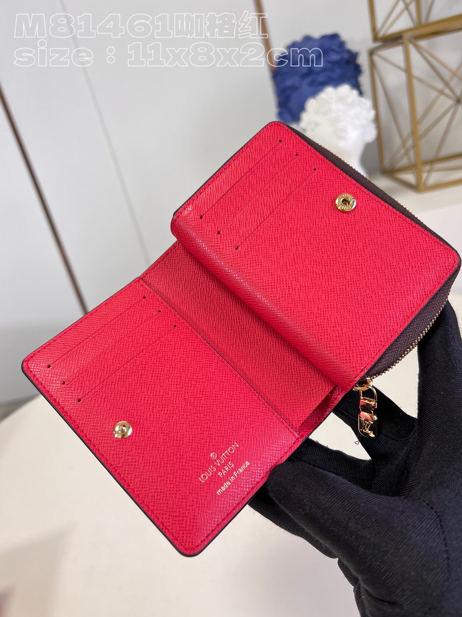 [Exclusive real shot M81461 Cage Red] This Lou wallet is made of Monogram canvas, with a contrasting pocket on the front and Monogram floral pattern on the Monogram Reverse canvas. The wallet adopts a compact square design, which is unique. When you open the wallet, you will see the inner compartment of grain leather. It has six business card compartments and a banknote compartment. There is also a zippered coin compartment on the side. 11.5 x 8.5 x 2.2 cm (length x height x width)