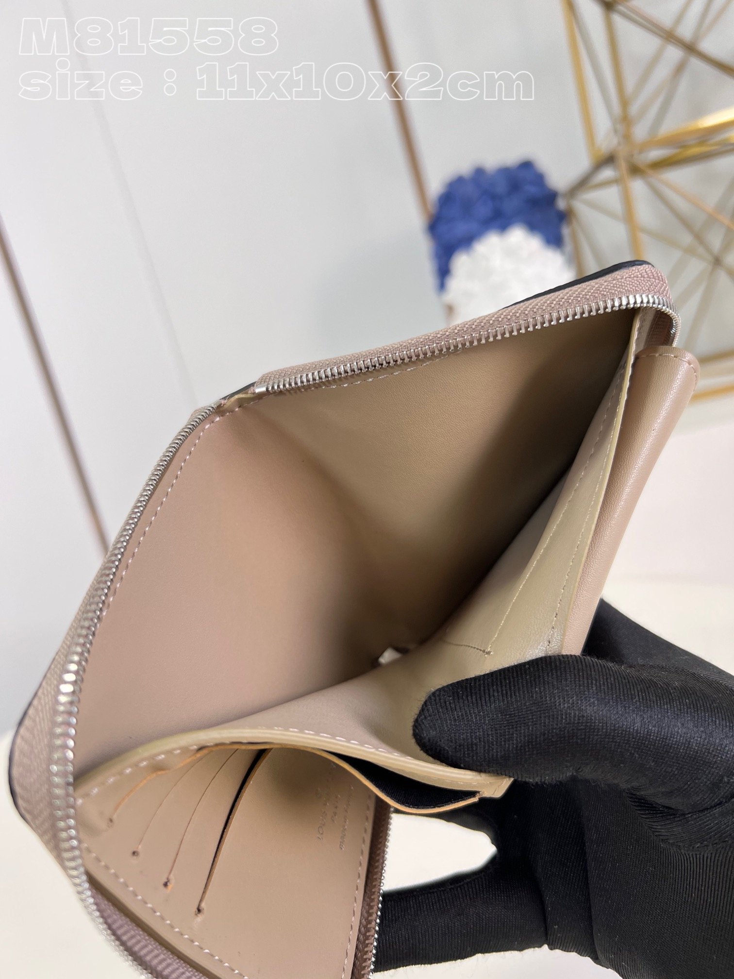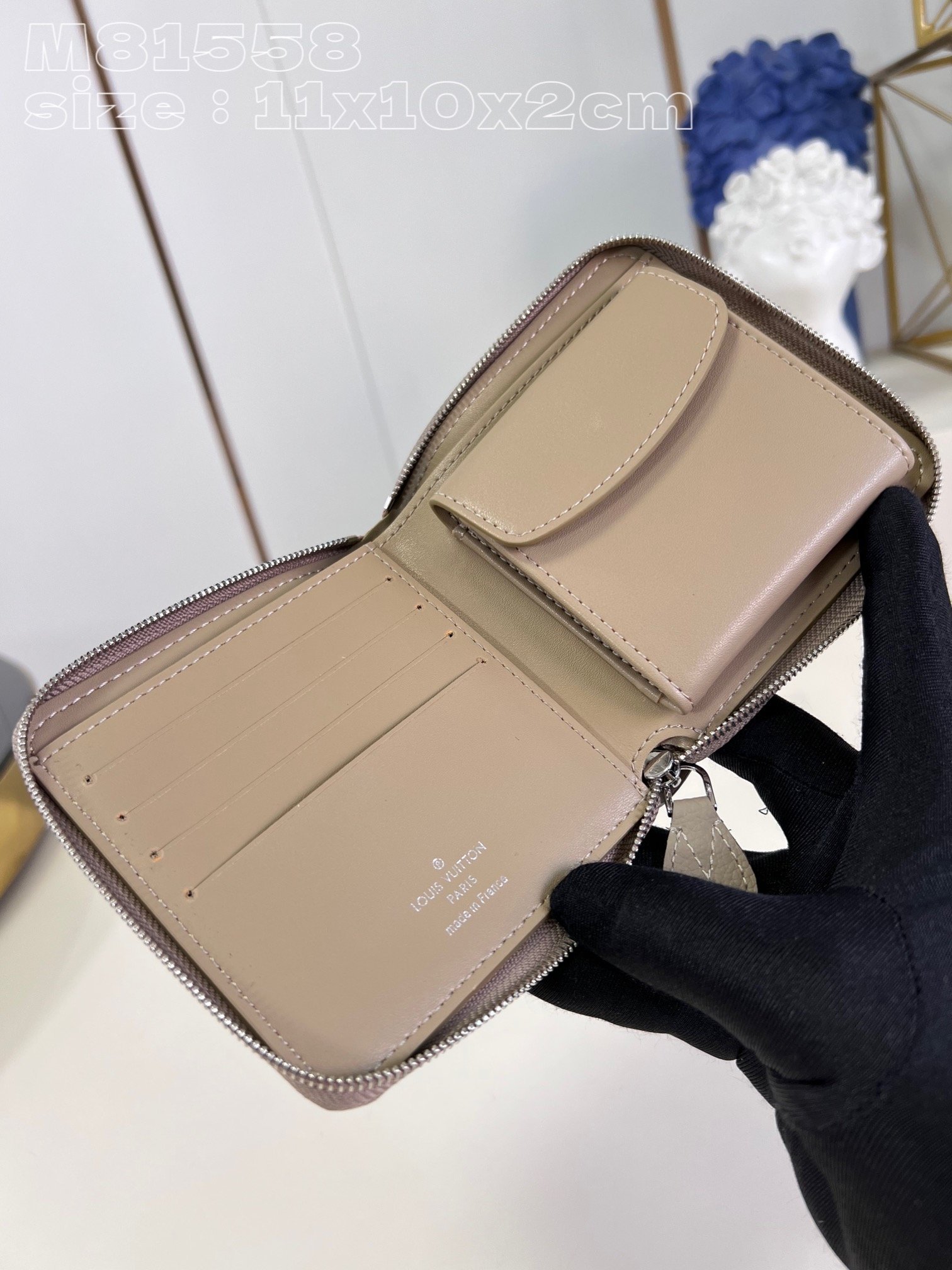[Exclusive real shot M81558 gray] This zippy small zipper wallet is made of soft Mahina calfskin and decorated with a delicate and unique Monogram perforated pattern. This square wallet with simple lines has the same design as a classic zipper wallet, with a secure full-zip closure and leather pull tabs. The inner layer of the wallet is equipped with a bill pocket, a flap pocket for storing change and four business card compartments. 11.5 x 10.5 x 2 cm (length x height x width)
