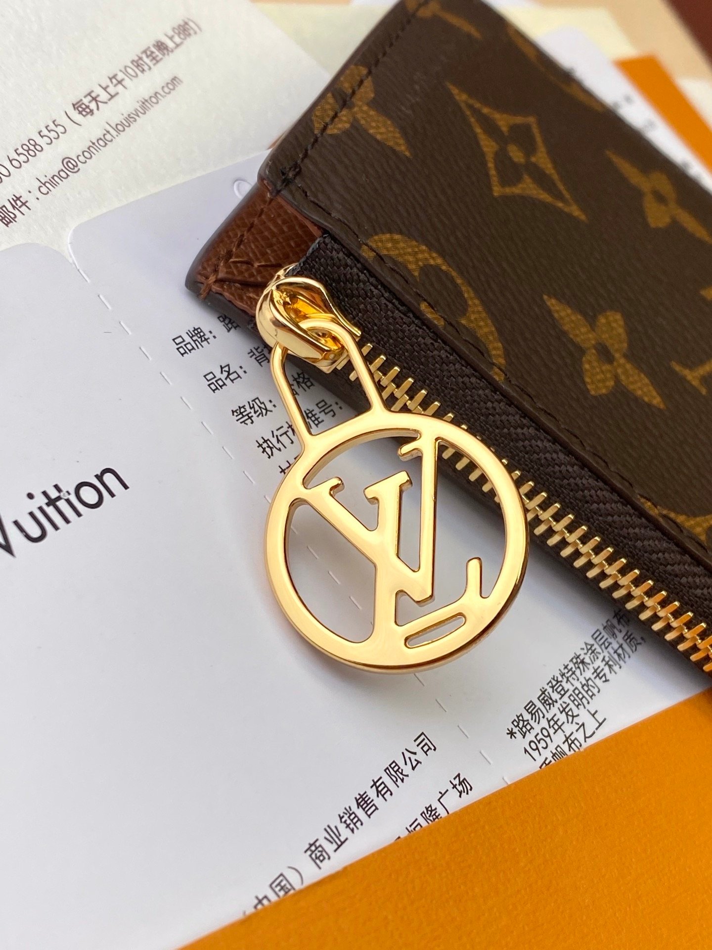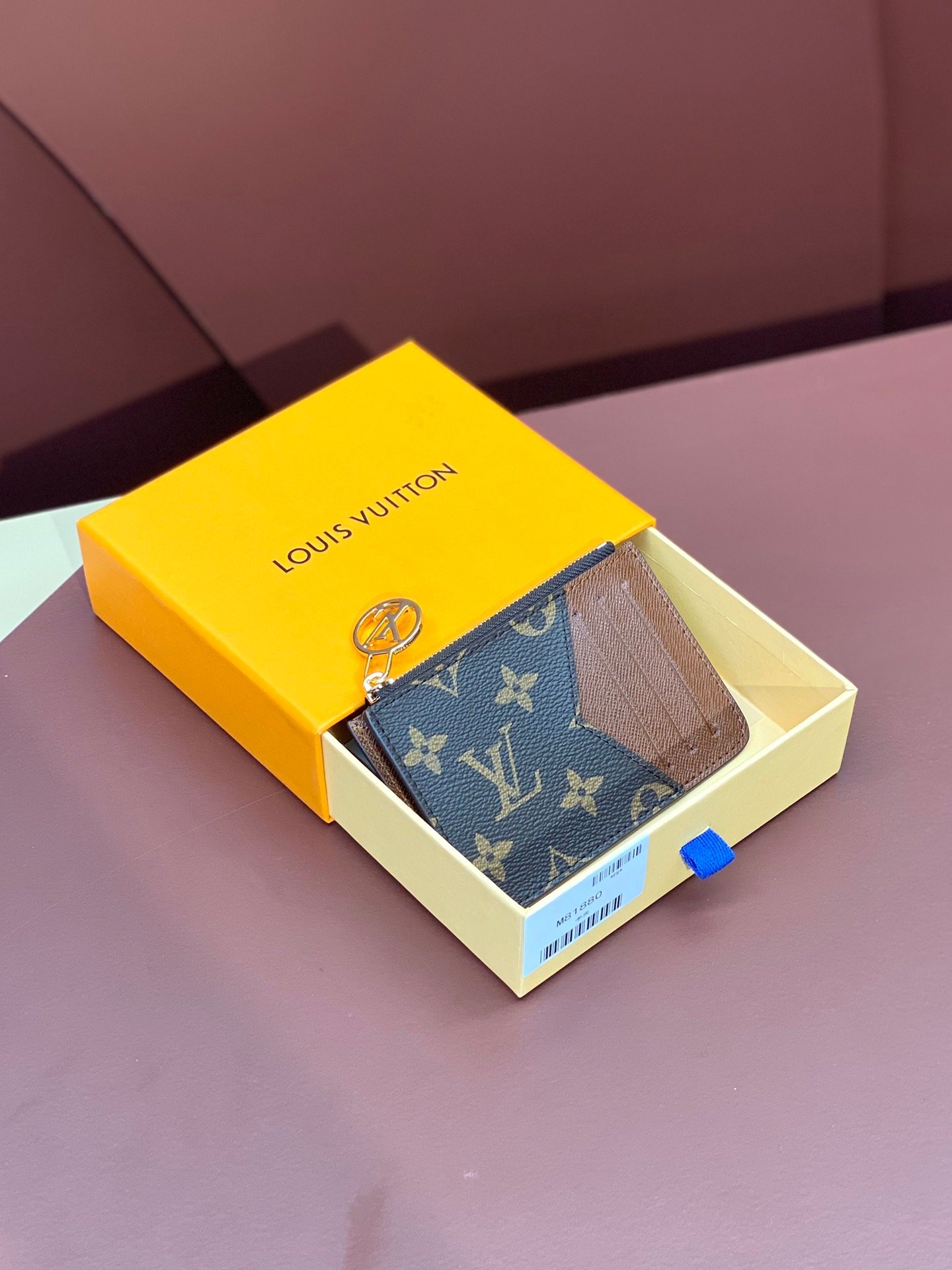 M81880 presbyopia! ROMY card holder! The Romy card holder combines the functional elements of a accordion zipper bag with the simple style of a traditional card holder. Monogram canvas with colorful leather lining. L*Circle metal zipper puller with rich details. Can accommodate banknotes, coins or receipts. Size: 12x8x0.8cm