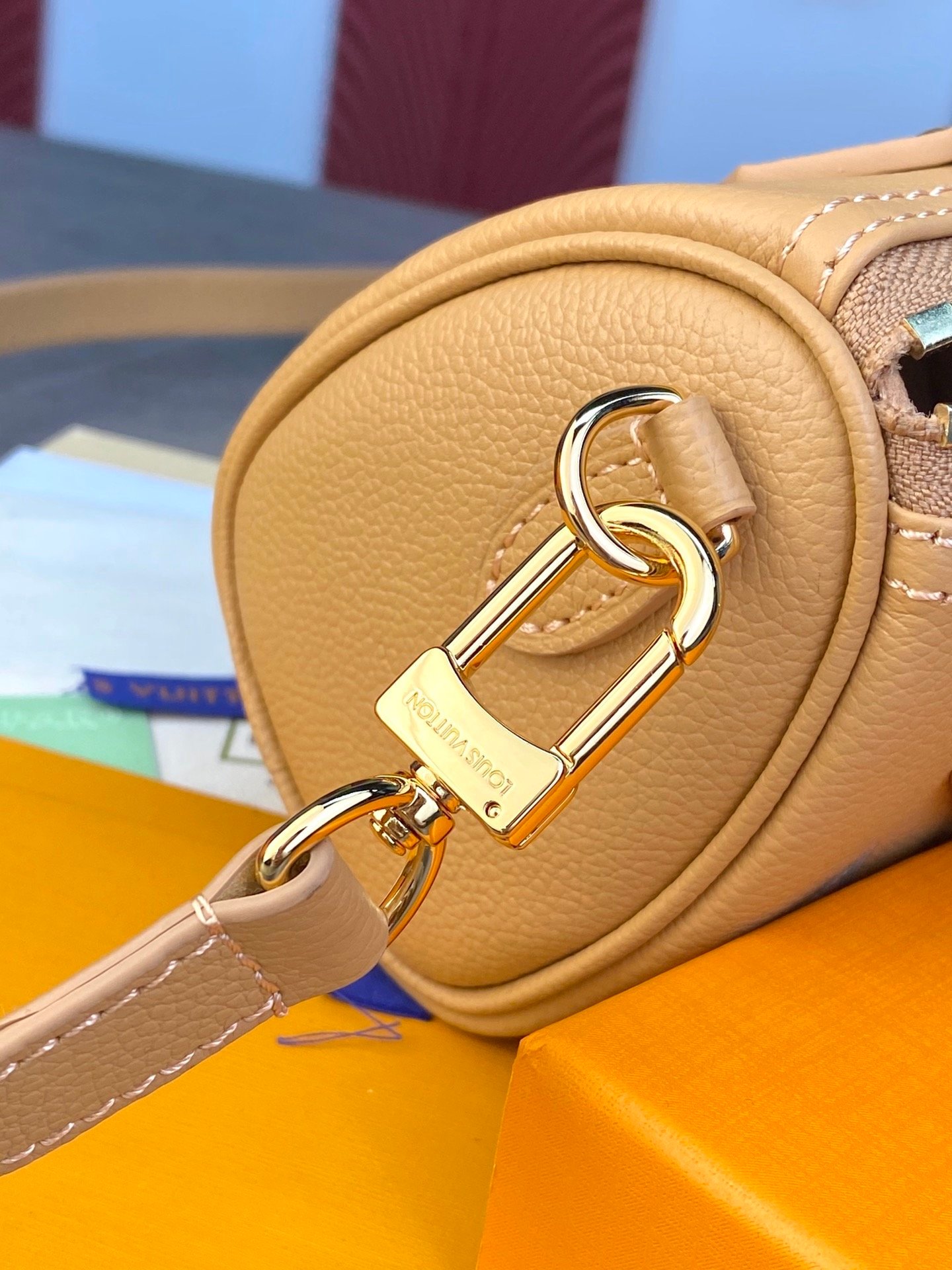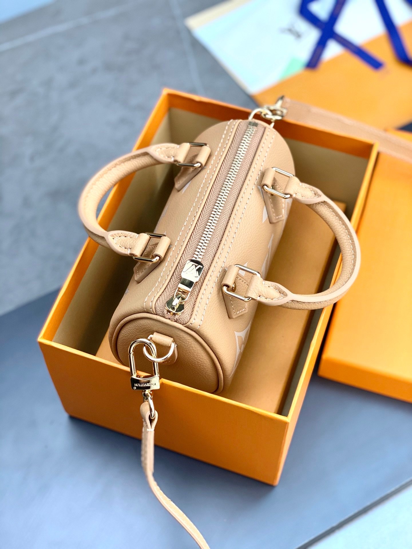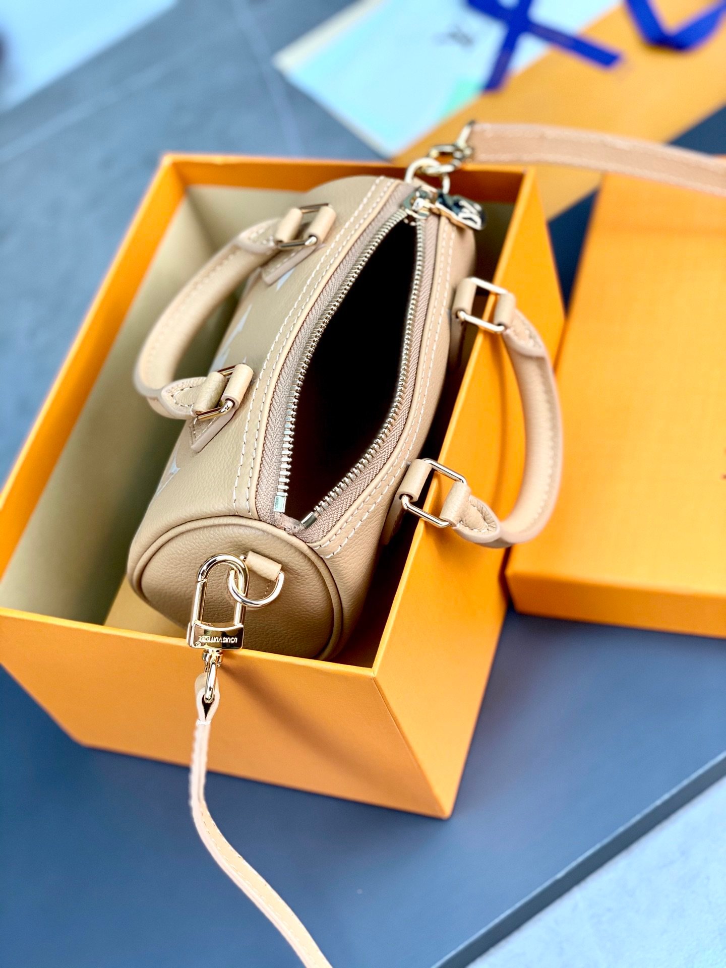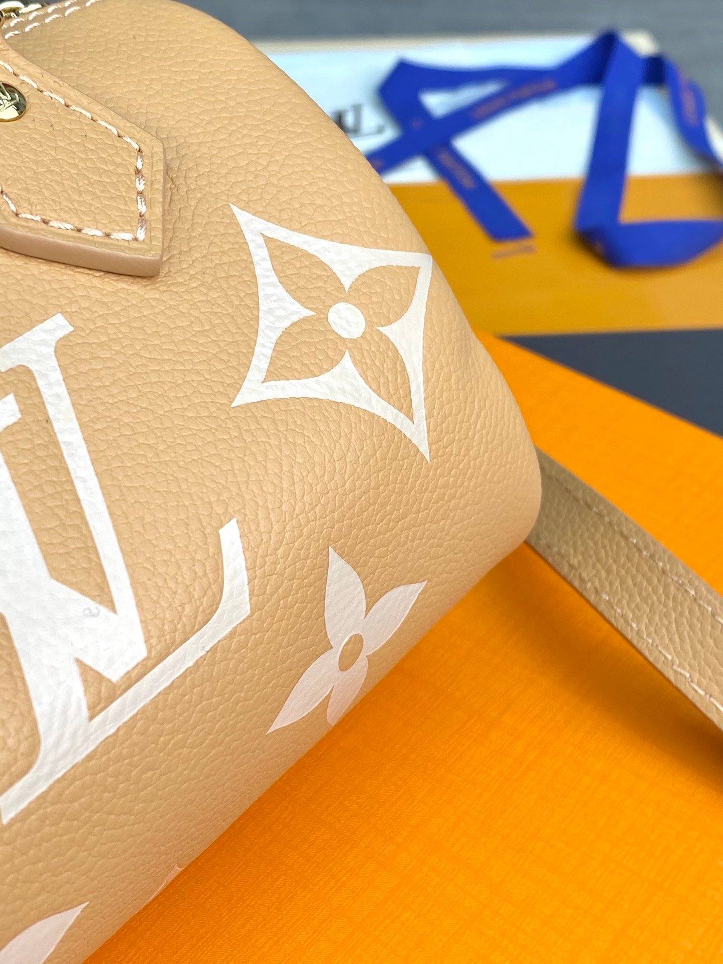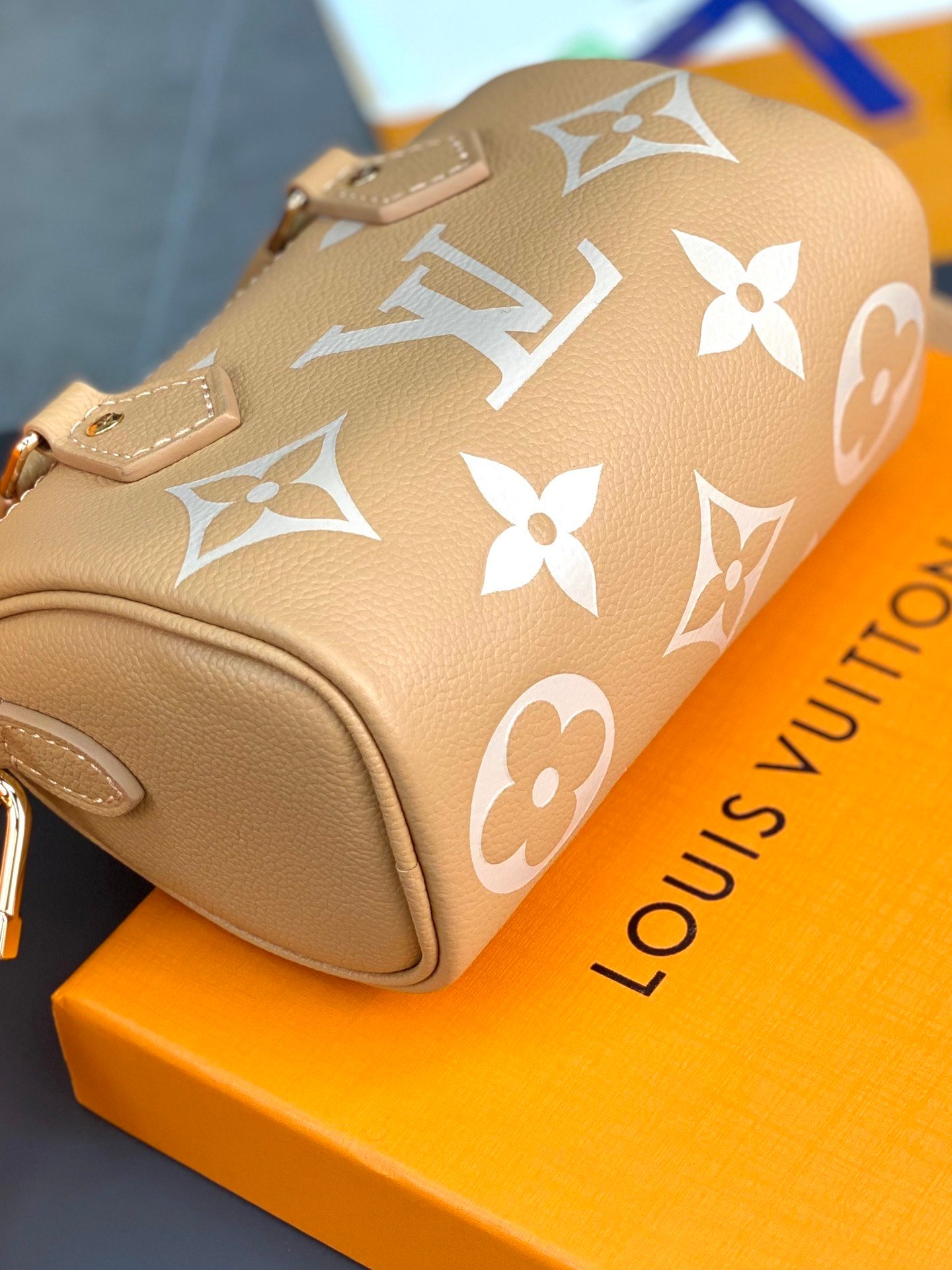 M81913 Apricot print! The Nano Speedy handbag is a pocket-sized replica of Louis Vuitton’s classic Speedy handbag. This time it is made of Monogram Empreinte soft-grain leather, with clear colors to highlight the Monogram embossing. The zipper ensures a secure opening and closing, and the removable and adjustable shoulder strap allows for a variety of styling options.