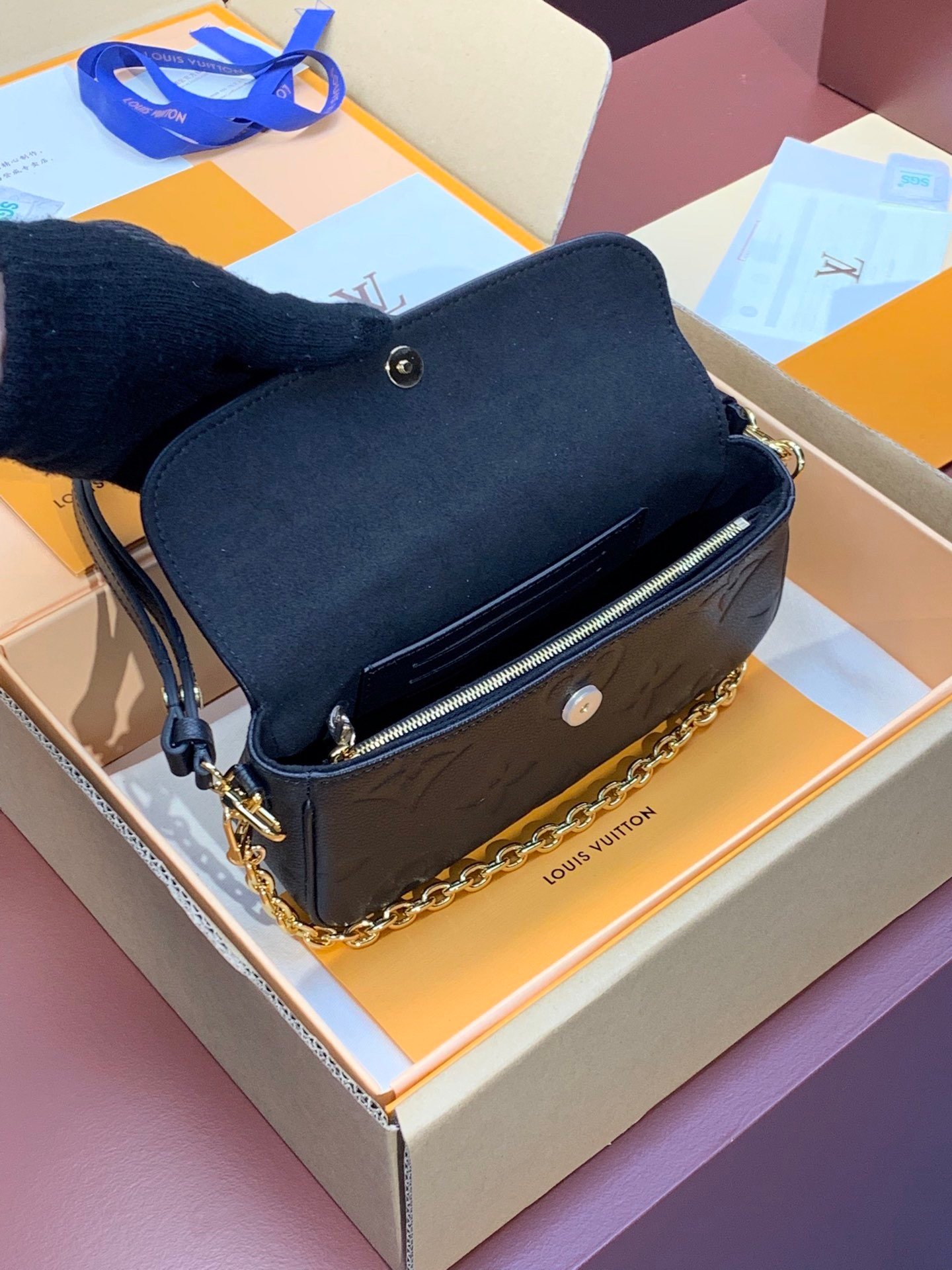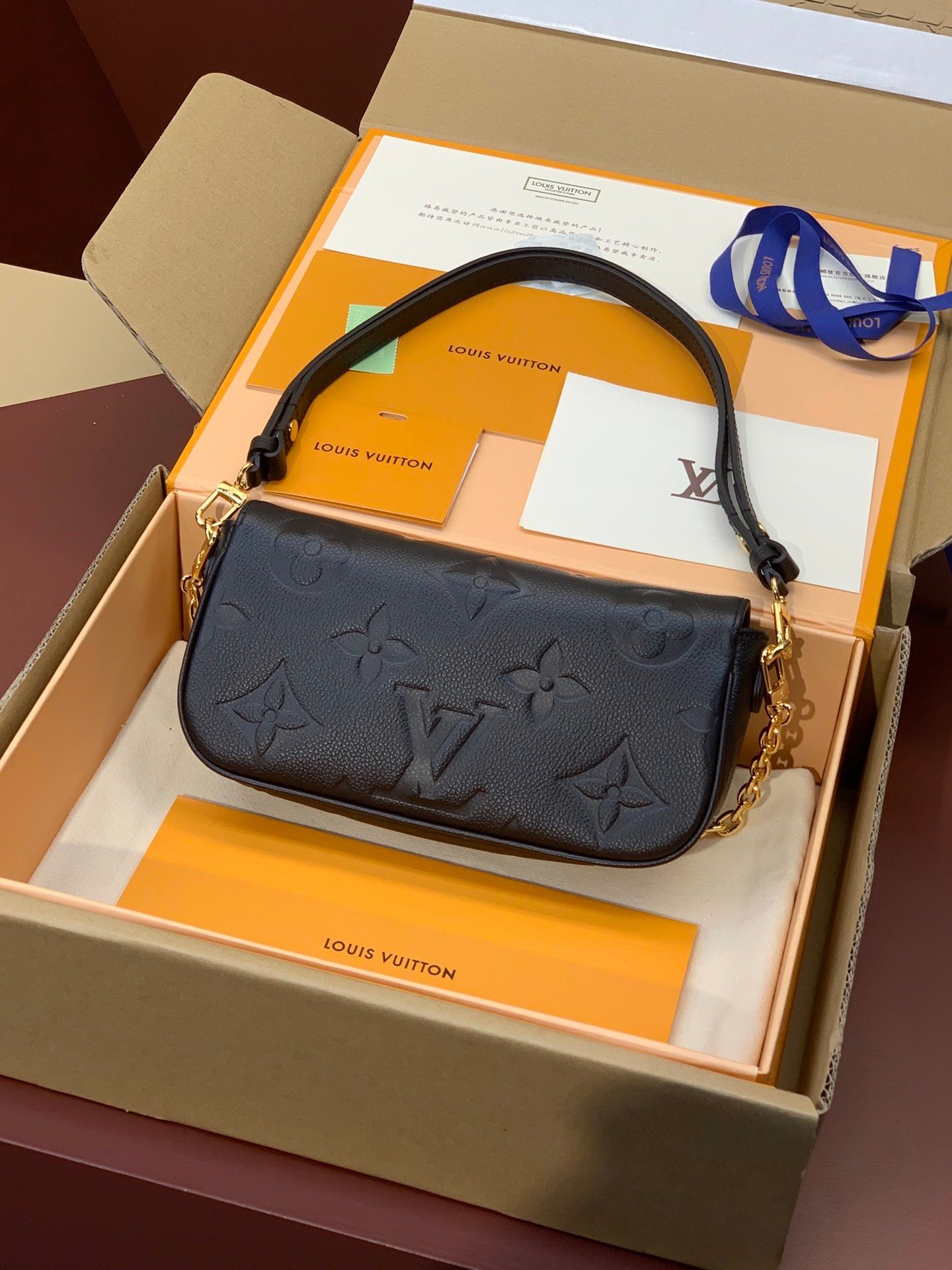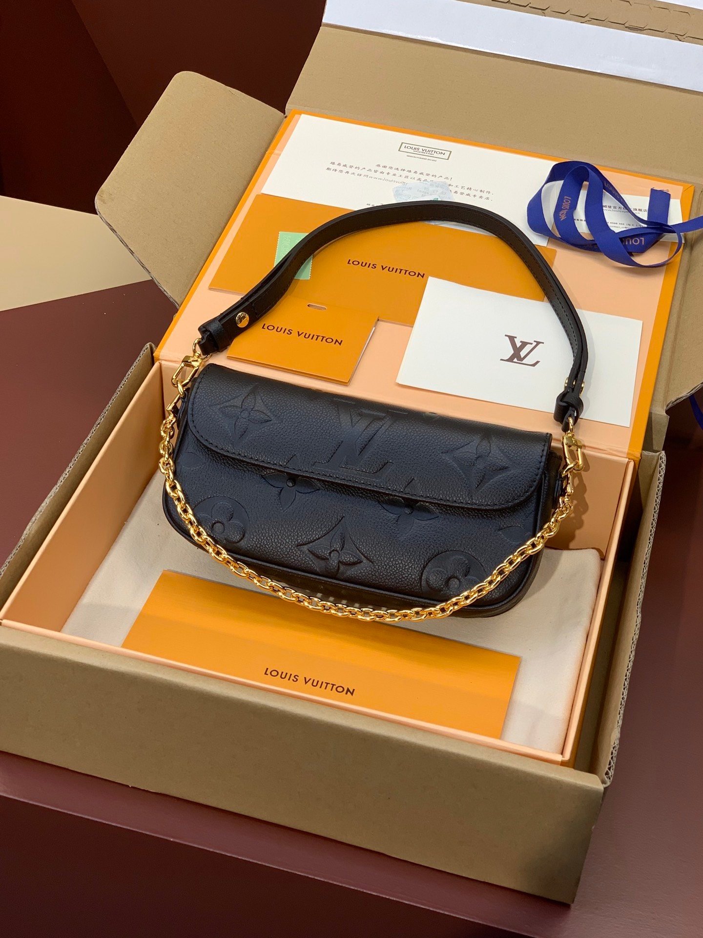 Upgraded version ⚠️M82211 black embossed! The Wallet On Chain Ivy bag is made of Monogram Empreinte grained leather embossed with a large Monogram pattern, creating a soft and comfortable fit. The magnetic flap opens up to provide ample space for easily storing daily necessities. The jewel-like chain and adjustable leather shoulder strap are detachable, allowing for a variety of carrying options, making it suitable for day and night occasions. Size: 23.5×12×4.3cm