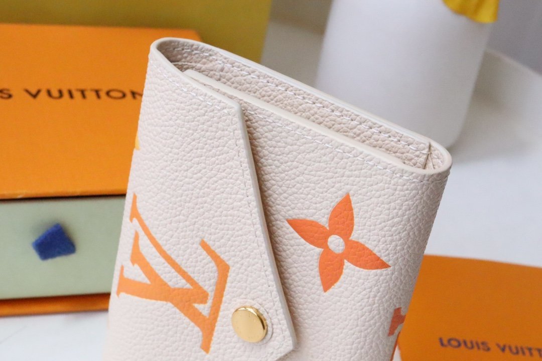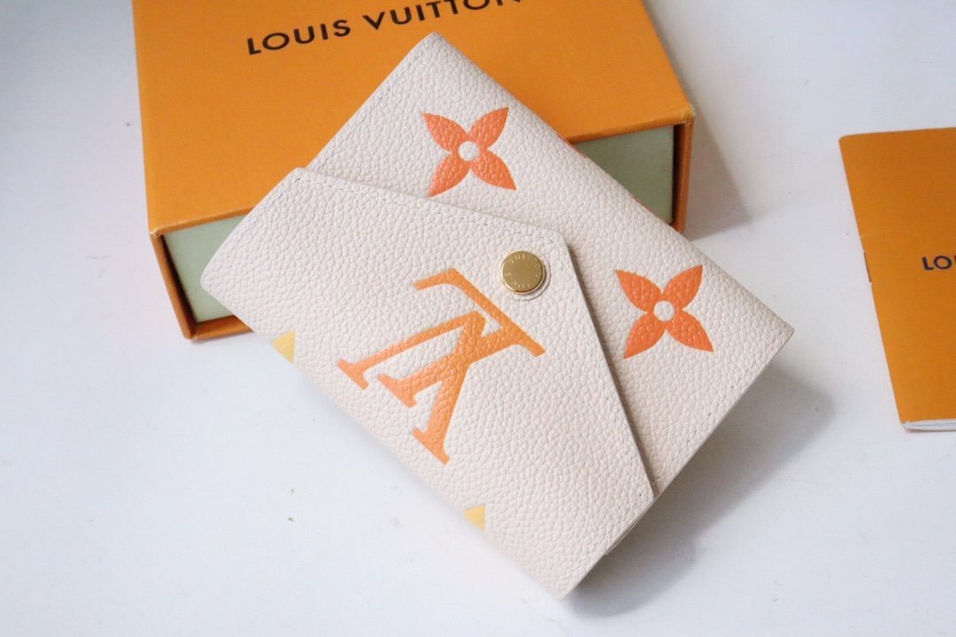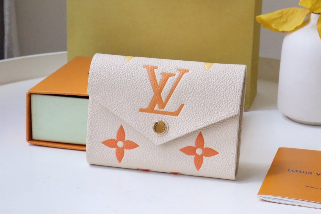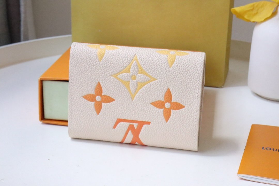 « Portefeuille Victorine » suitable for the « LV Gradient » collection. Reinterpreted in Monogram Unplant leather printed with beautiful gradients of summer tones. Although small in size, it has multiple pockets and 6 card slots, and the surprisingly large-capacity interior is a charming wallet. A gold-tone buckle with « Louis Vuitton » signature on the decorative flap adds color.